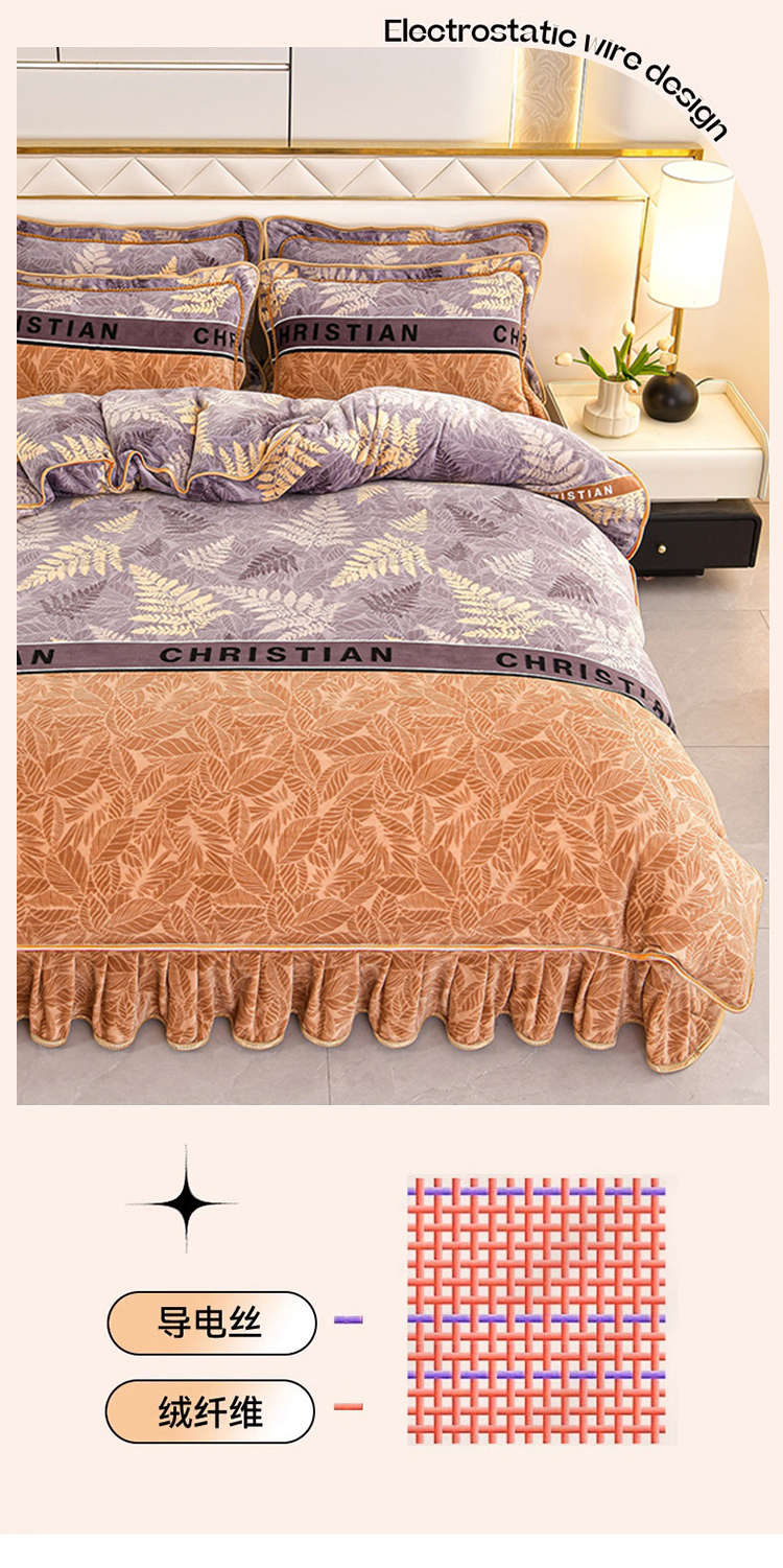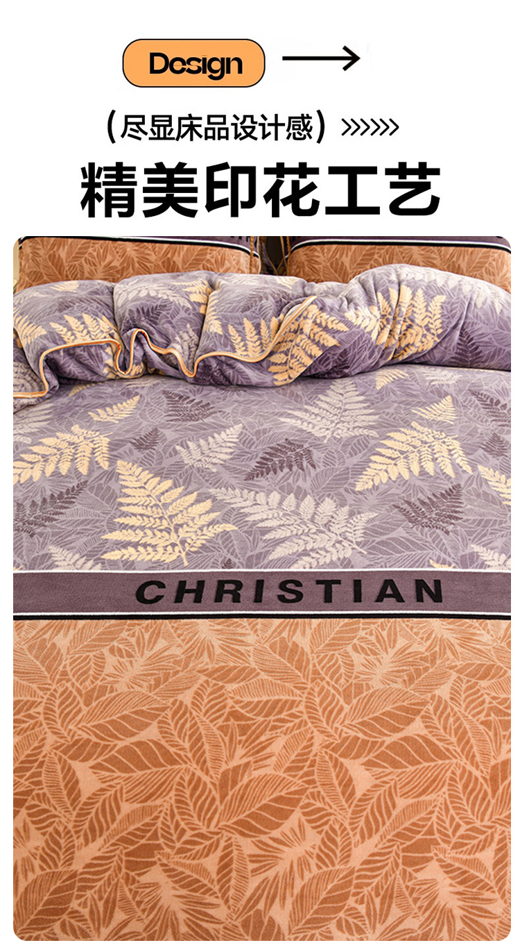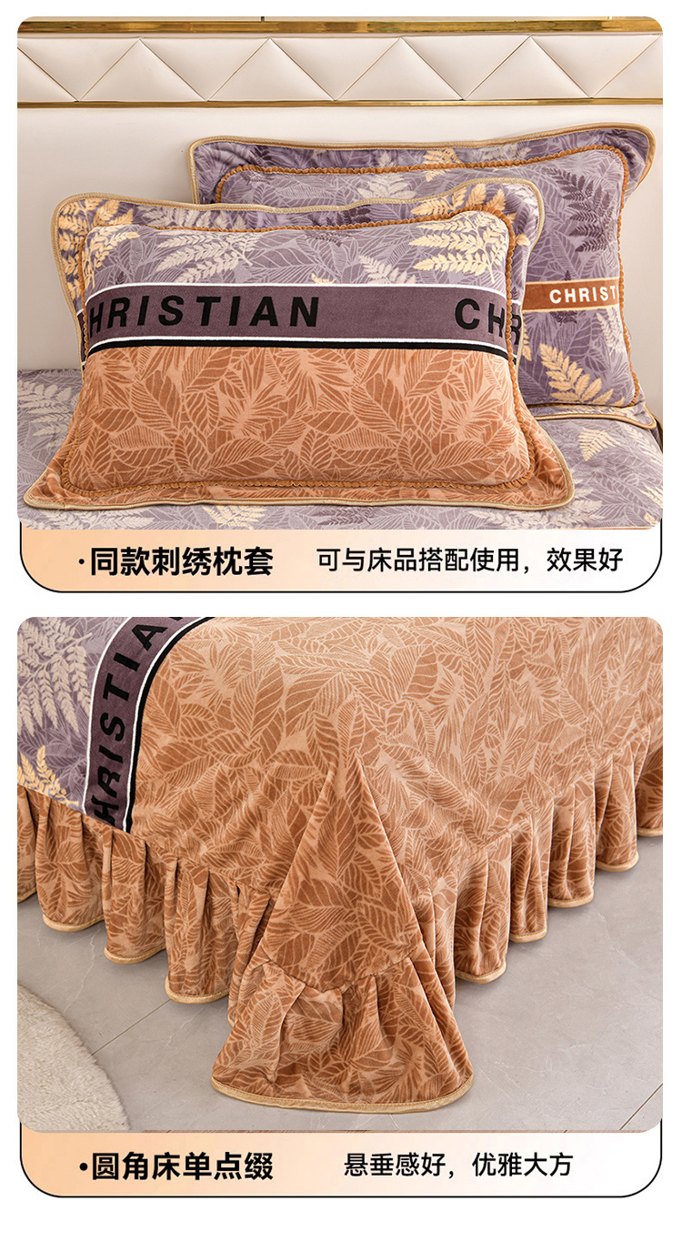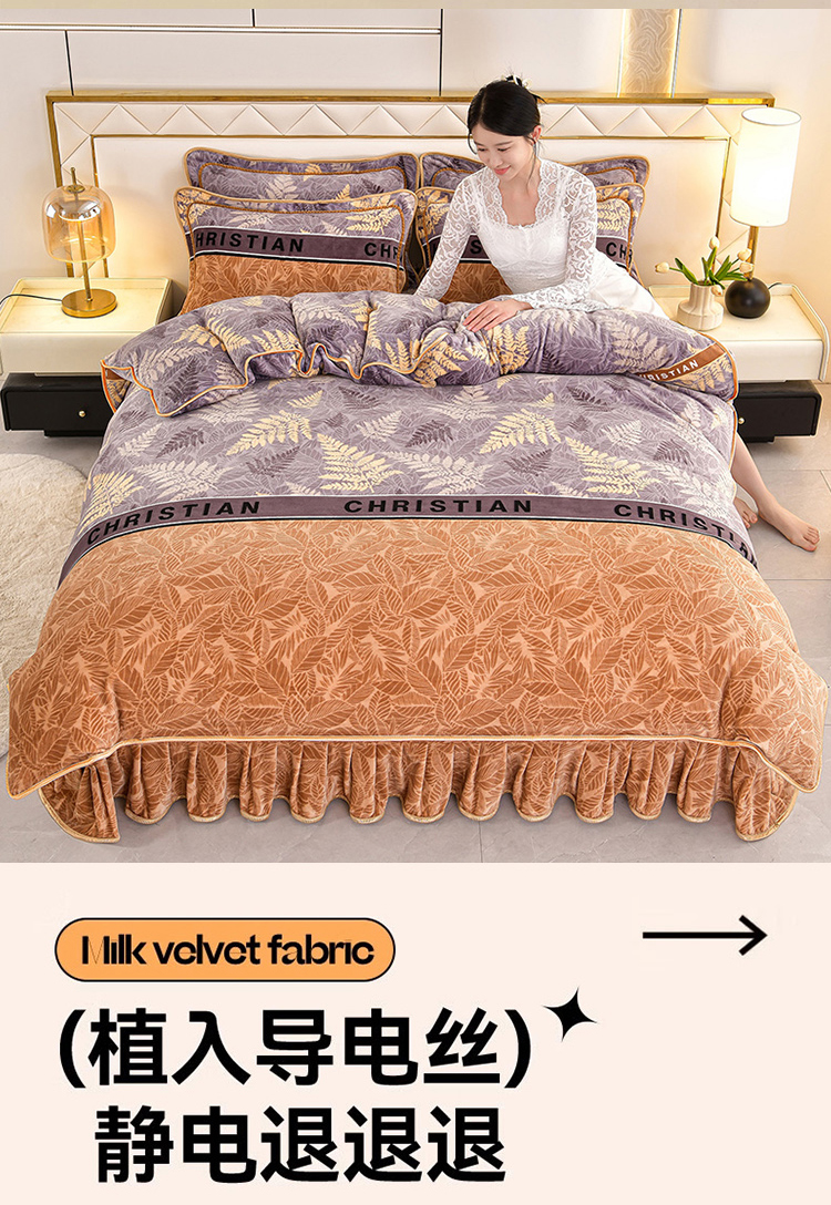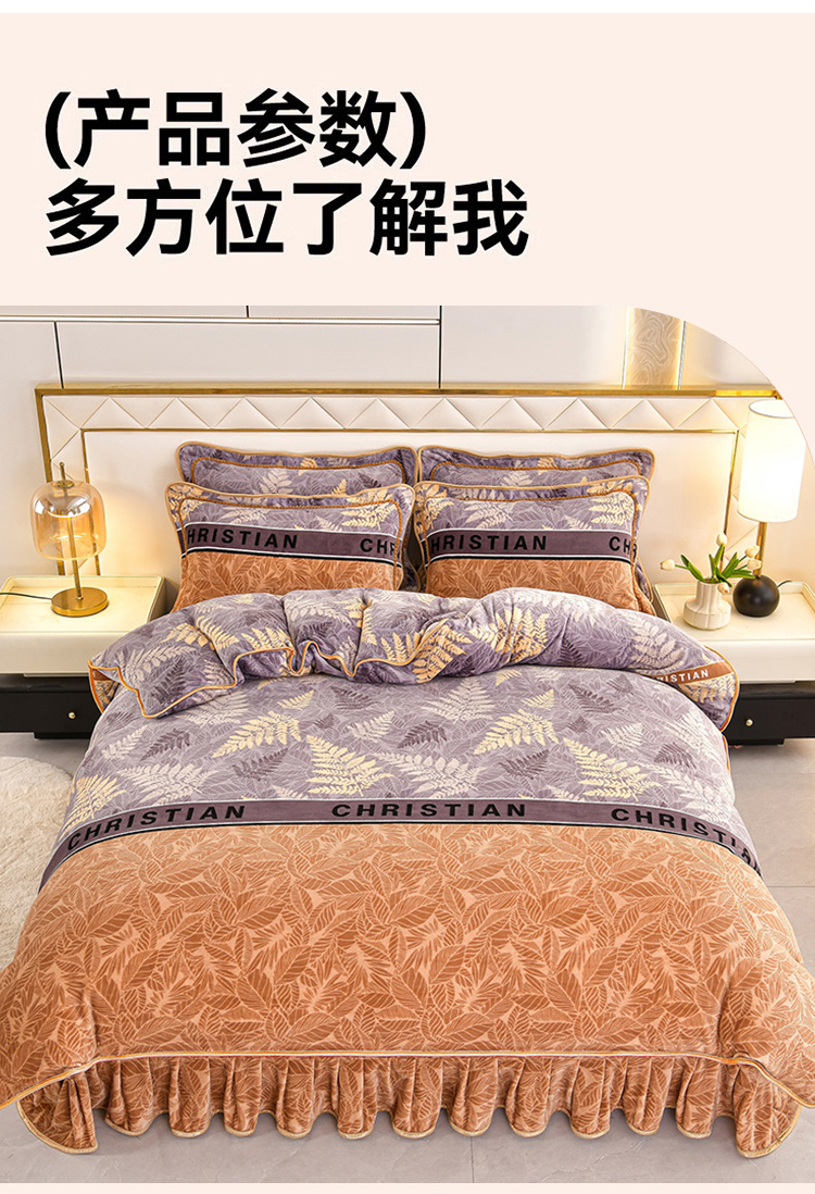 商品名称:硕喜 2025新款新8.5斤法莱绒四件套珊瑚牛奶金貂绒四件套床裙款 相思叶语