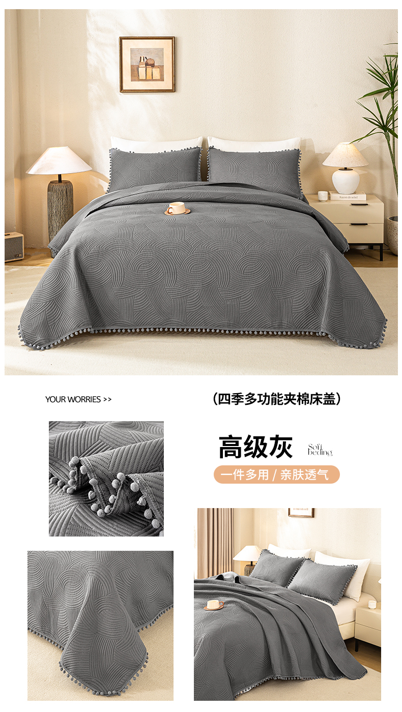 (总)81号家纺 2025新款亲肤水洗棉夹棉四季款床盖三件套,豆沙,橄榄绿,高级灰,浅灰,枣红,米棕,组合图(仅参考)