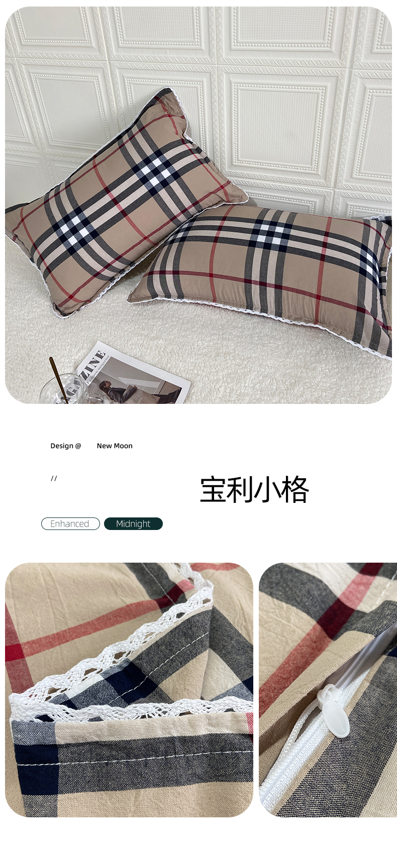 商品名称:卡奥家纺 2025新款A类纯棉色织枕套单枕套枕套单件 宝利小格