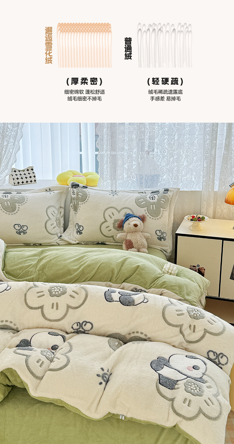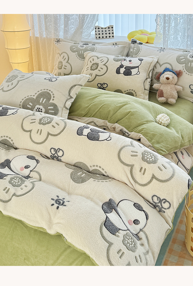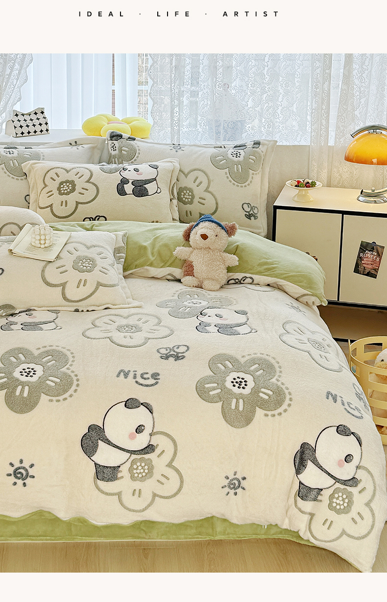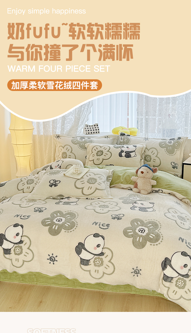 商品名称:曼町家居 2025新款雪花绒四件套 熊猫宝贝