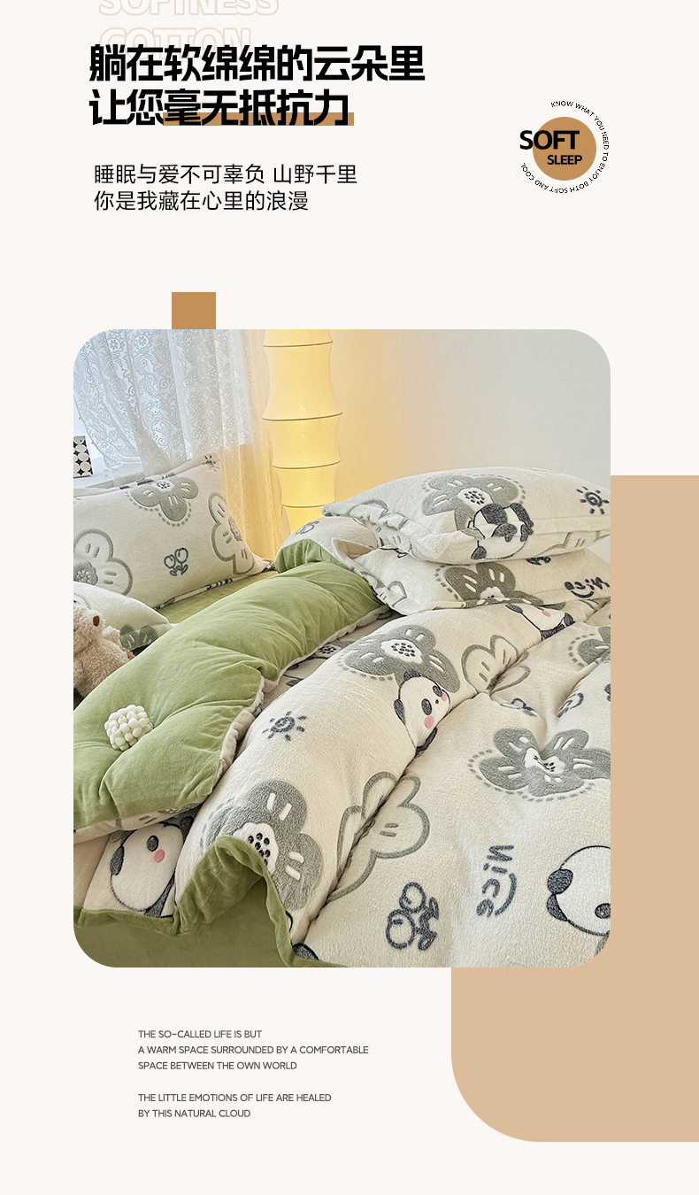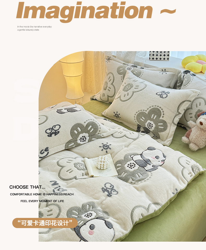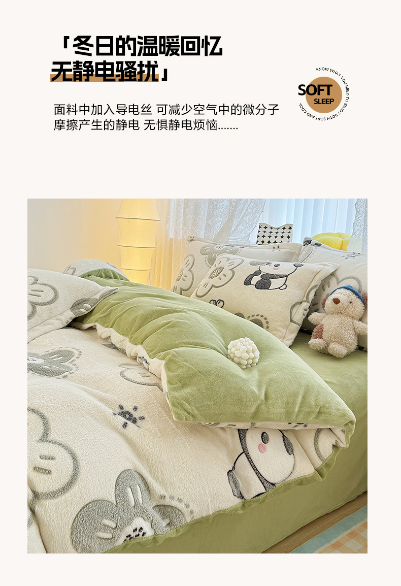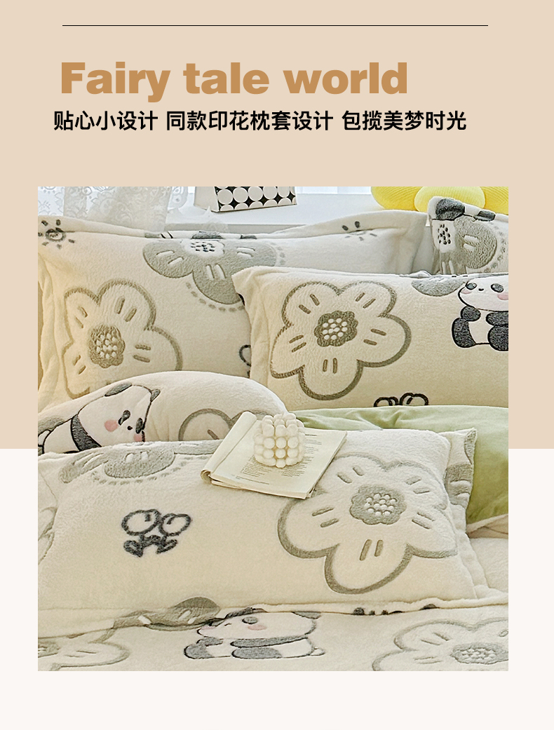 商品名称:曼町家居 2025新款雪花绒四件套 熊猫宝贝