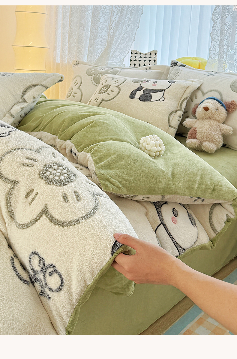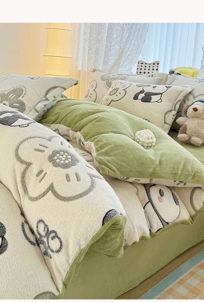 曼町家居 2025新款雪花绒四件套 熊猫宝贝