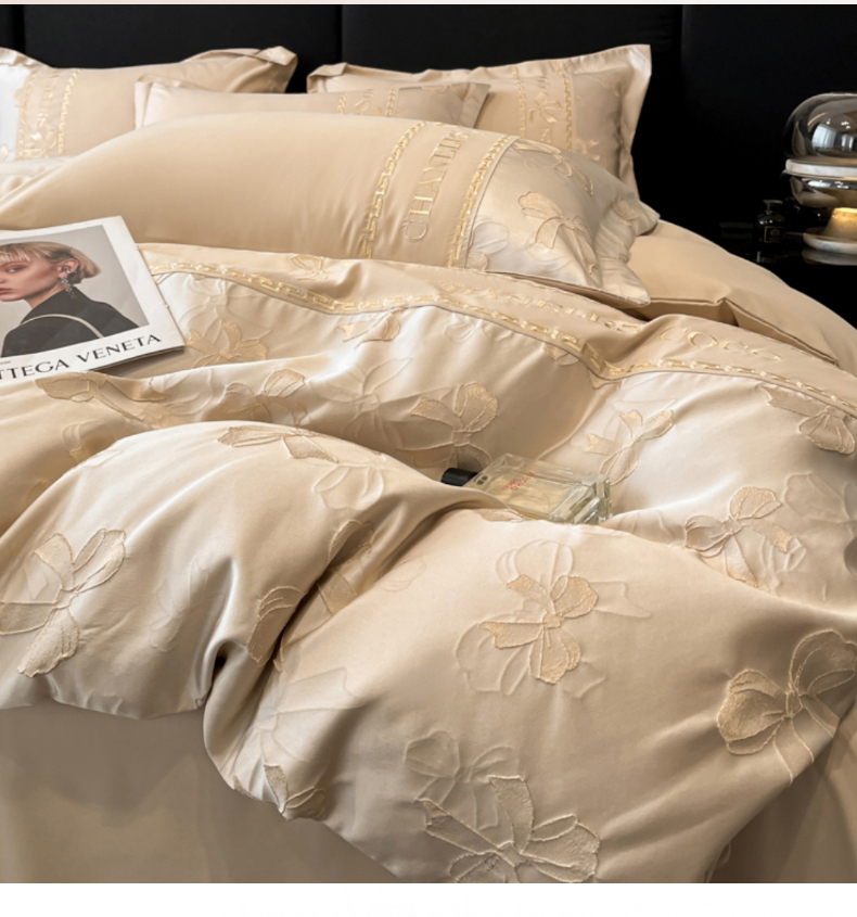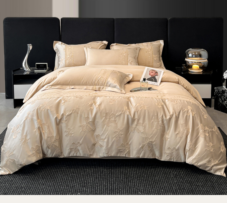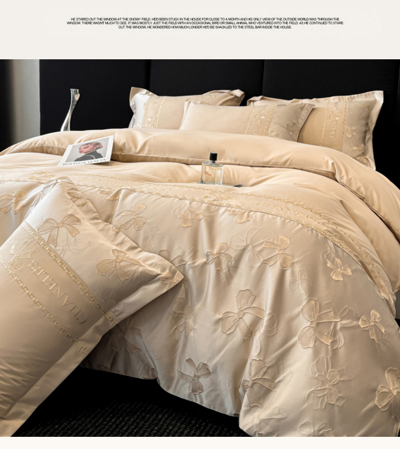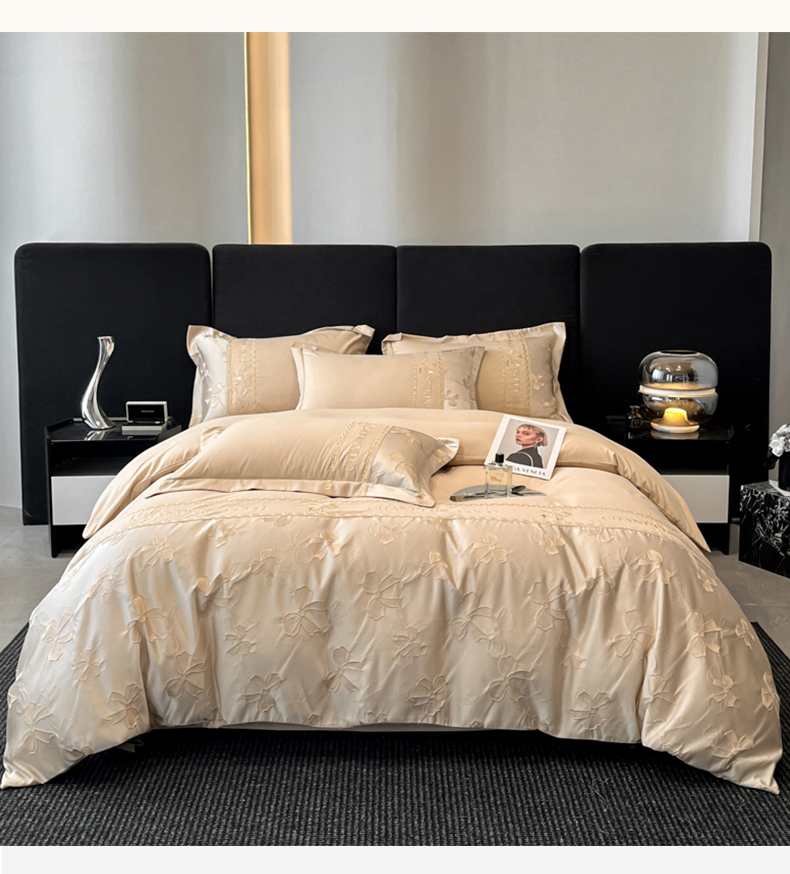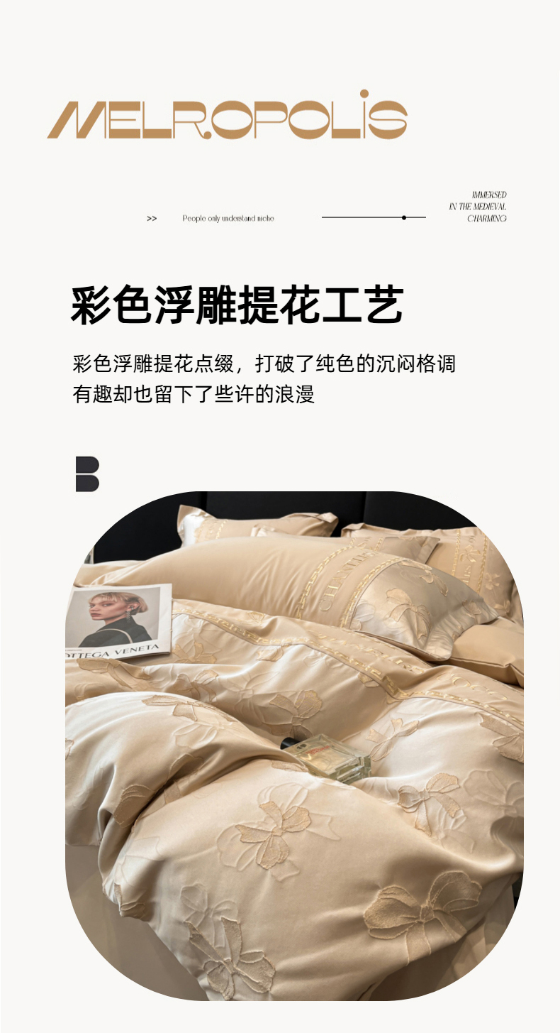 当前位置: 91家纺网 > 商品网购 > 床品套件 > 四件套 > 其它四件套 > 千希家纺 2025新款彩金浮雕四件套-简奢系列 简奢-香槟金