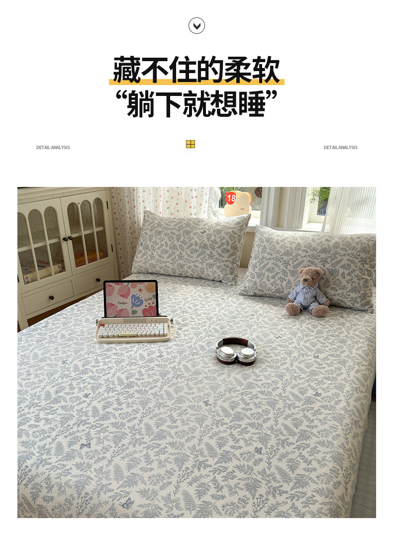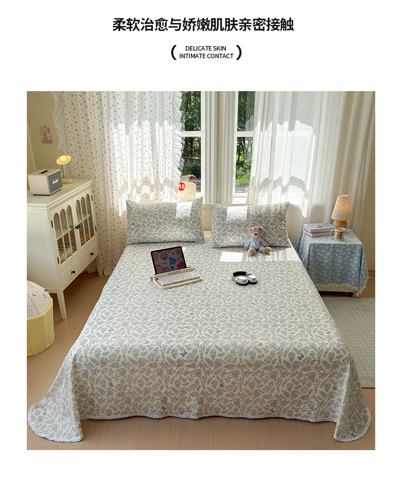 • 91家纺网 家纺一手货源 找家纺 沐芷 2025 A类双层纱花边床单单件 单人双人床单三件套 东方草木