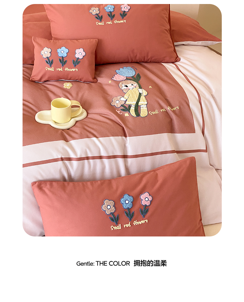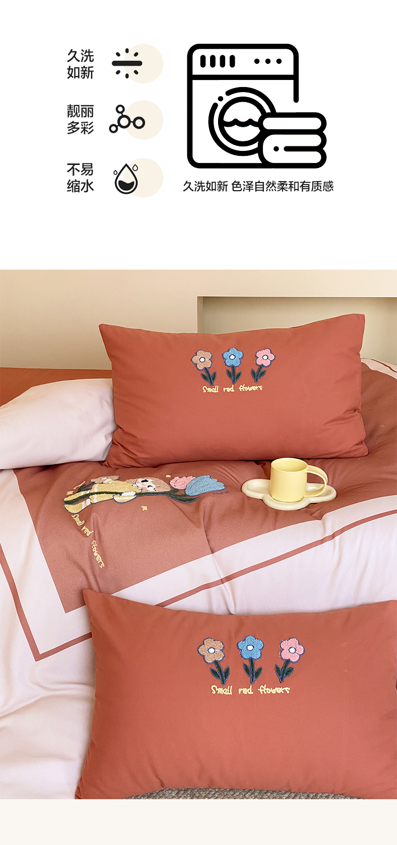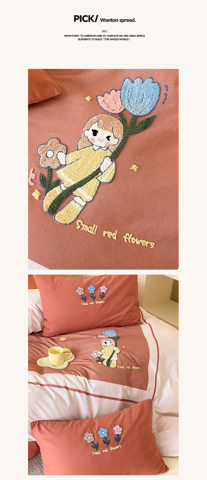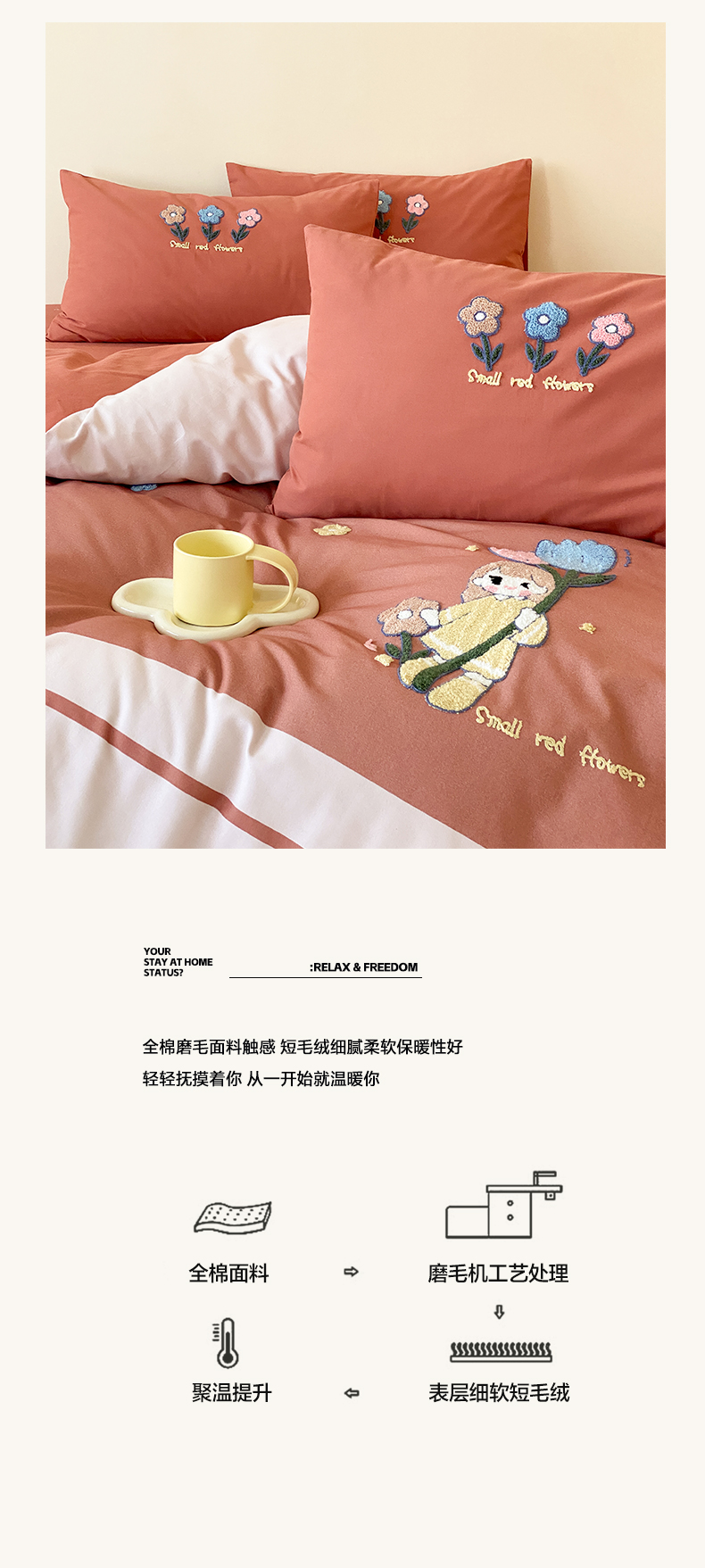 商品名称:麦田家纺 2025秋冬新款加厚磨毛大版毛巾绣四件套-提供买家秀 甜心朵朵