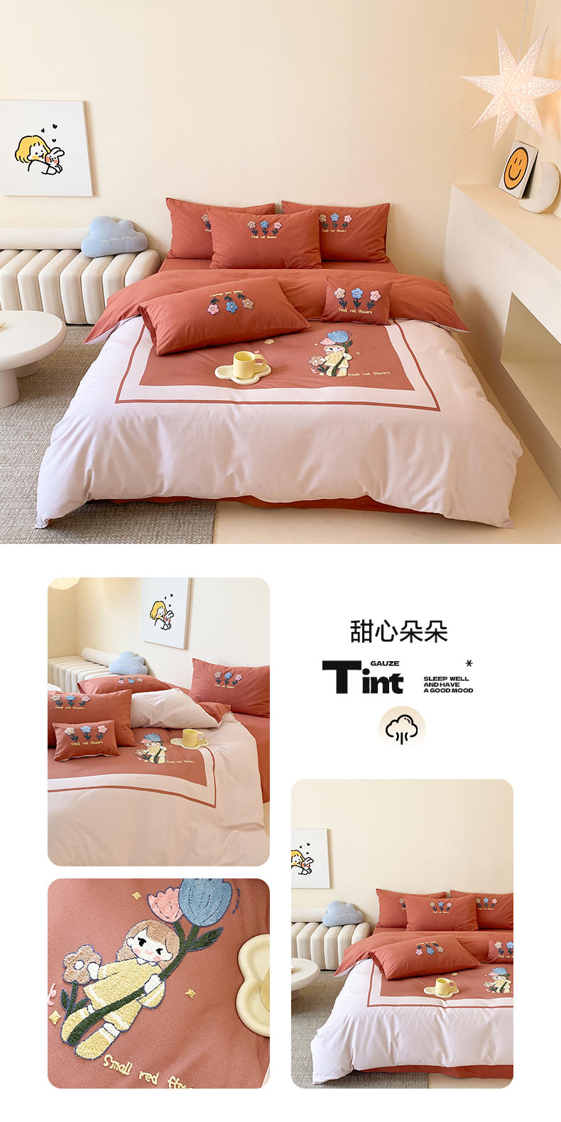 (总)麦田家纺 2025新款A类云感木棉皱皱双层纱印花四件套,春意浓,繁花,花颜,简意,开心小熊,腊肠犬,浪漫花语,免挽星辰,甜心格,小蓝町,樱桃格,紫韵