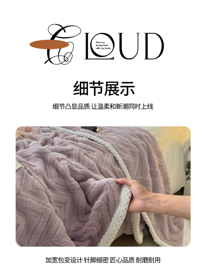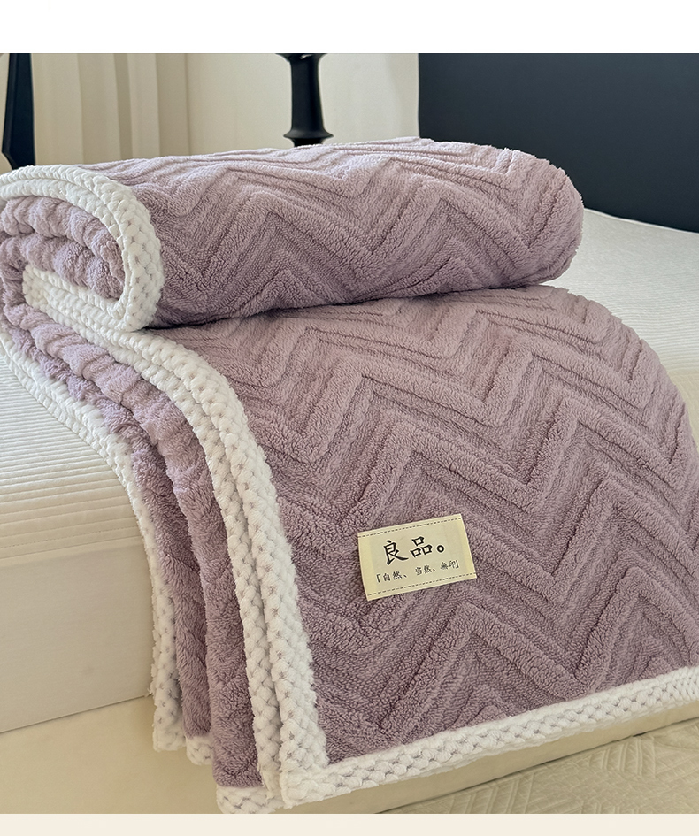 商品名称:(总)穆琪2025新款轻奢盖毯高克重多层提花绵柔绒保暖毛毯绵密亲肤沙发毯休闲小毯子