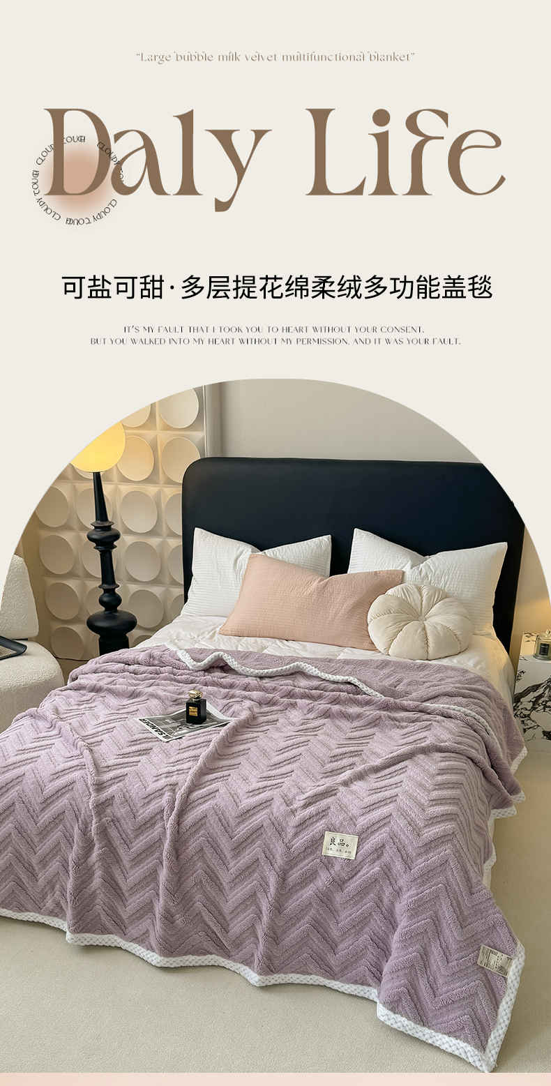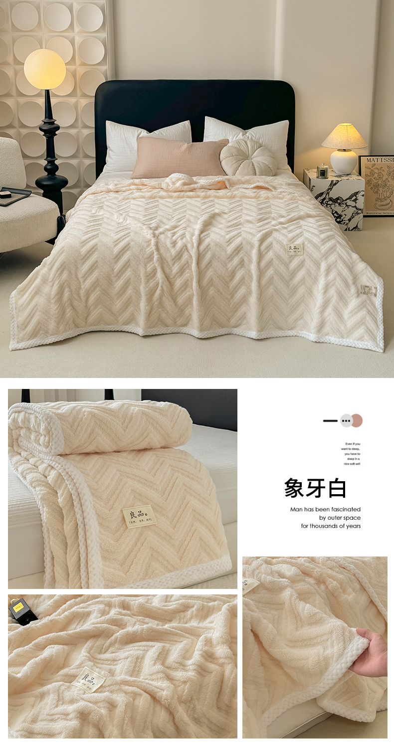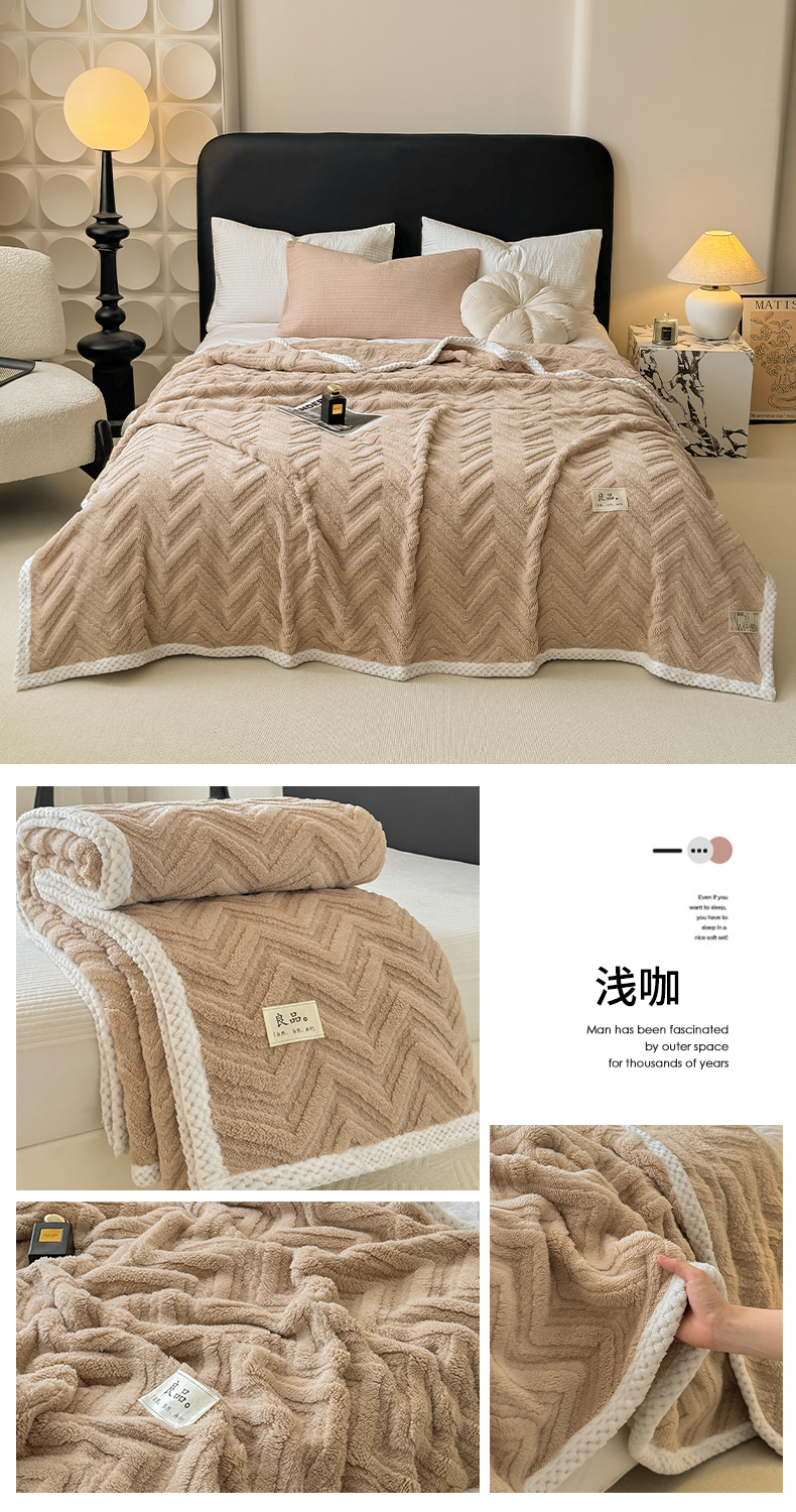 (总)穆琪2025新款轻奢盖毯高克重多层提花绵柔绒保暖毛毯绵密亲肤沙发毯休闲小毯子