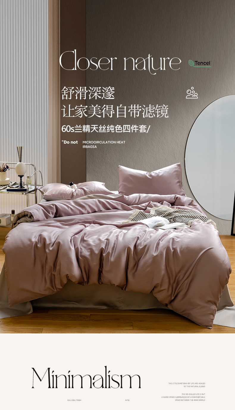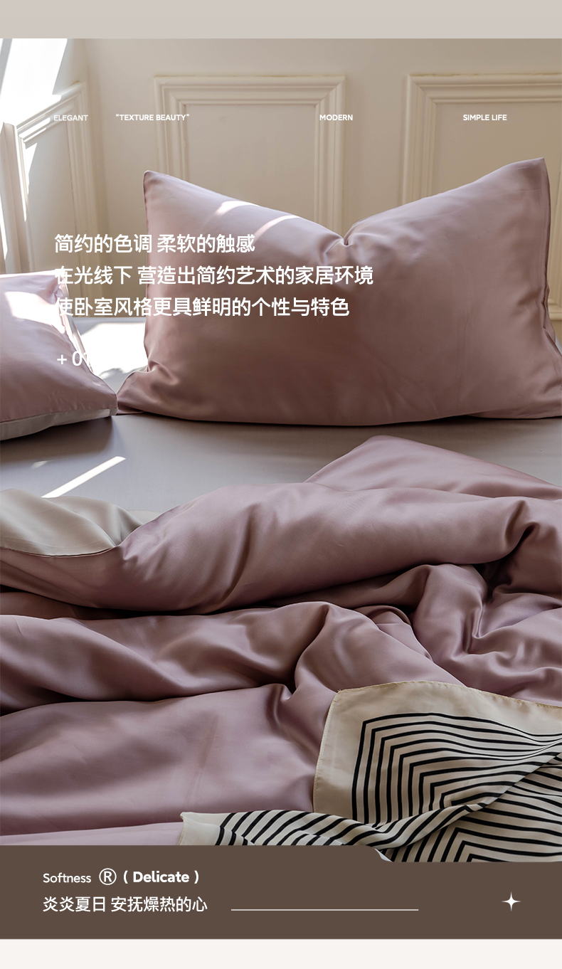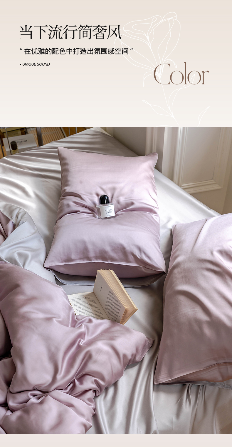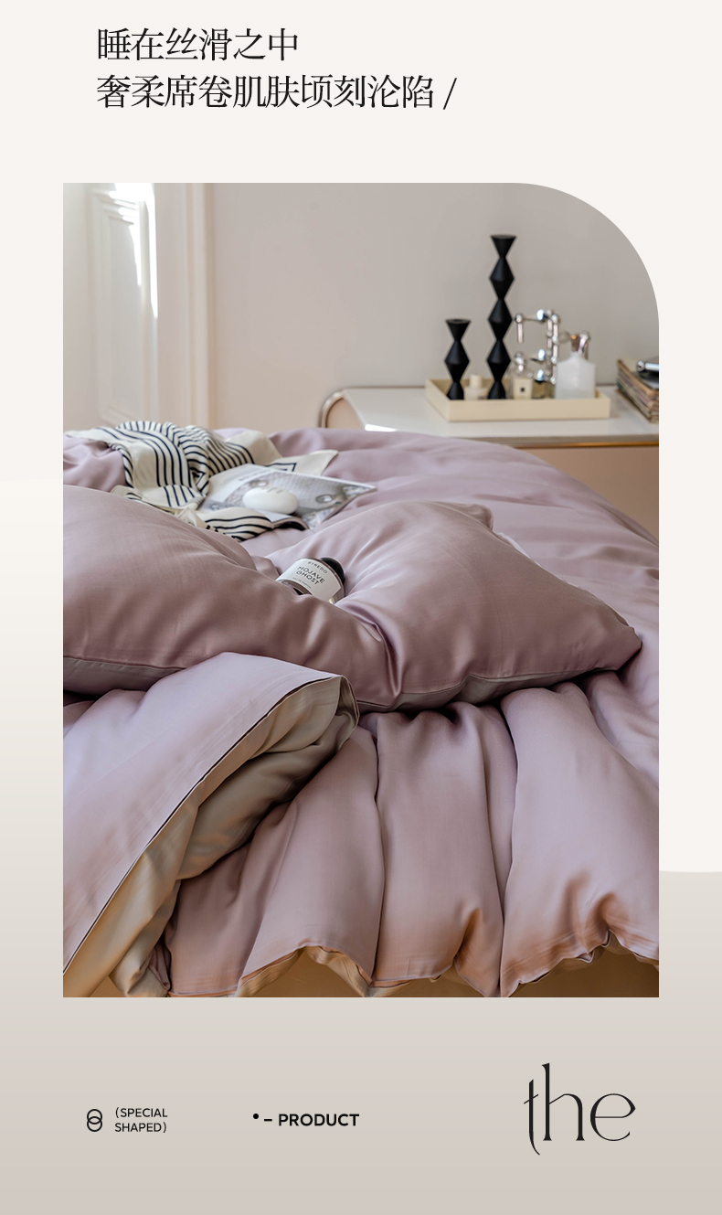 商品名称:麦田家纺 2025新款A类60S纯色兰精天丝四件套 满天星紫-曙光银