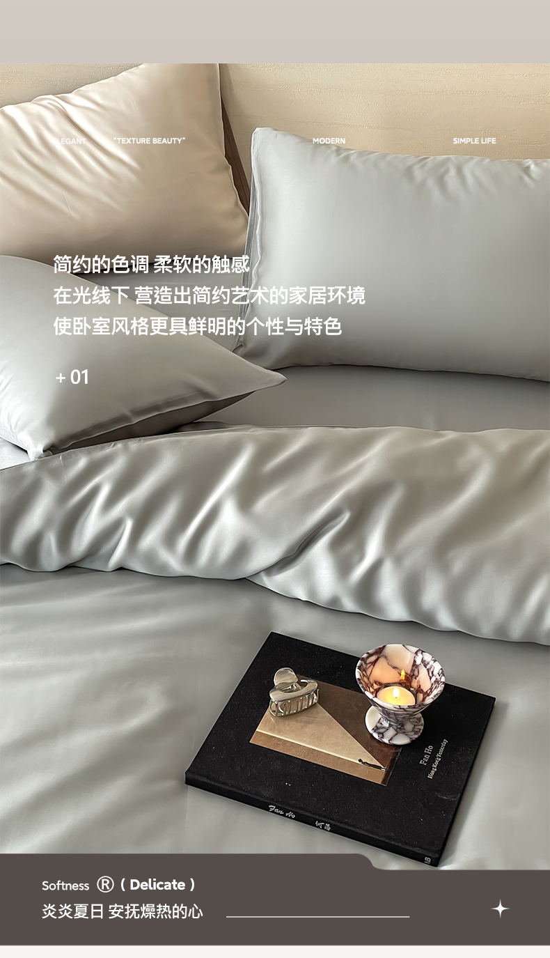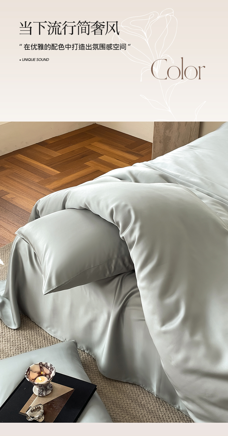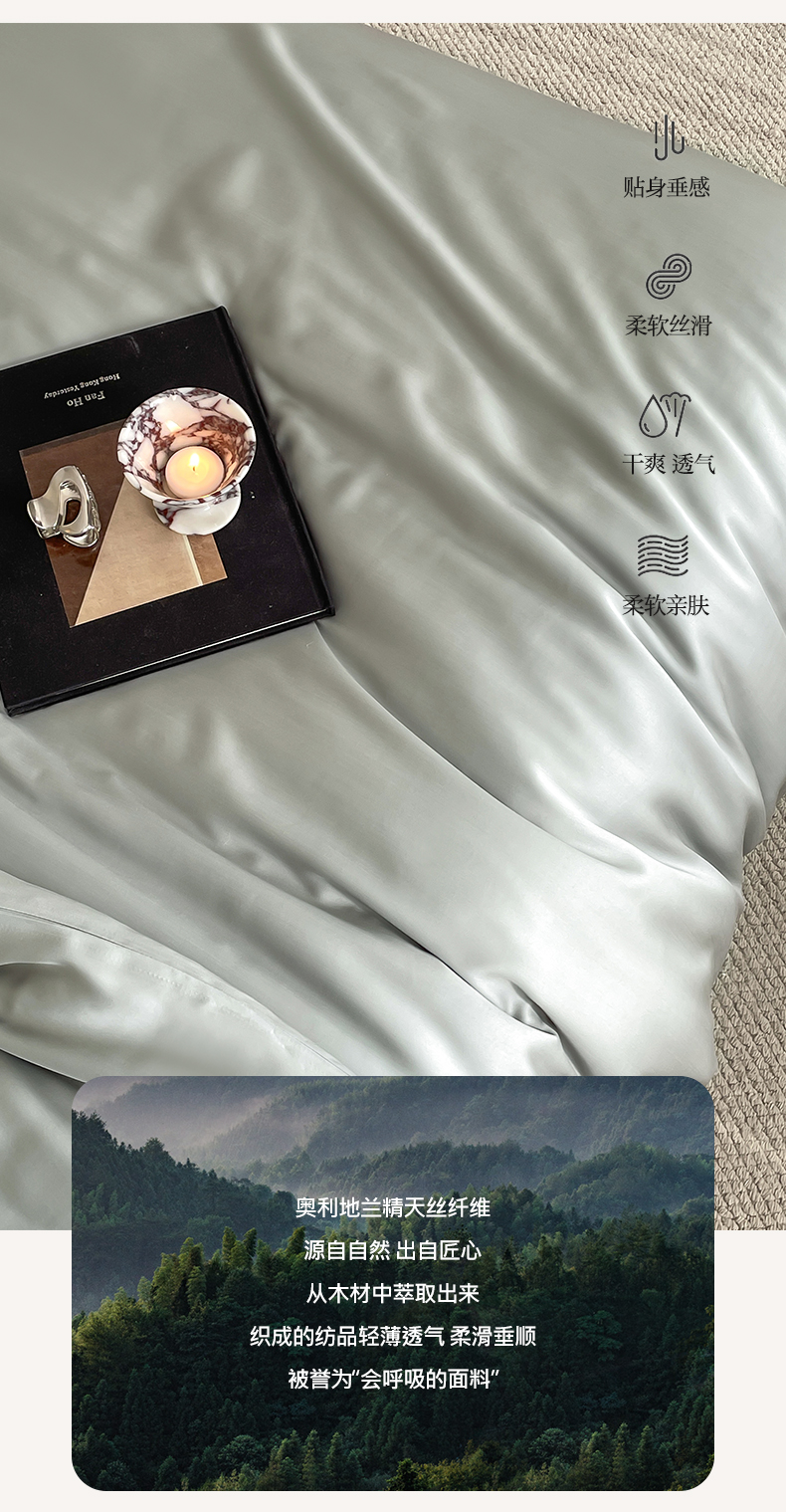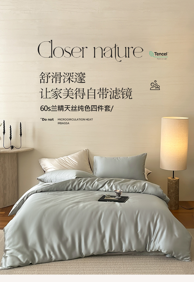 商品名称:麦田家纺 2025新款A类60S纯色兰精天丝四件套 云纱灰