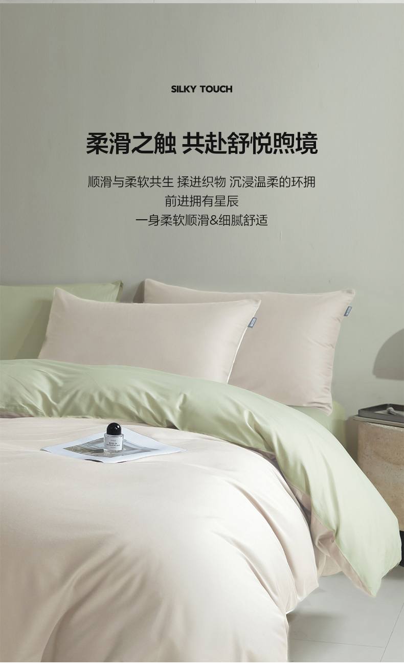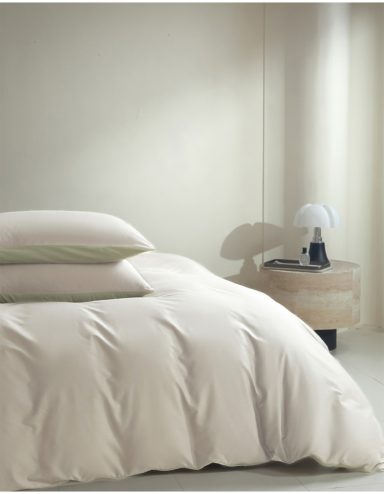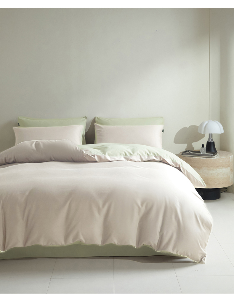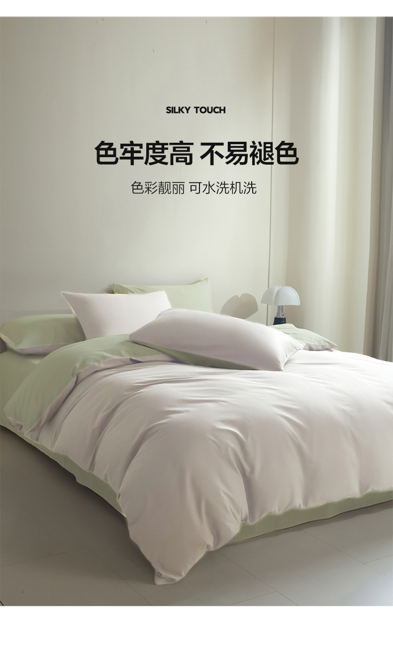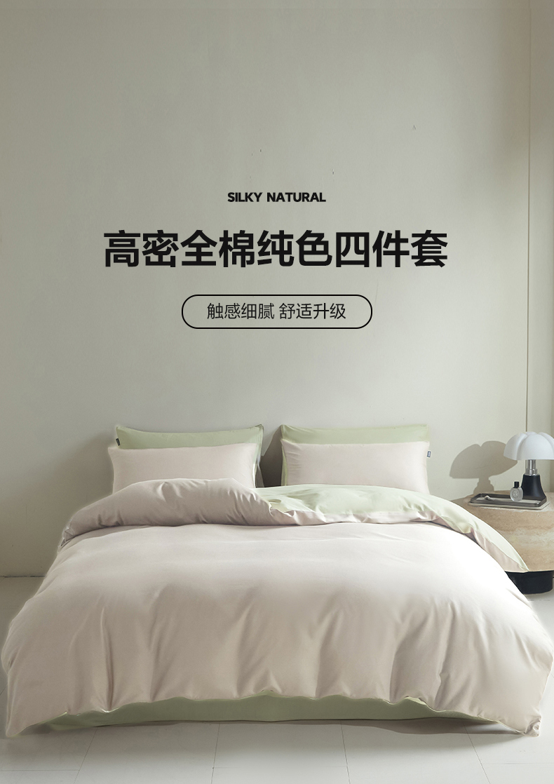 商品名称:麦田家纺 2025新款A类全棉13372纯色四件套 奶昔白浅绿