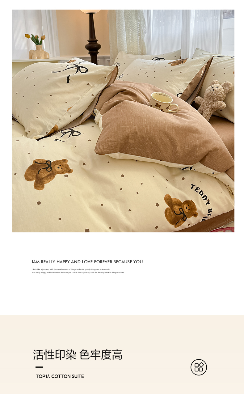 当前位置: 91家纺网 > 商品网购 > 床品套件 > 四件套 > 全棉普通四件套 > 麦田家纺 2025新款花卉全棉印花四件套系列 礼物熊