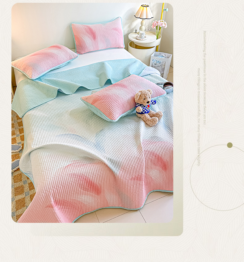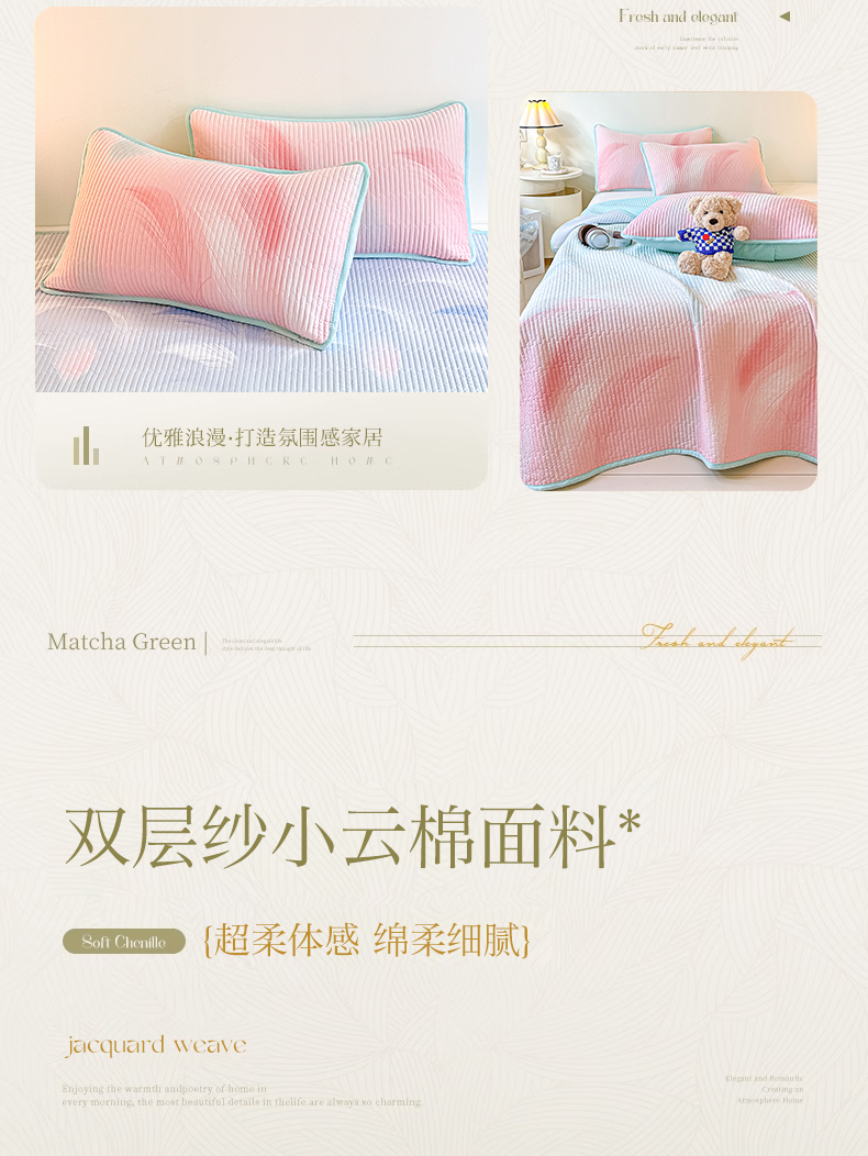 • 91家纺网 家纺一手货源 找家纺 麦田家纺 2025新款双层纱小云棉多功能床盖 奇幻梦境--红萱