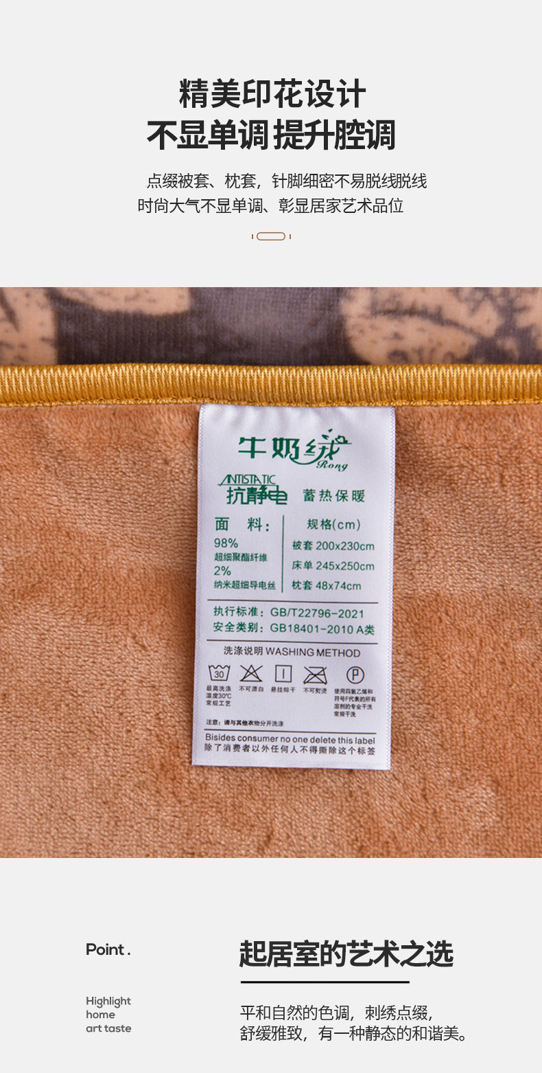 当前位置: 91家纺网 > 商品网购 > 床品套件 > 四件套 > 牛奶绒四件套 > 芯诗曼2025新款8.5斤直播热款高克重牛奶绒法莱绒水晶金貂法莱绒四件套 暗香