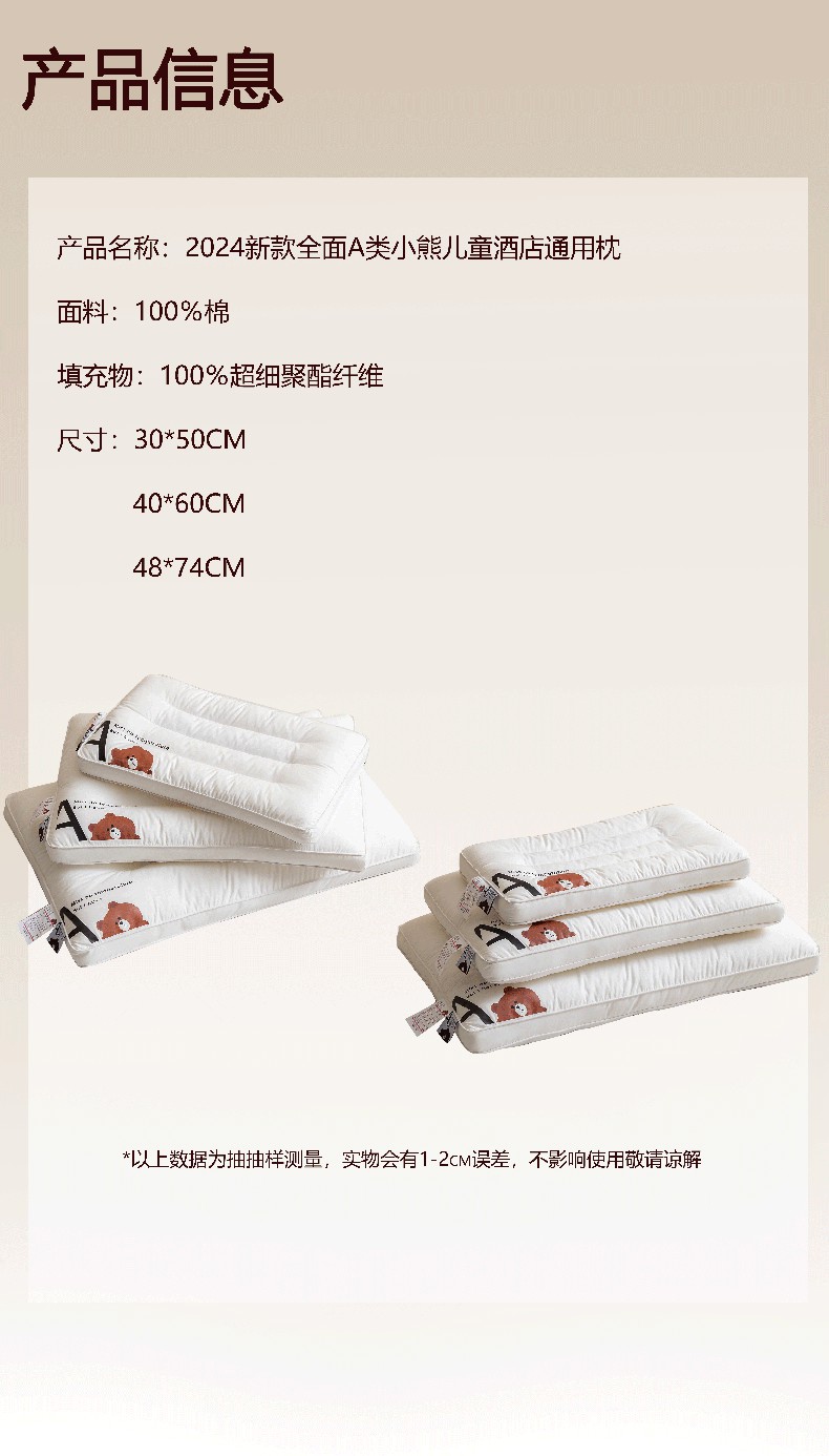 商品名称:(总)小米枕芯 2025新款全棉A类小熊儿童酒店通用枕头枕芯