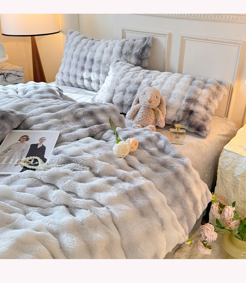 唐人居 2025新款泡泡兔毛牛奶绒四件套--七彩 浅紫
