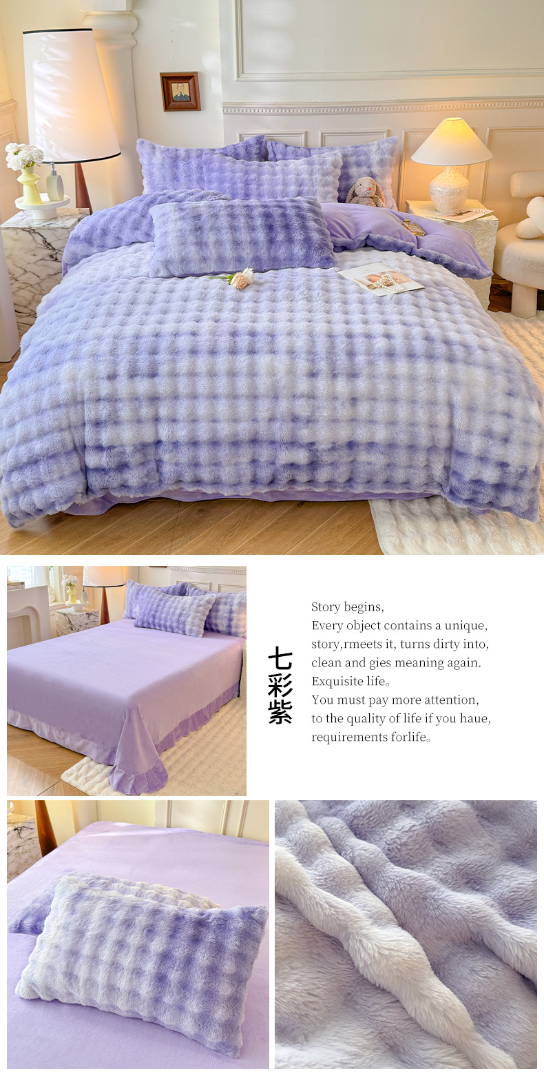 商品名称:唐人居 2025新款泡泡兔毛牛奶绒四件套--七彩 浅紫