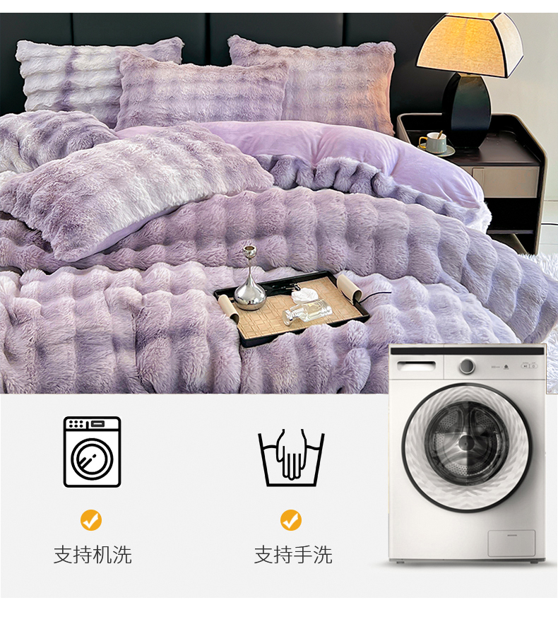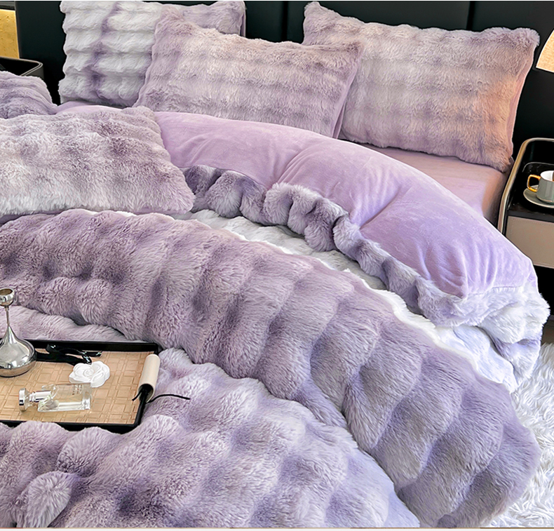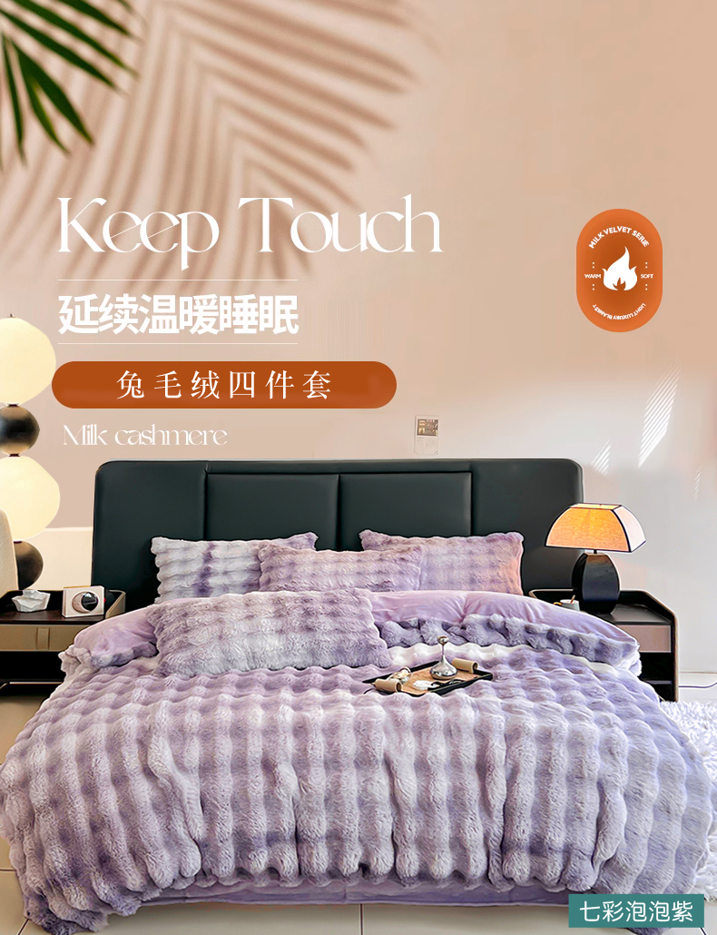 商品名称:金爱家 2025新品全消光牛奶绒A类纯色獭兔毛绒立体牛奶绒四件套 七彩泡泡紫