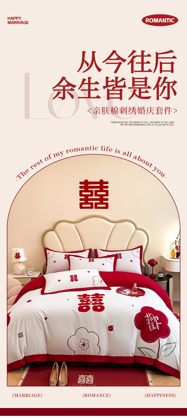 (总)火麒麟家纺 2024新款亲肤棉刺绣婚庆四件套,百年好合,成双成对,好姻缘,贺新婚,佳偶天成,龙凤情缘,玫瑰之恋,天作之合,甜甜蜜蜜,喜结良缘,喜事连连,相亲相爱,心心相印,新婚快乐,一生相伴,以爱之名