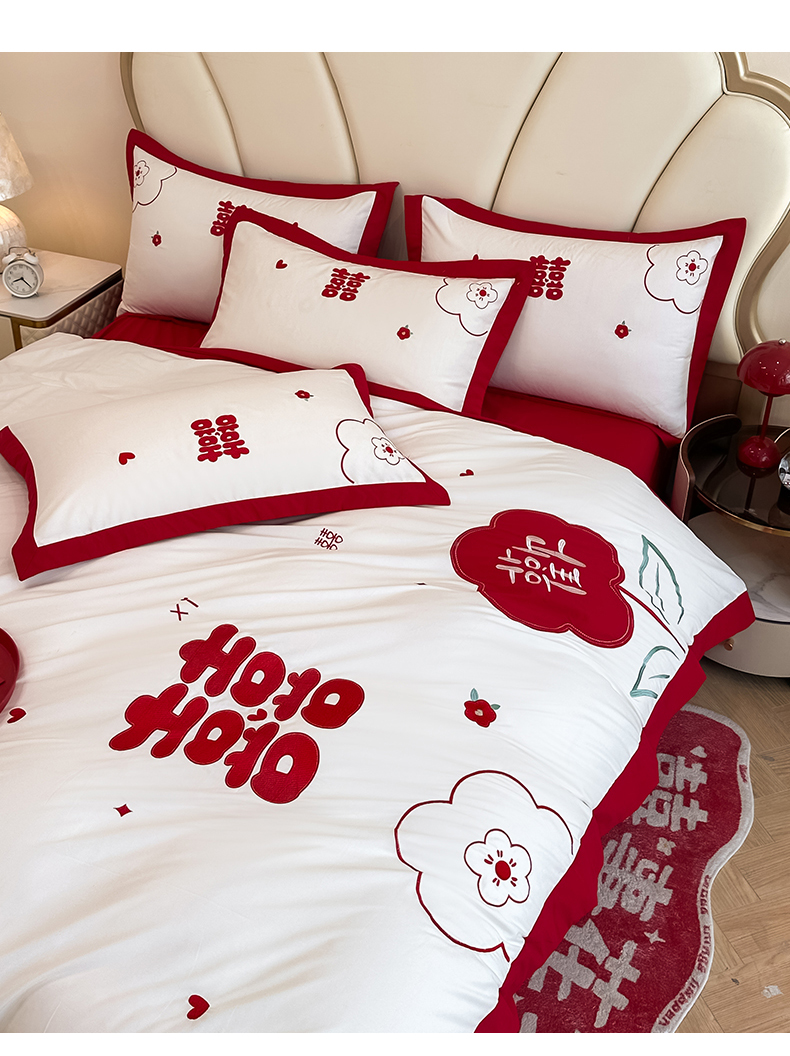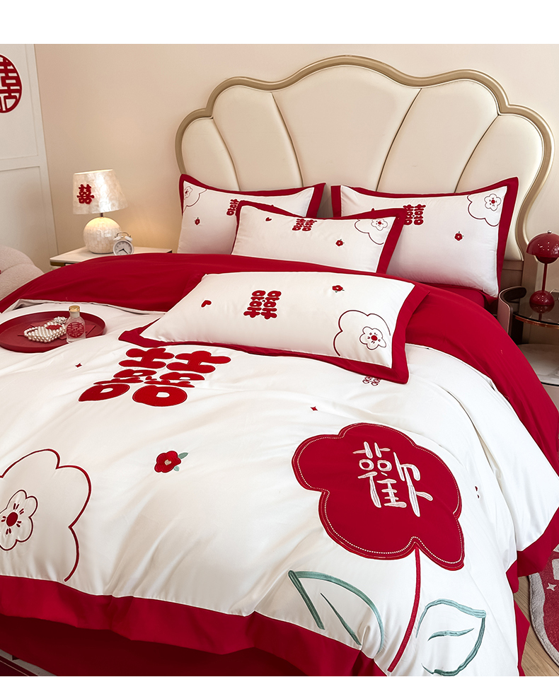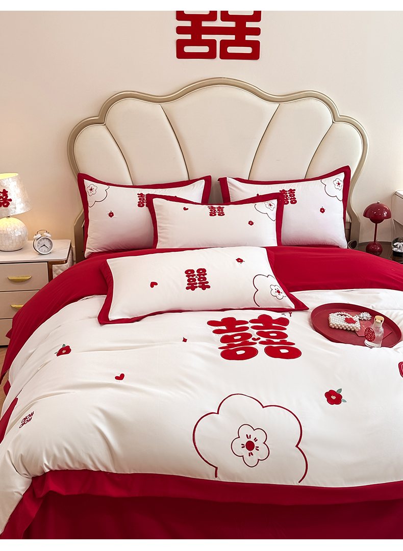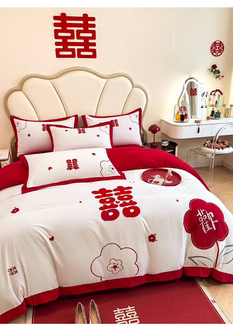 商品名称:火麒麟家纺 2025新款亲肤棉婚庆刺绣四件套 欢喜