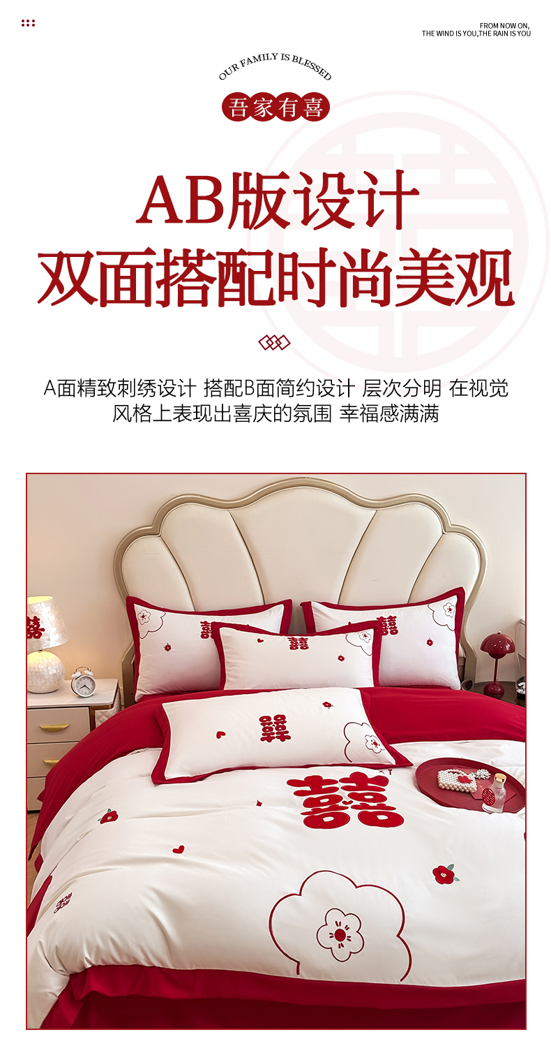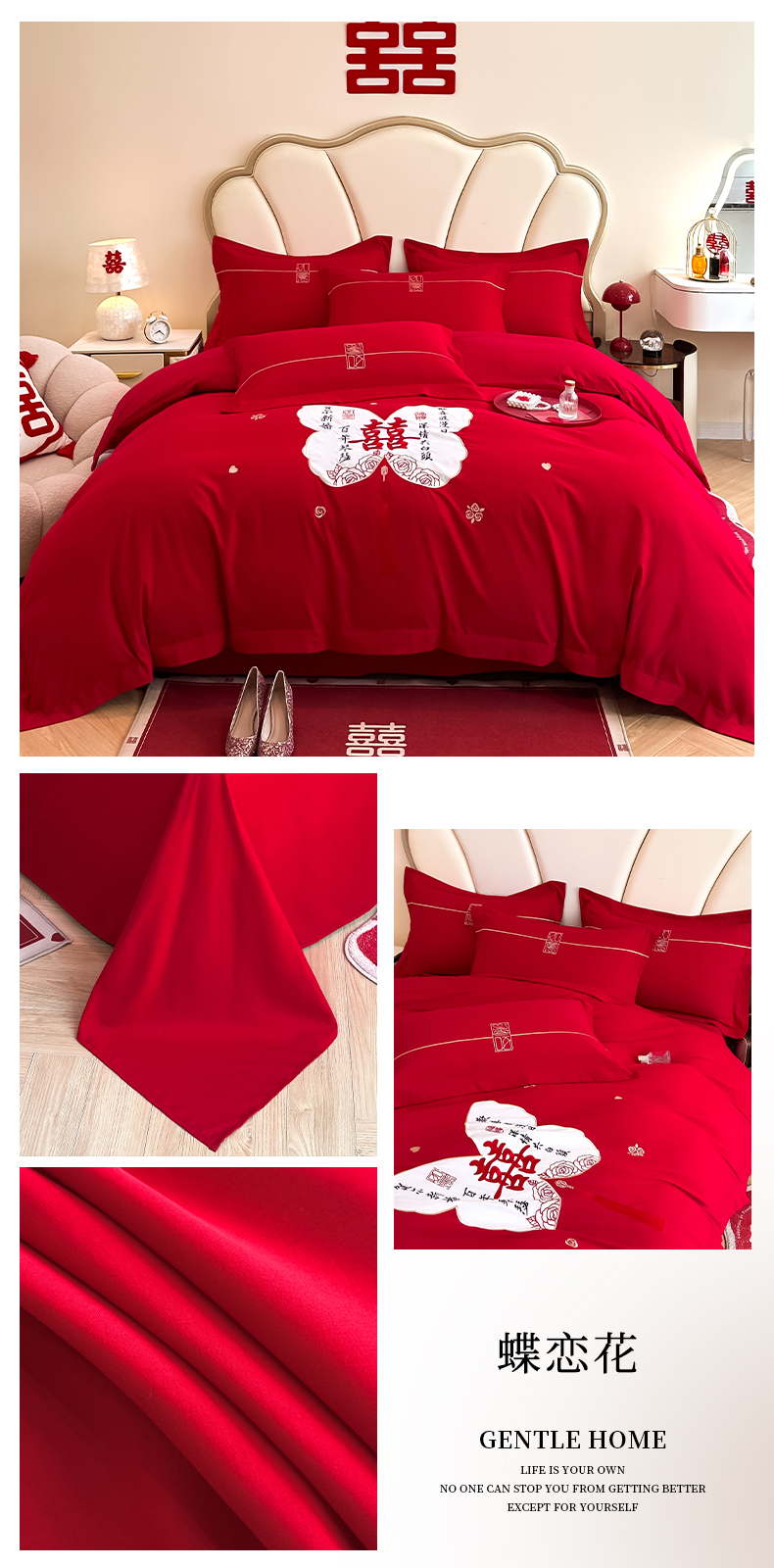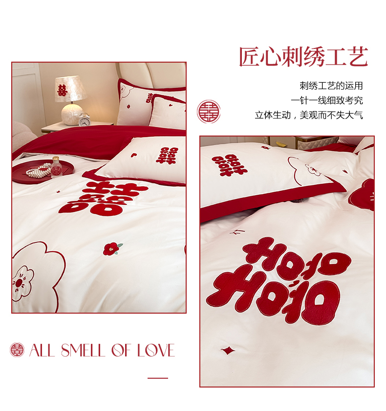 (总)火麒麟家纺 2025新款亲肤棉婚庆刺绣四件套,爱意满满,百年之好,蝶恋花,欢喜,锦上添花,锦有你,龙飞凤舞,龙凤祥云,天赐良缘,吾家有喜,一见钟情,永结同心