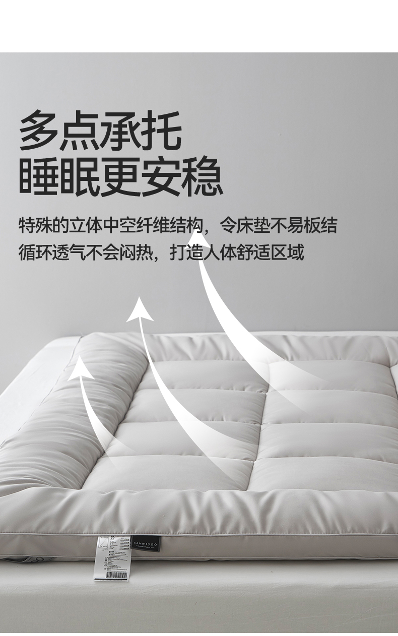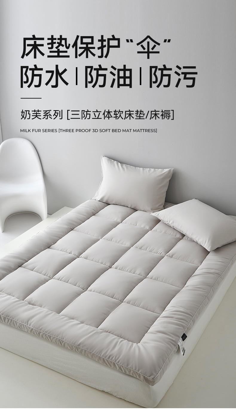 商品名称:三味舒屋 2025新款奶芙系列三防立体床褥(送枕套) 奶芙灰
