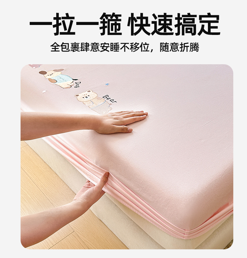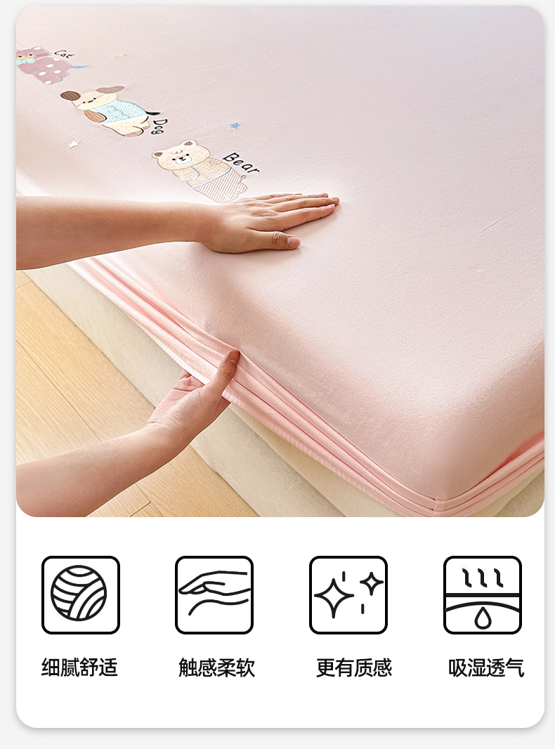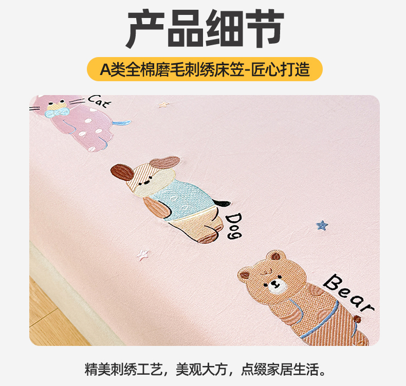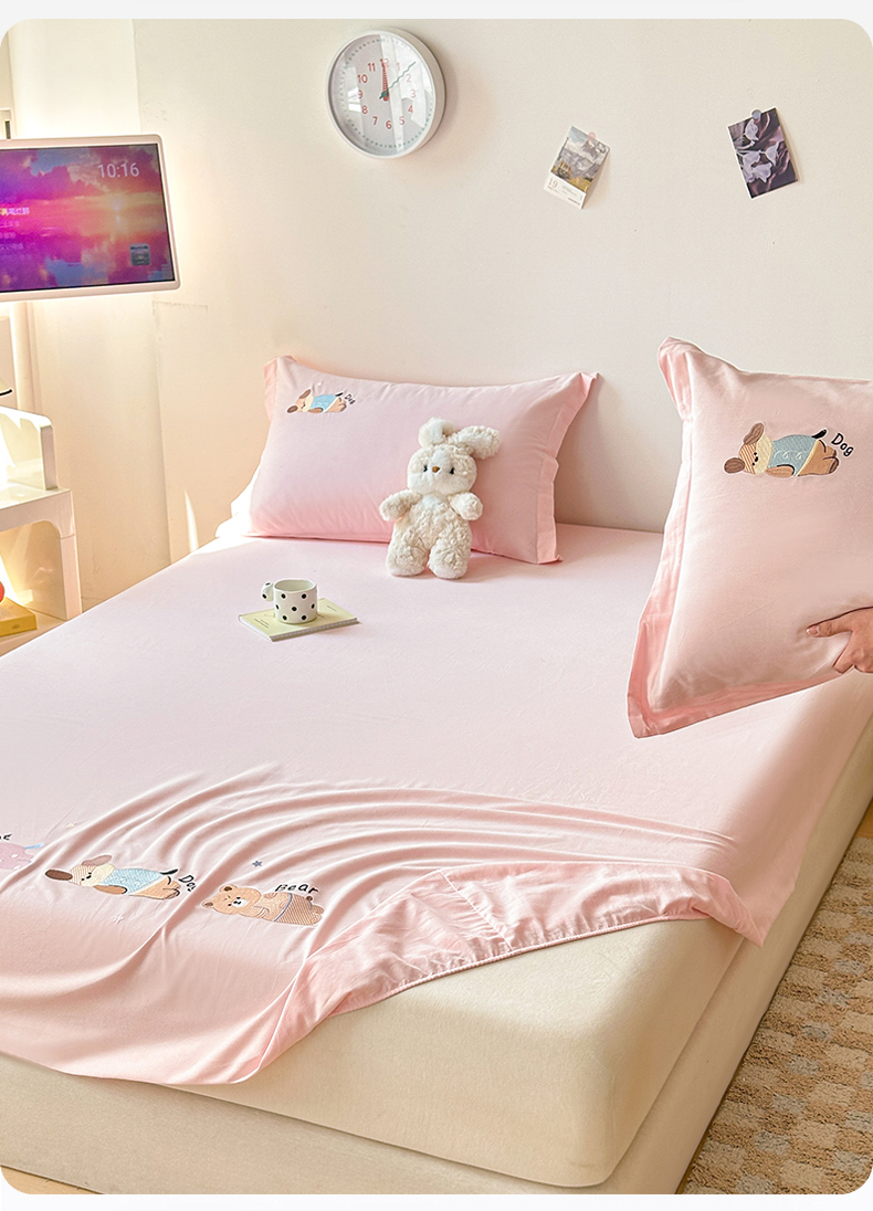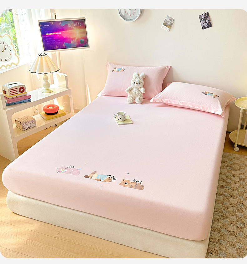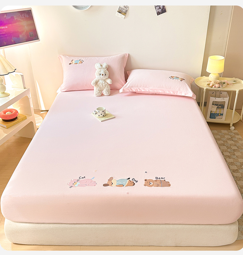笙意家纺 2025新款全棉纯棉磨毛刺绣单品床笠 床笠单件 萌宠-绯粉