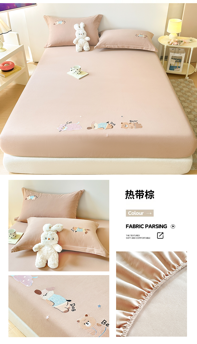 (总)笙意家纺 2025新款A类牛奶绒海獭绒卡通刺绣床笠,卡通-驼色,卡通-浅米色,卡通-香槟金,卡通-叶绿,卡通-玉粉,卡通-月光紫