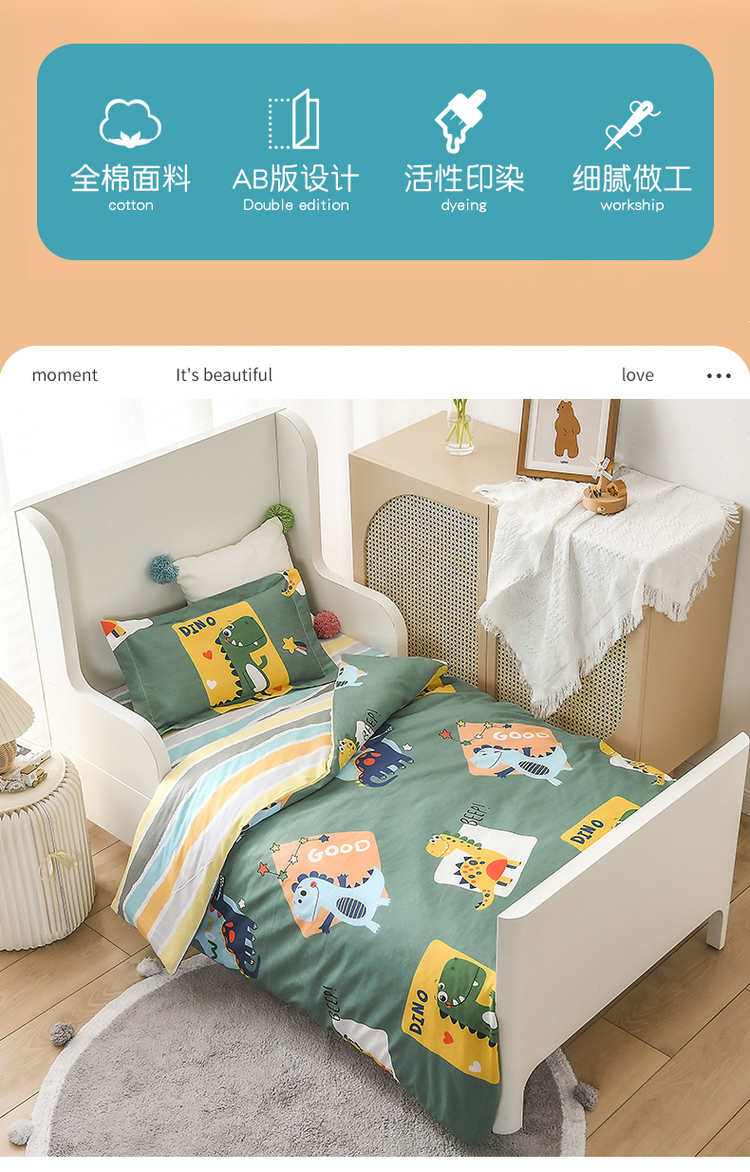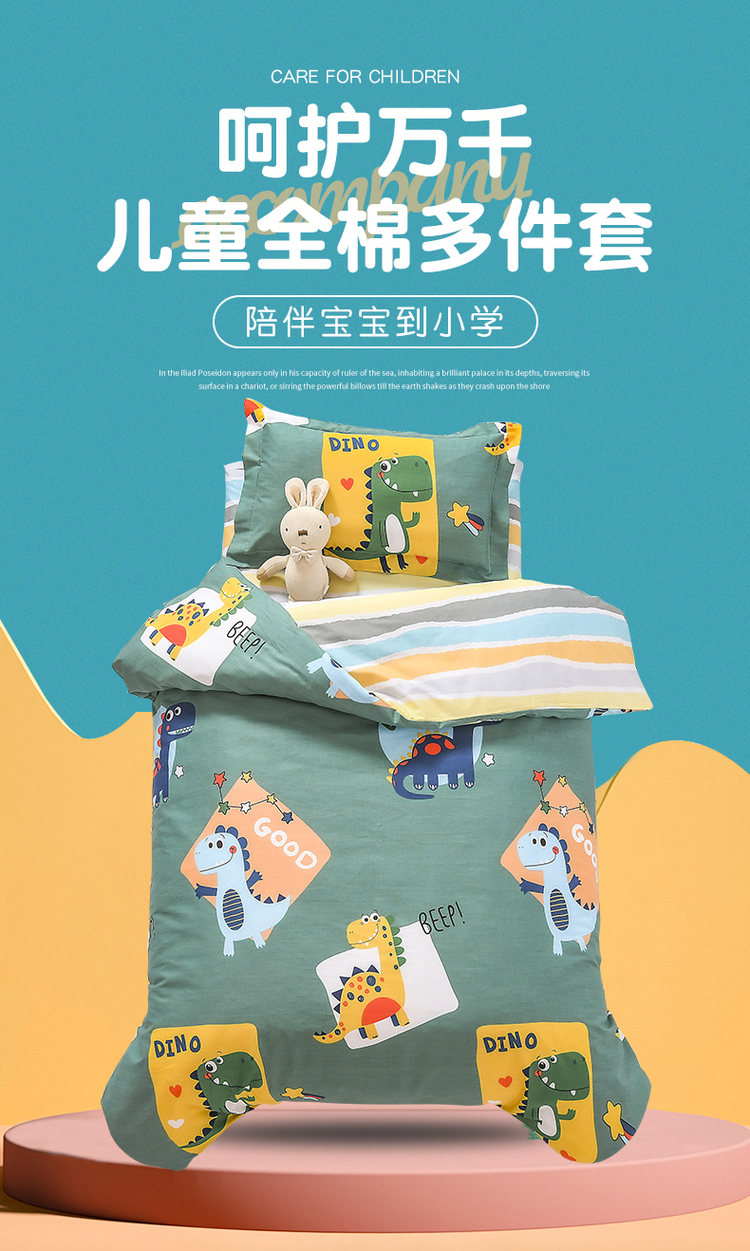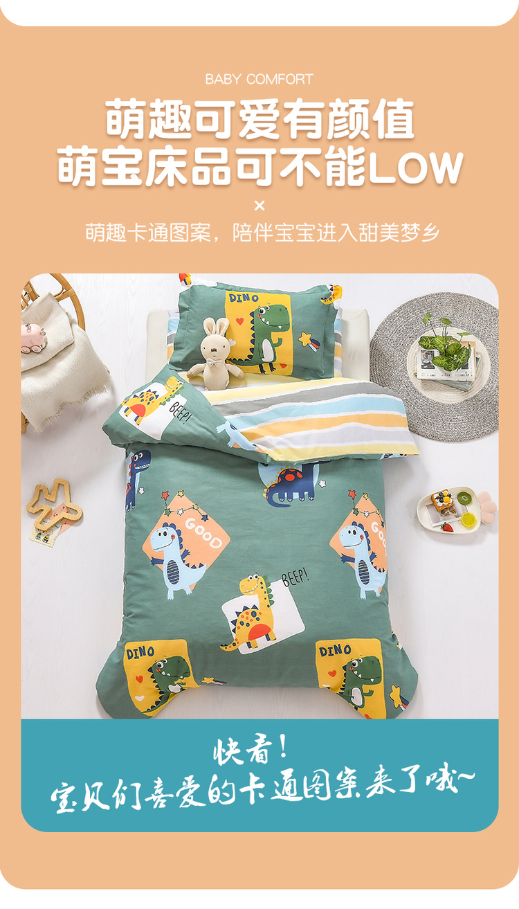 商品名称:梵赫家纺 2025新款全棉小版三件套 恐龙家族(绿)