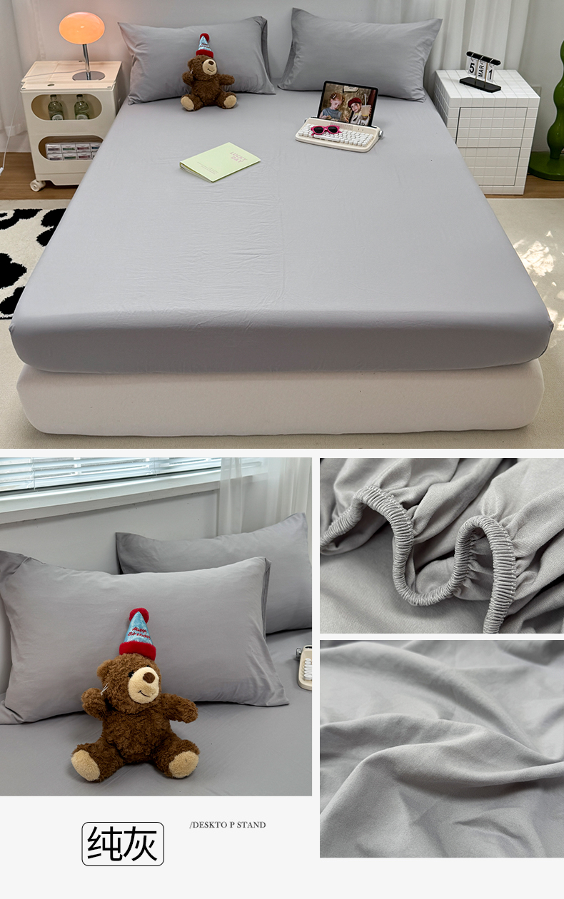 • 91家纺网 家纺一手货源 找家纺 觅妮家纺 2025新款A类水洗棉韩系ins床笠三件套 纯灰