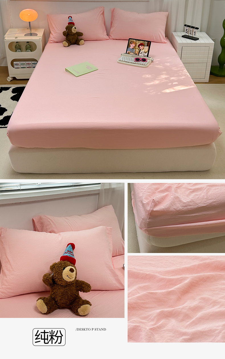 (总)觅妮家纺 2025新款A类水洗棉韩系ins床笠三件套,黑条纹,纯粉,纯灰,纯紫,豆粉小格,粉条纹,黑白小格,黄小格,蓝条纹,绿条纹