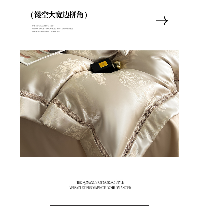 商品名称:(总)博纳家纺 2025新款镂空大宽边拼角高级简奢款亲肤棉四件套-山水提花