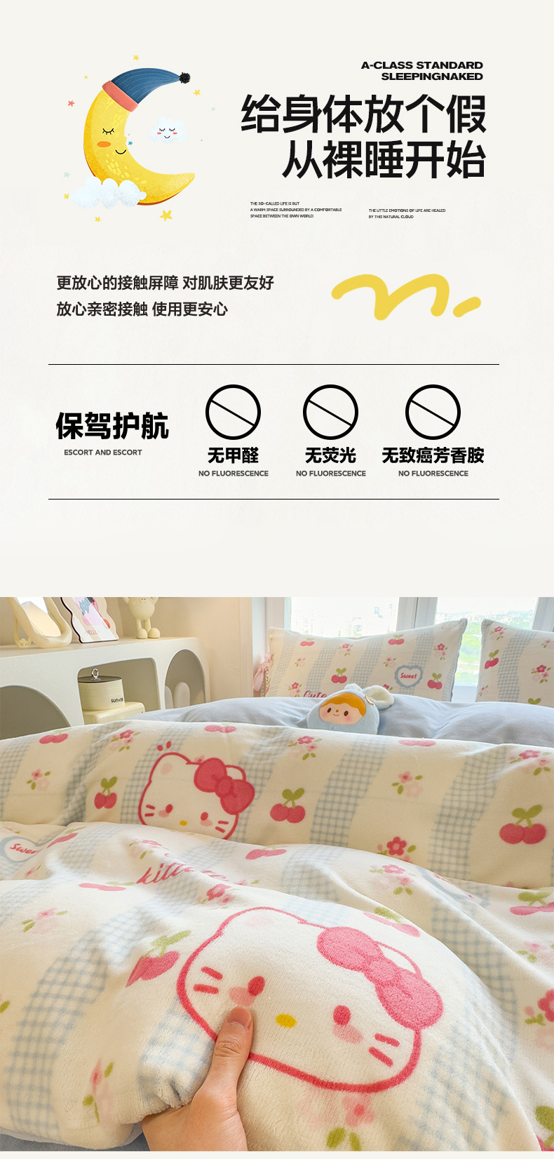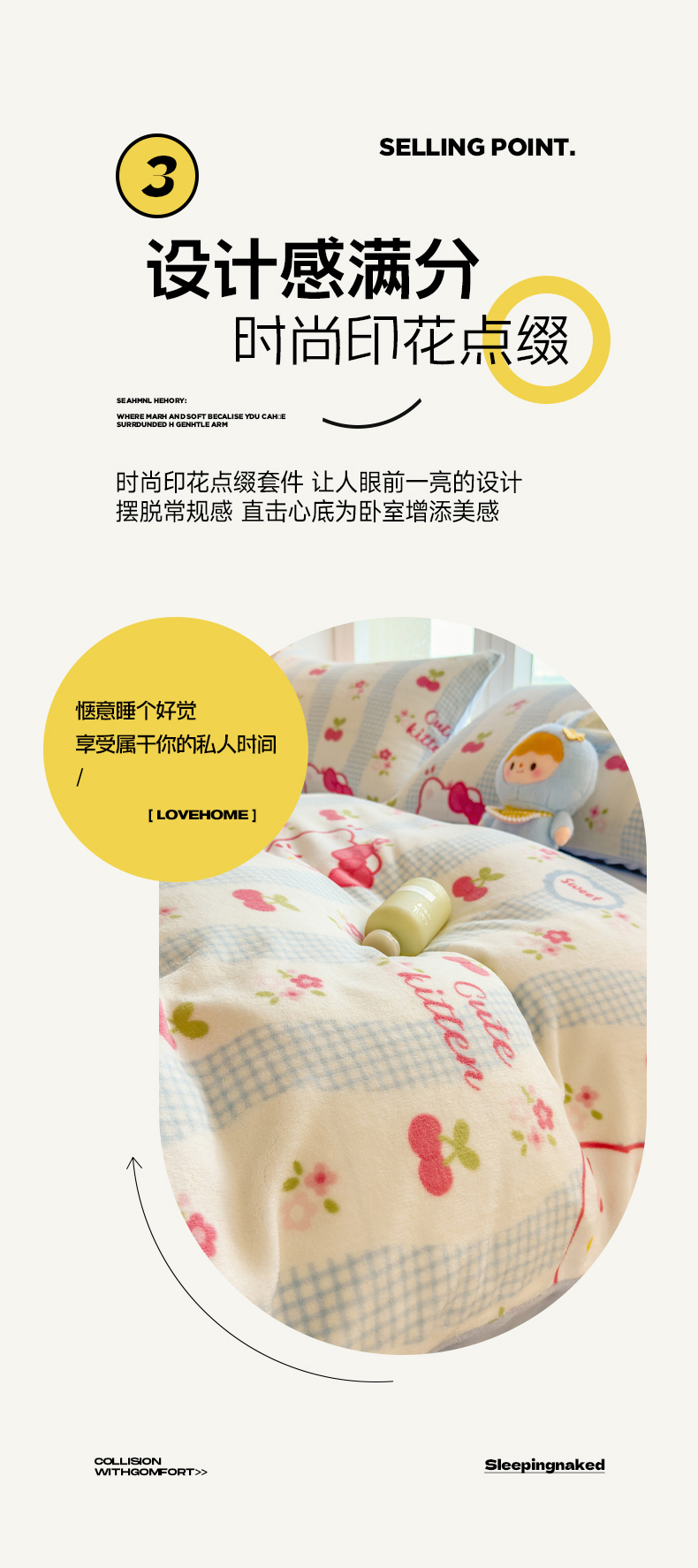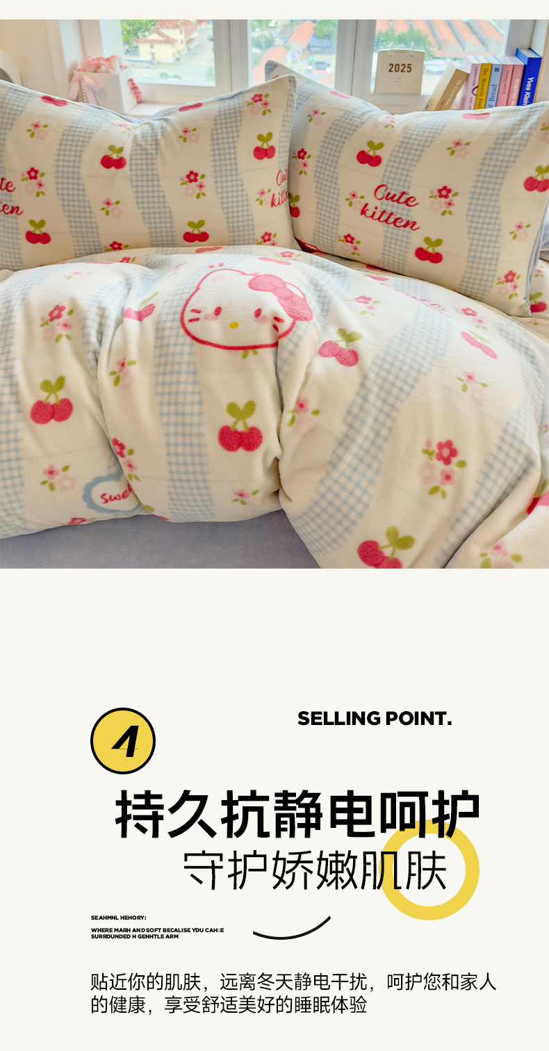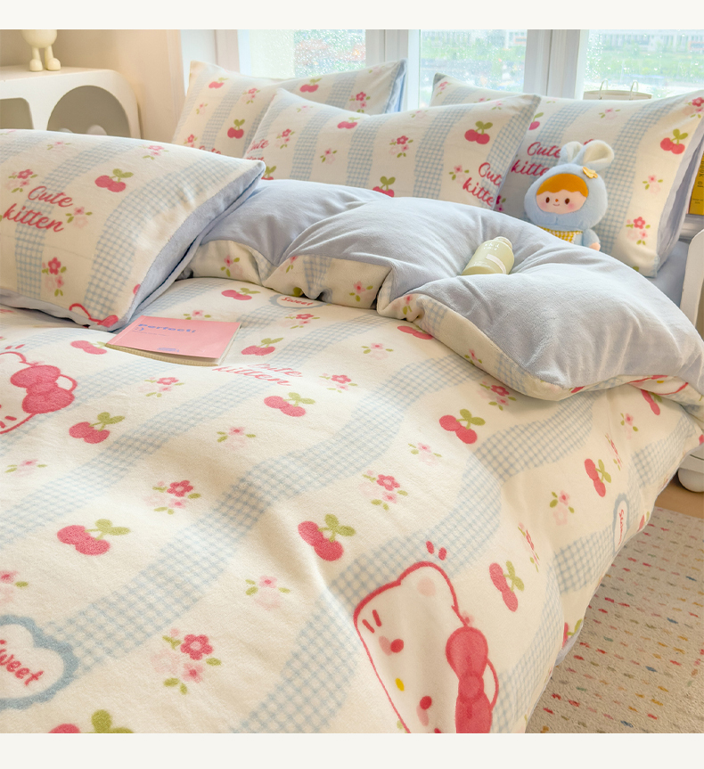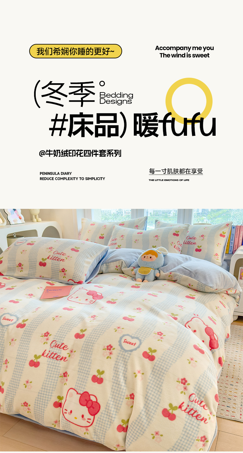 当前位置: 91家纺网 > 商品网购 > 床品套件 > 四件套 > 牛奶绒四件套 > 摩妮卡 摩妮卡 2025新款加厚款小清新牛奶绒印花四件套床单款床笠单被套 凯蒂小樱桃
