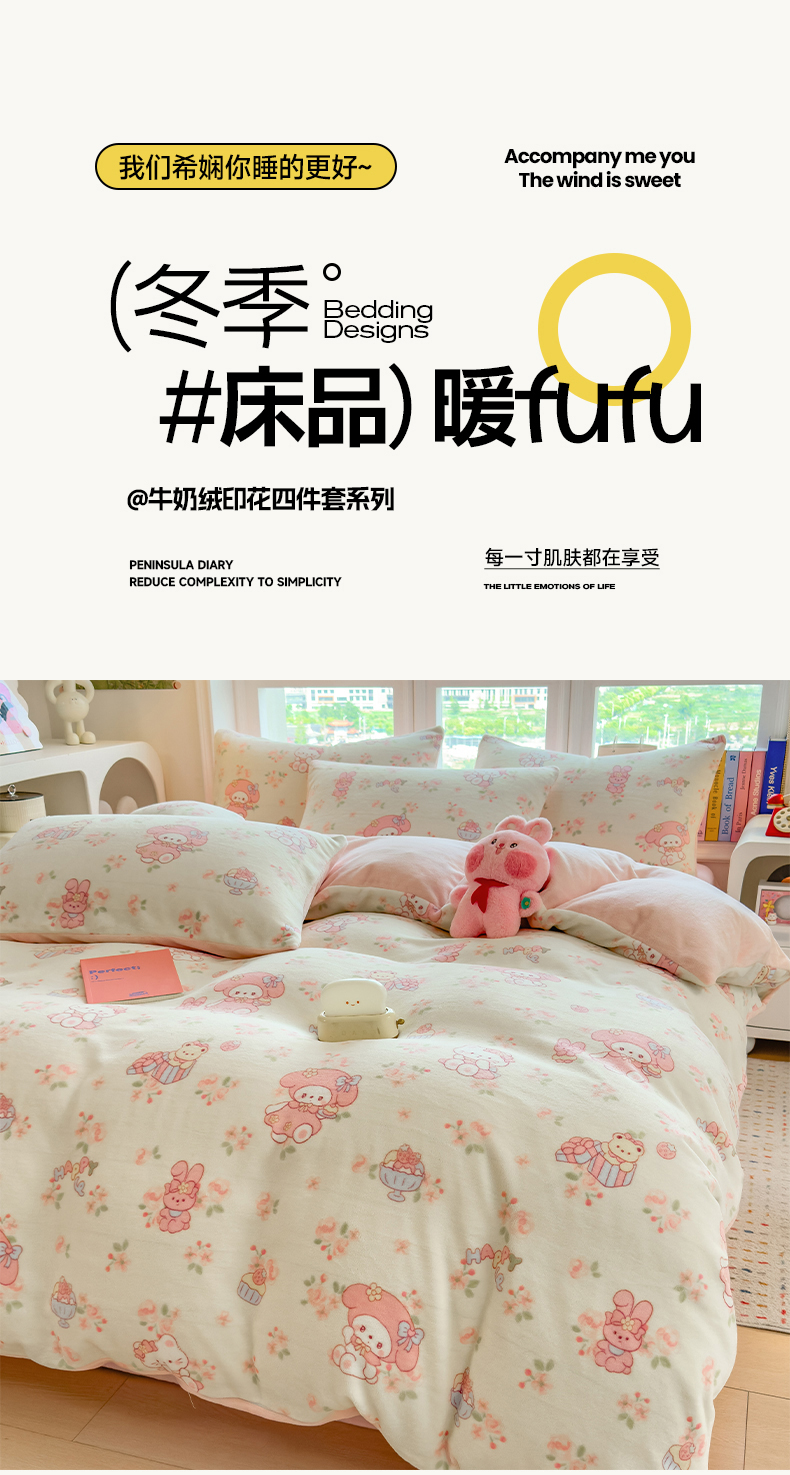 当前位置: 91家纺网 > 商品网购 > 床品套件 > 四件套 > 牛奶绒四件套 > 摩妮卡 摩妮卡 2025新款加厚款小清新牛奶绒印花四件套床单款床笠单被套 甜蜜小花