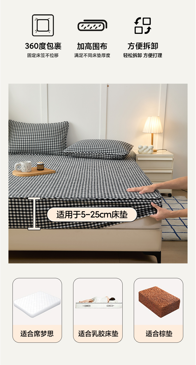 (总)佳笠家居 2025新款A类全棉色织水洗棉大豆棉夹棉床笠-半糖系列,半糖-灰粉,半糖-卡其,半糖-蓝黄格,组合图,半糖-艾绿,半糖-芭蕾粉