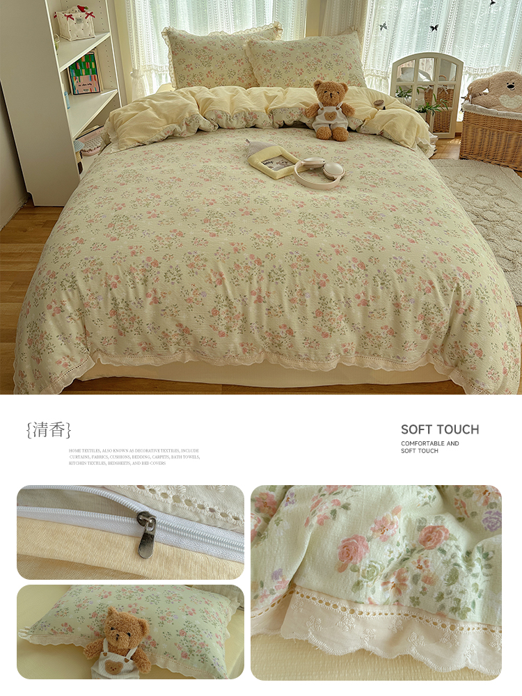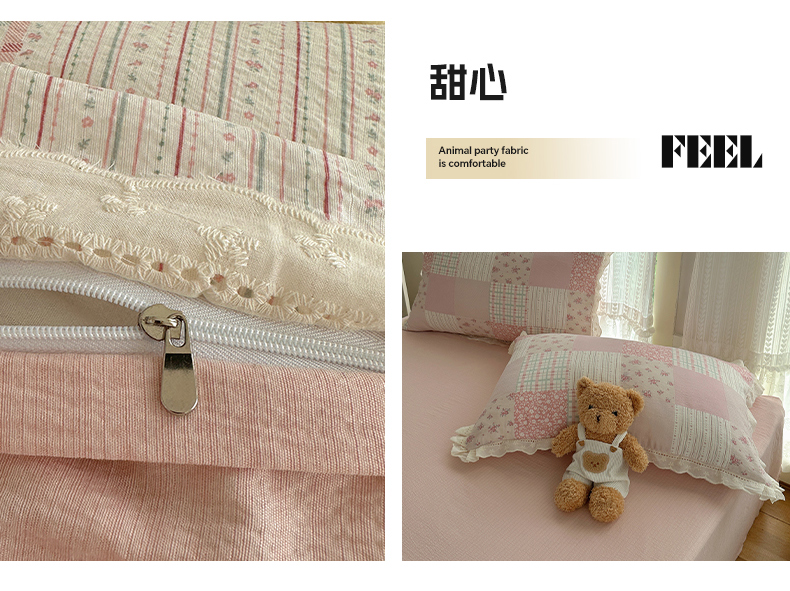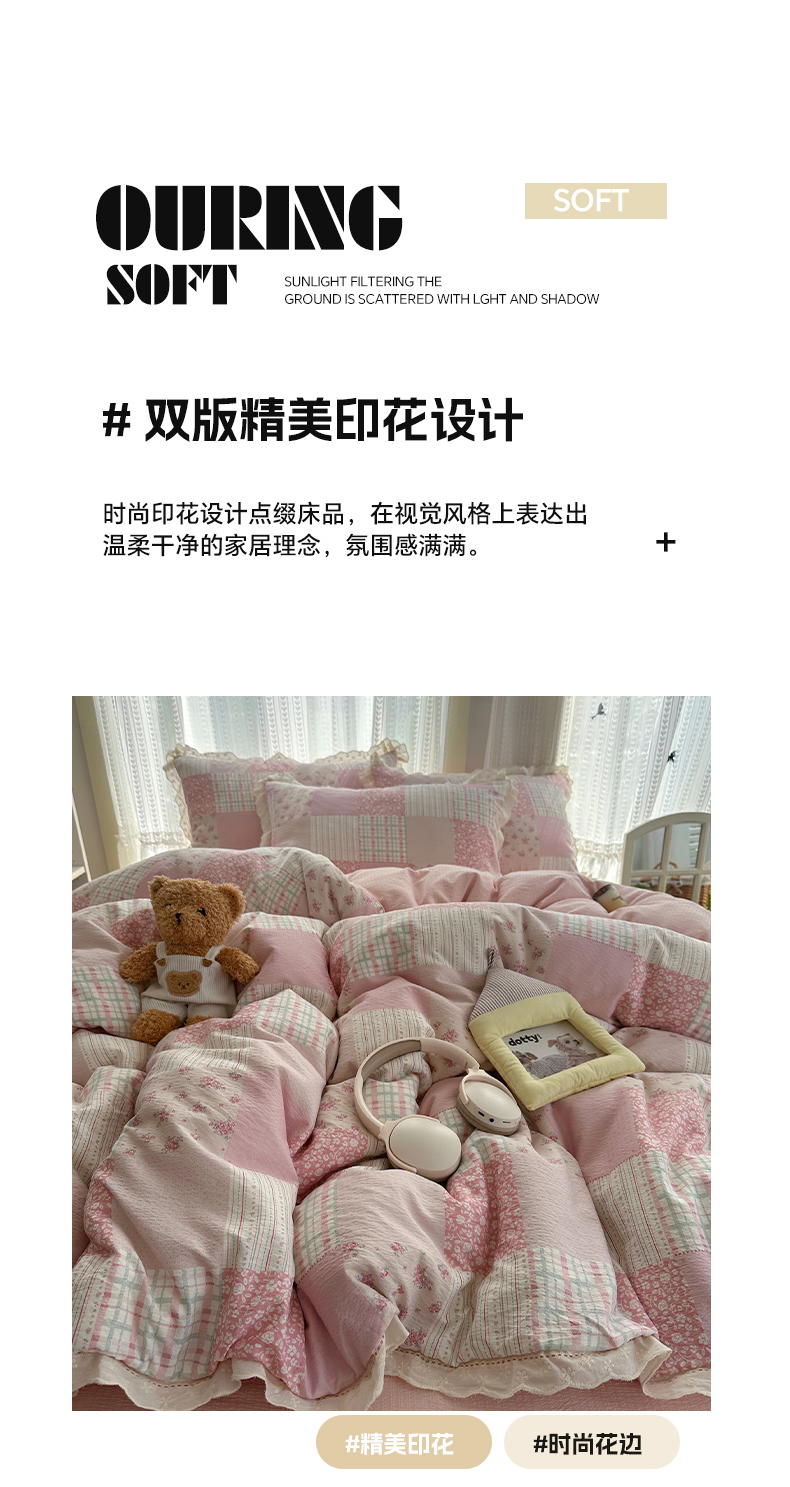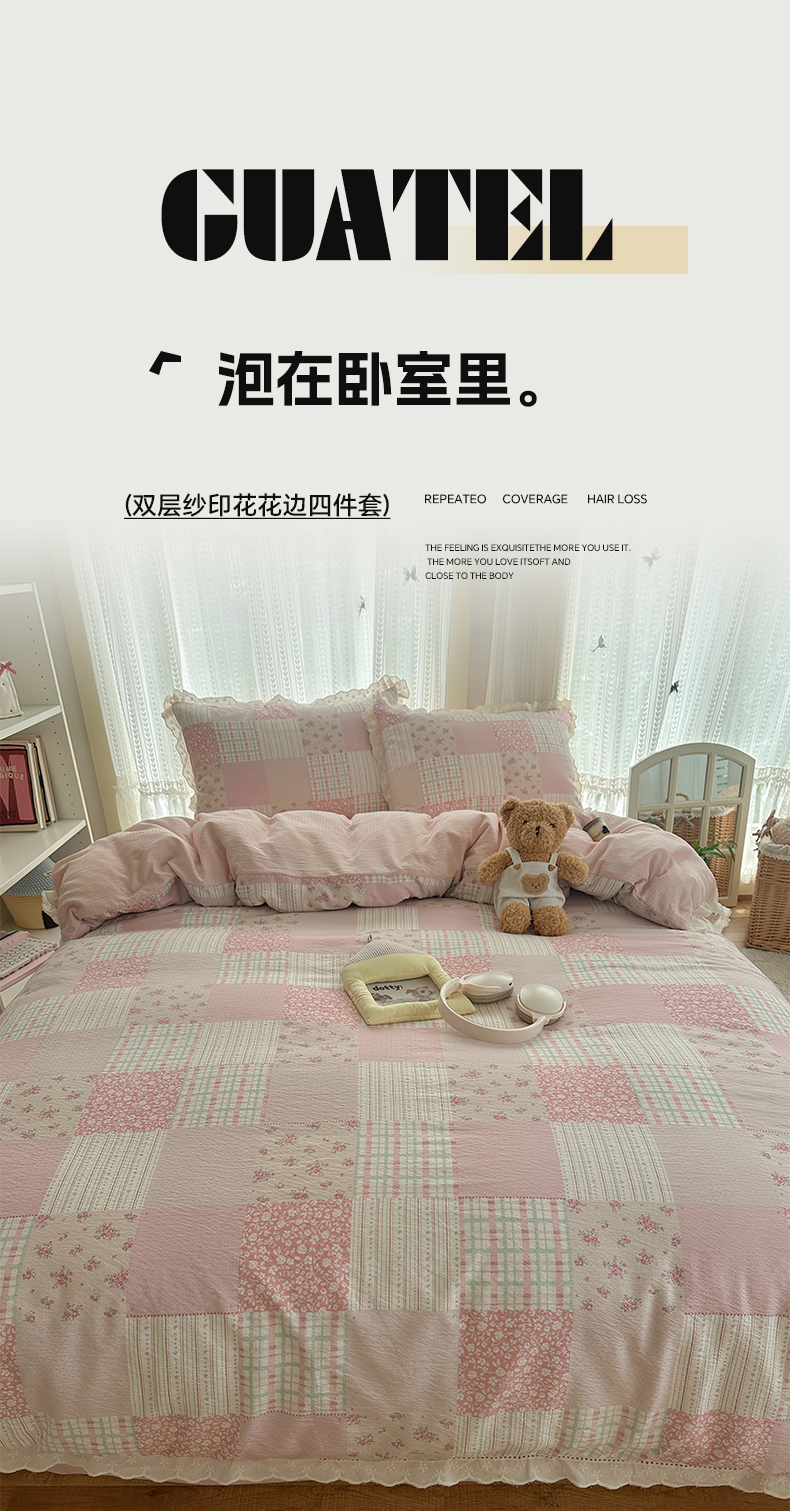 当前位置: 91家纺网 > 商品网购 > 床品套件 > 四件套 > 双层纱四件套 > 红嘴企鹅 2025新款花边双层纱印花四件套 甜心