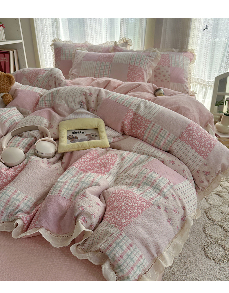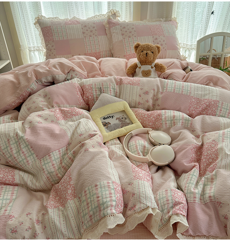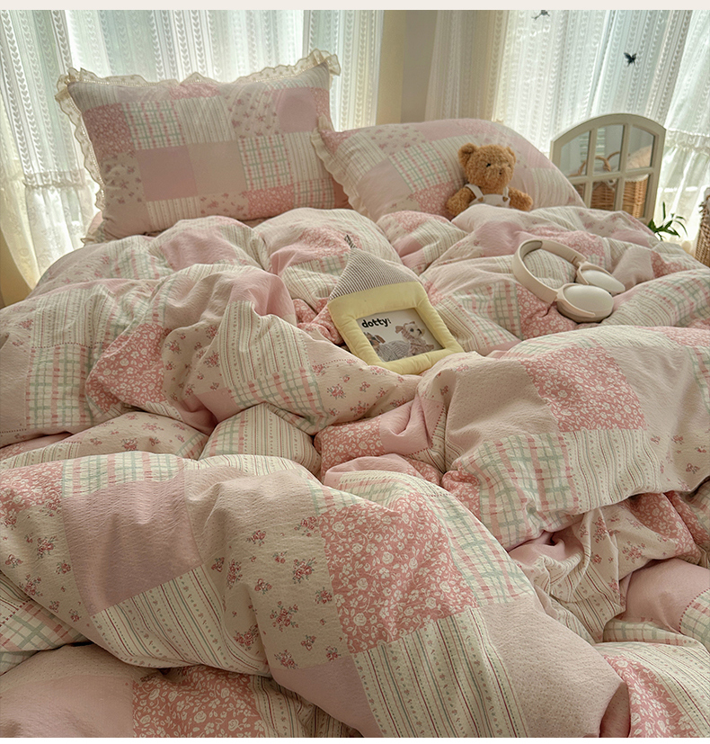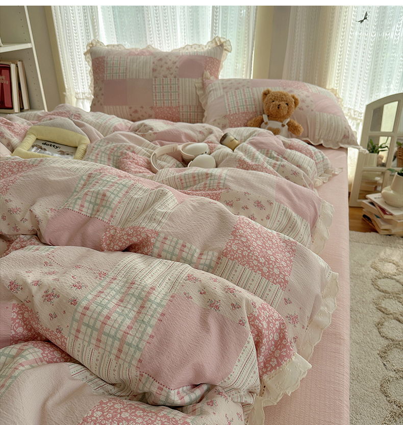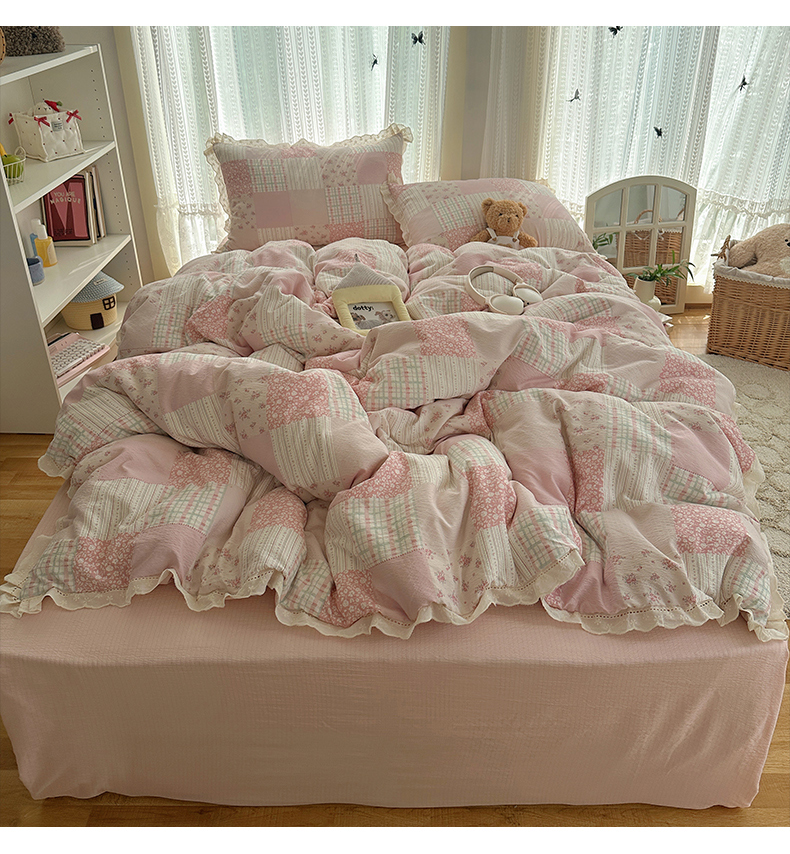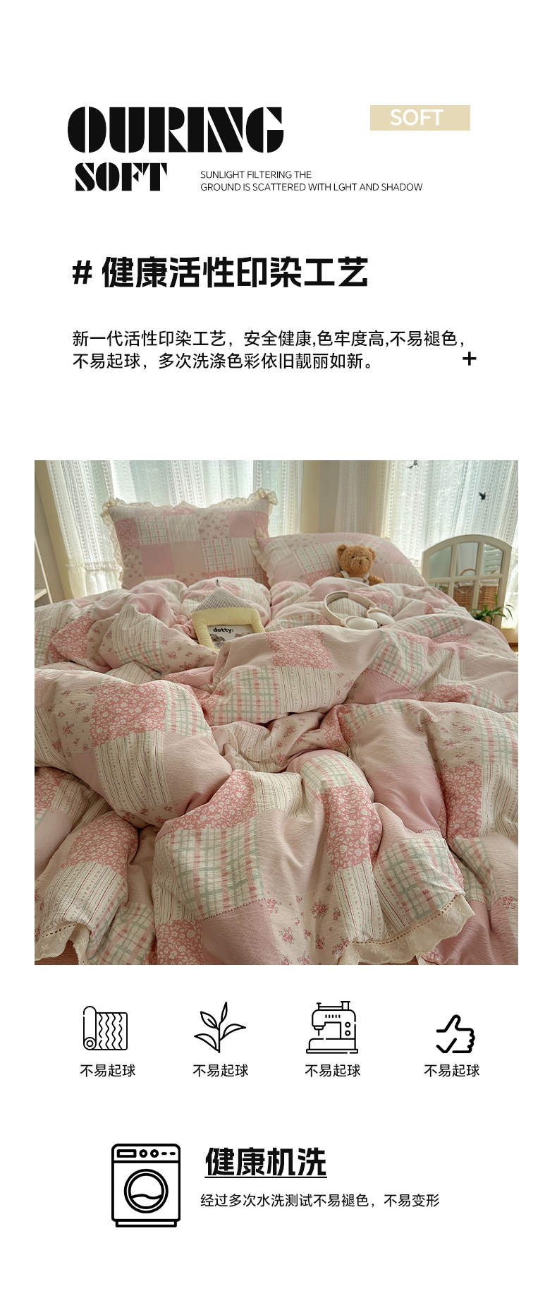 当前位置: 91家纺网 > 商品网购 > 床品套件 > 四件套 > 双层纱四件套 > 红嘴企鹅 2025新款花边双层纱印花四件套 甜心