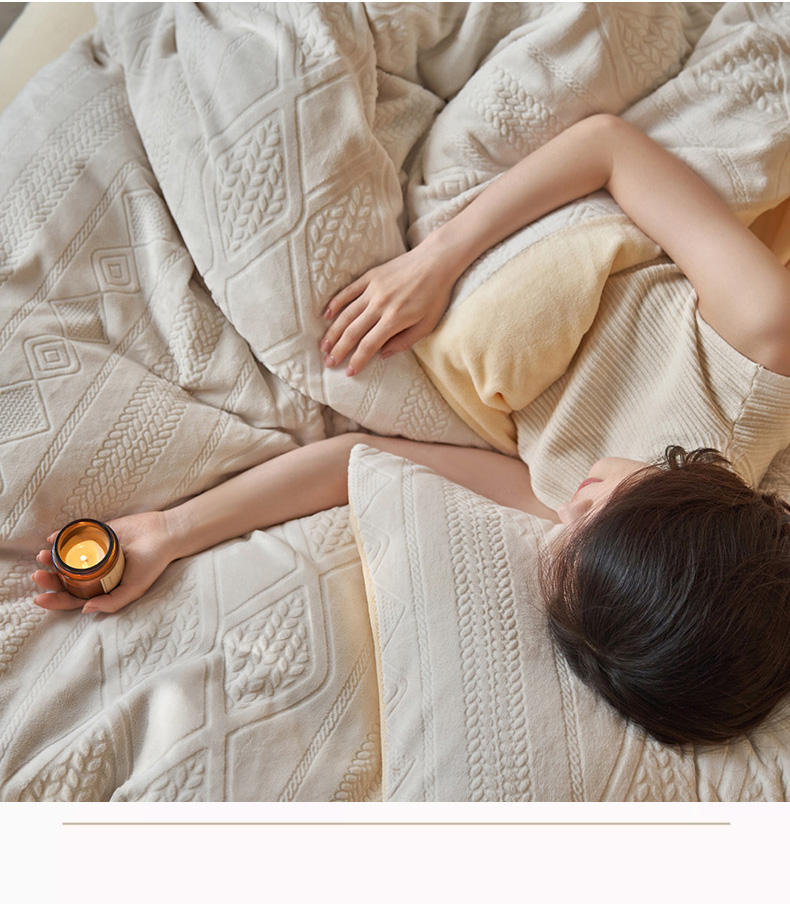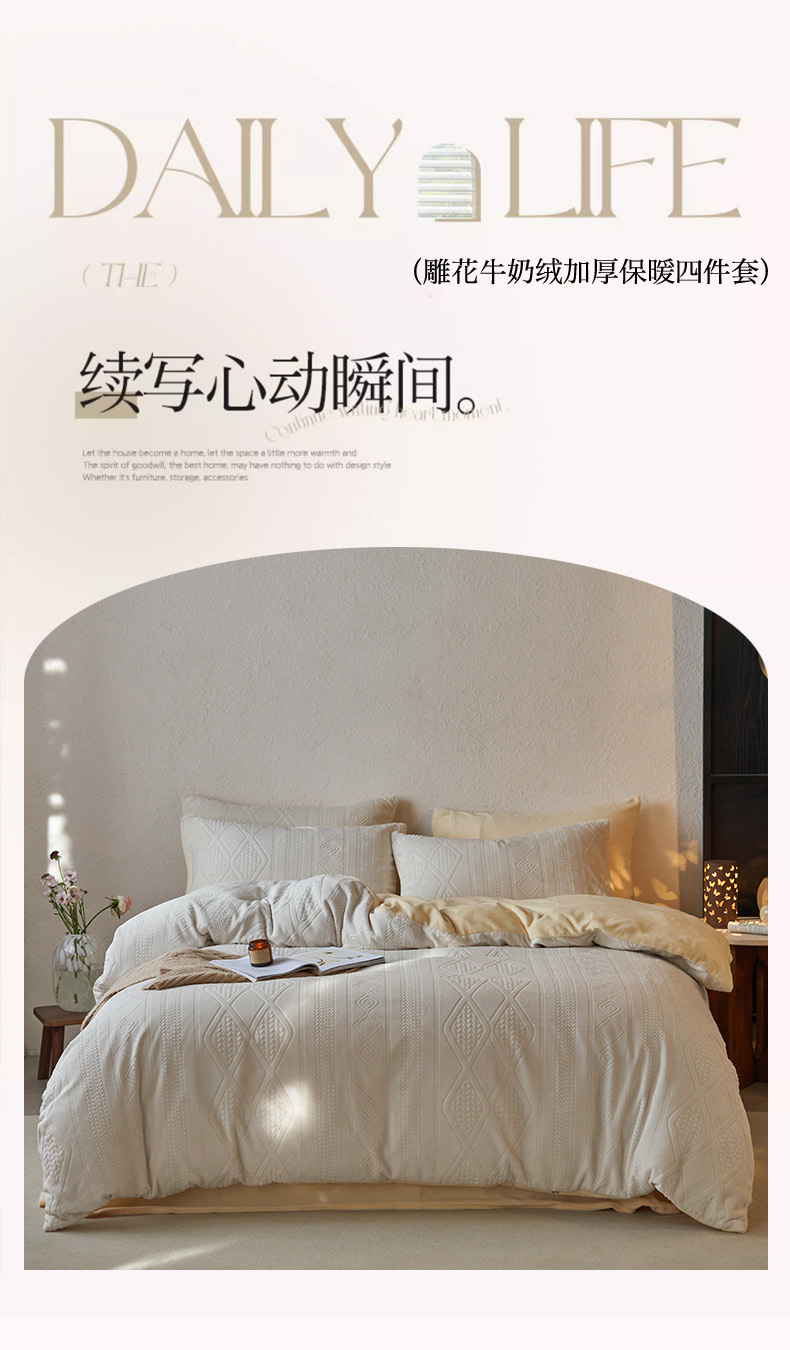 (总)眠博士 2025新款雕花加厚牛奶绒系列四件套