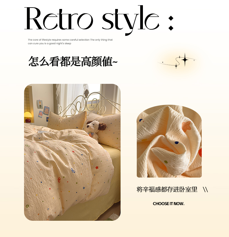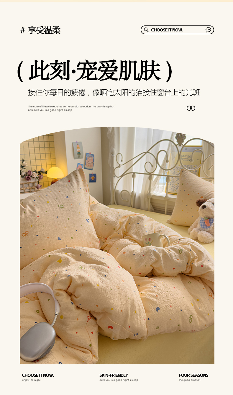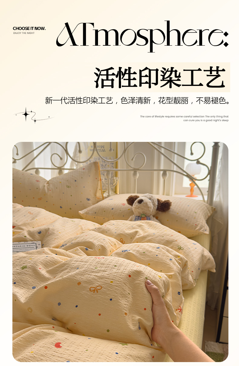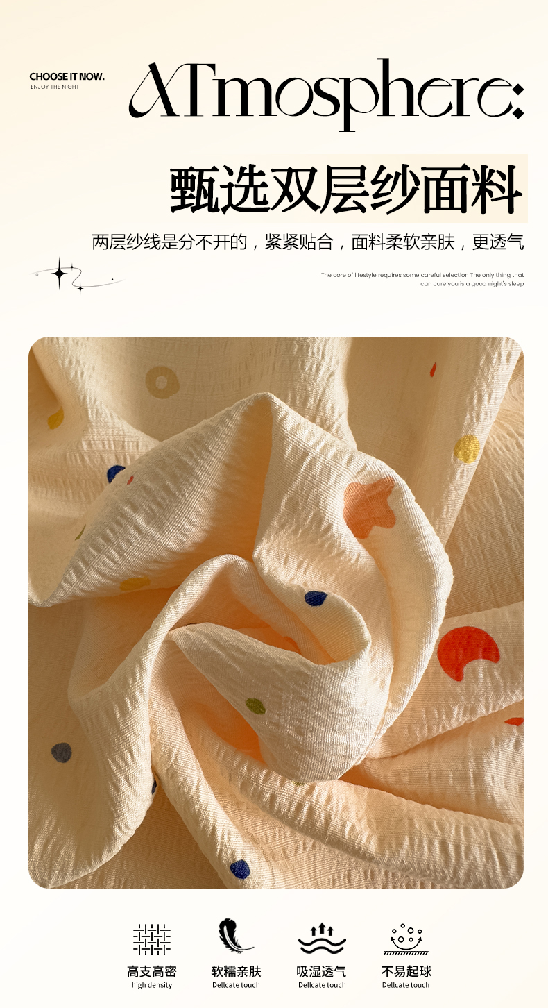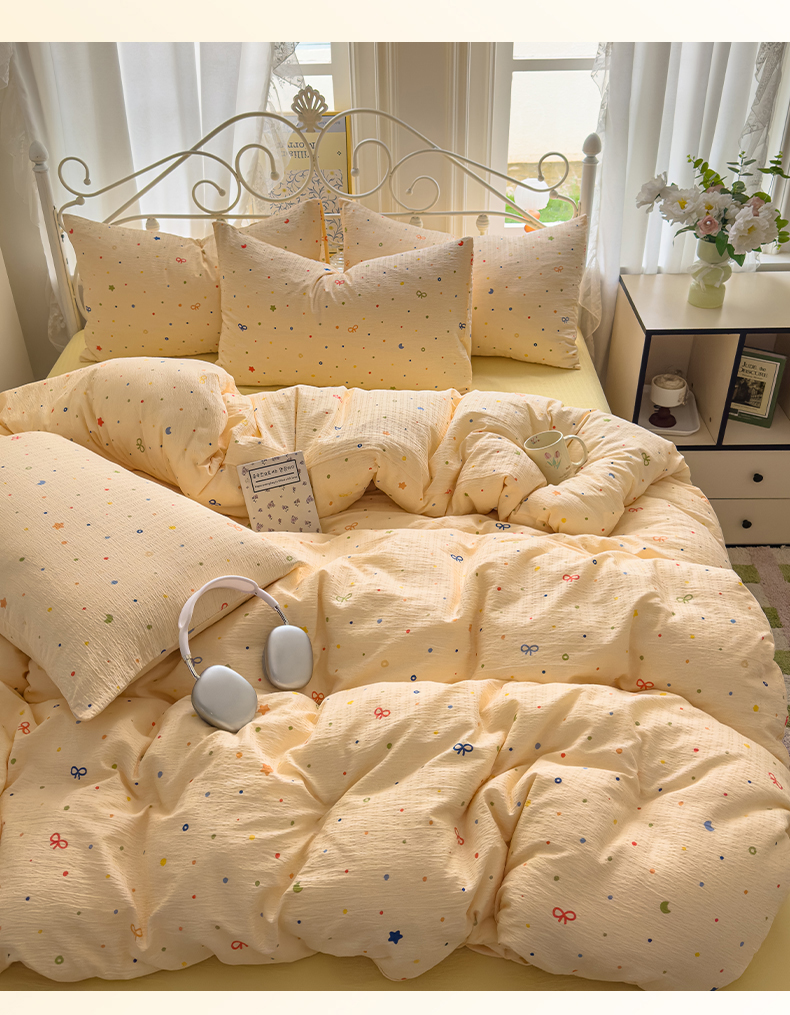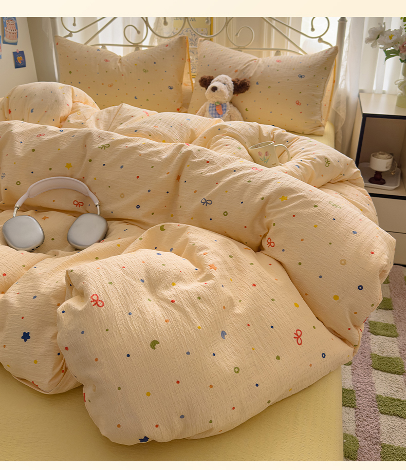 当前位置: 91家纺网 > 商品网购 > 床品套件 > 四件套 > 双层纱四件套 > 卡斯诺家纺馆 2025新款A类皱皱棉双层纱印花四件套 奶酪芝士