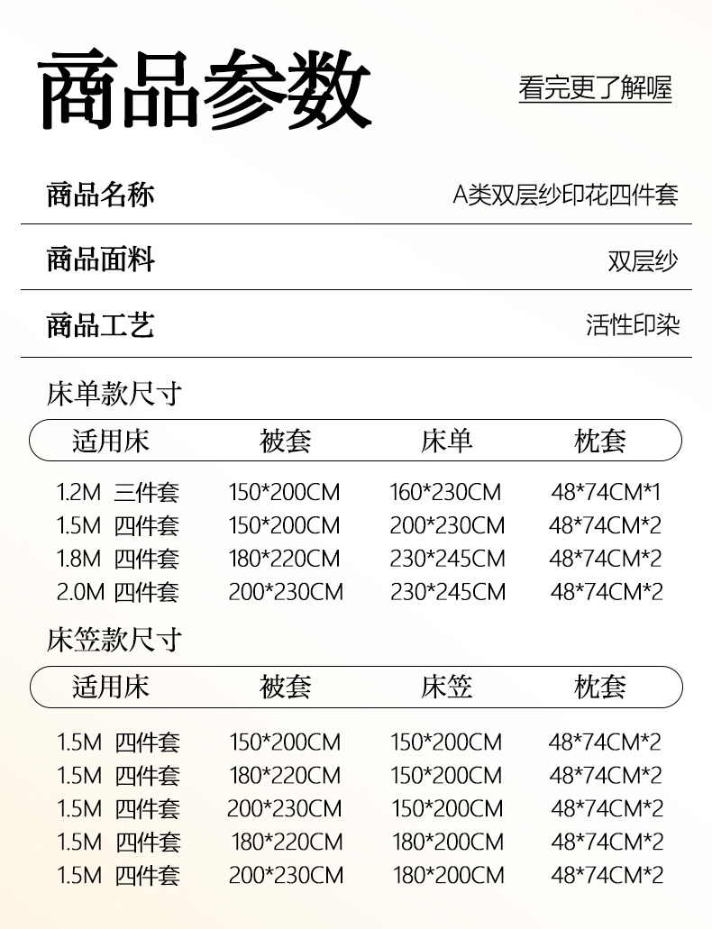 1.8m床笠四件套被套200x230cm | ¥52.00 |