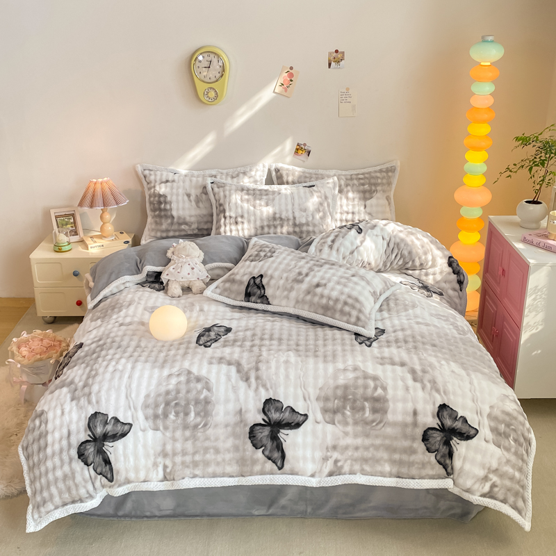 当前位置: 91家纺网 > 商品网购 > 床品套件 > 四件套 > 兔毛绒四件套 > 悦织湾家纺 2025新款床单床笠款A类仿兔毛绒印花泡泡四件套轻奢牛奶绒四件套单双人学生宿舍 泡泡咪咪灰