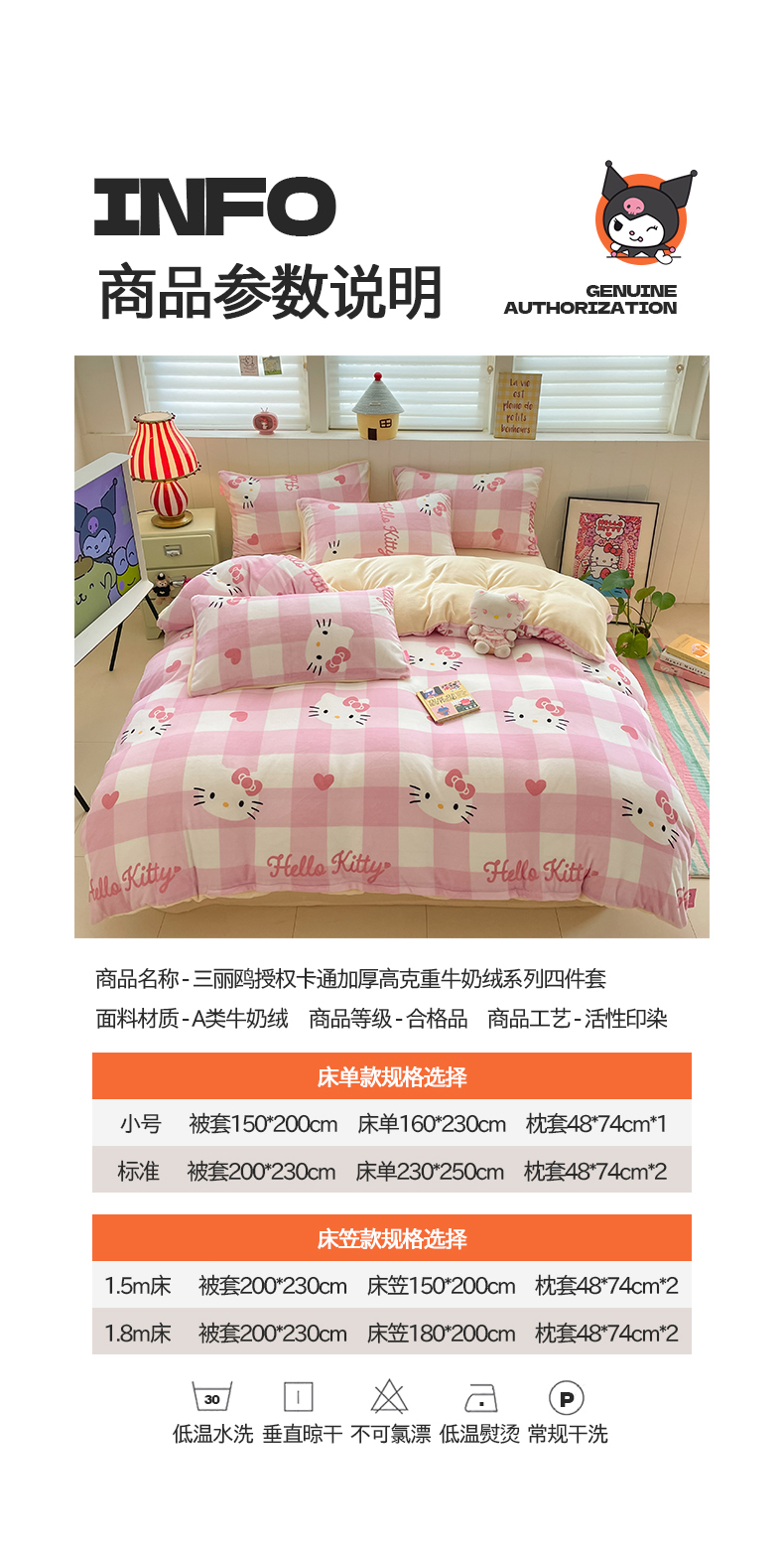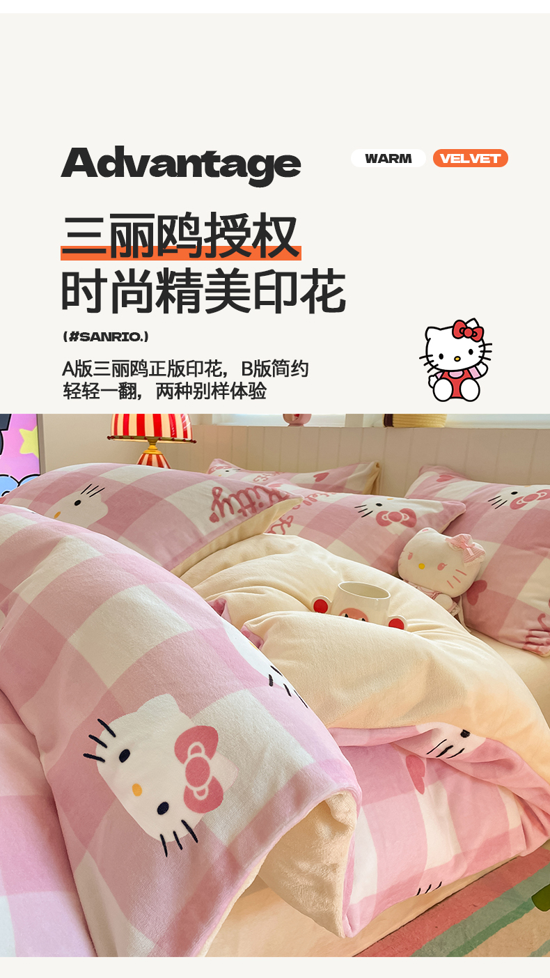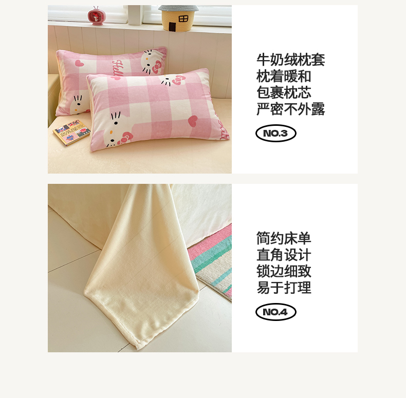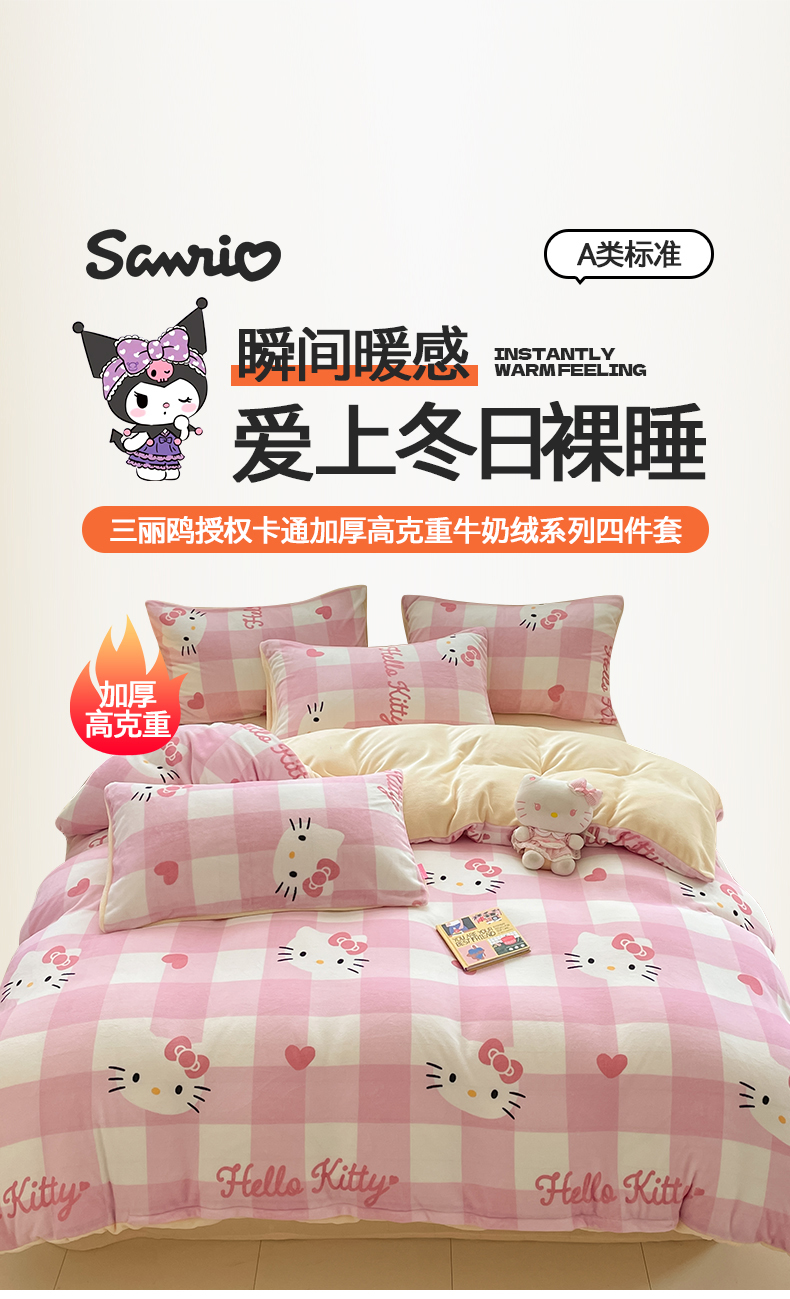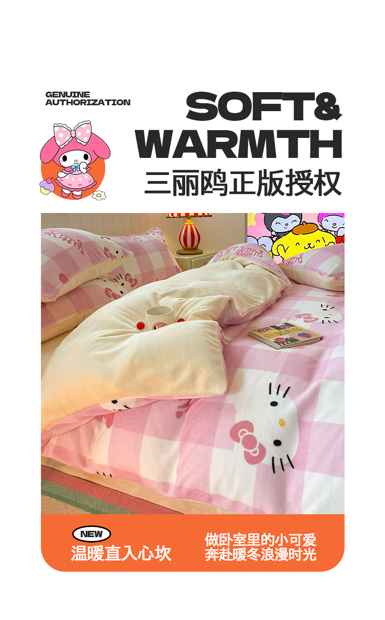 当前位置: 91家纺网 > 商品网购 > 床品套件 > 四件套 > 牛奶绒四件套 > 金爱家 2025新款A类正版三丽鸥授权卡通加厚高克重牛奶绒系列四件套 绒三丽鸥-粉梦kitty