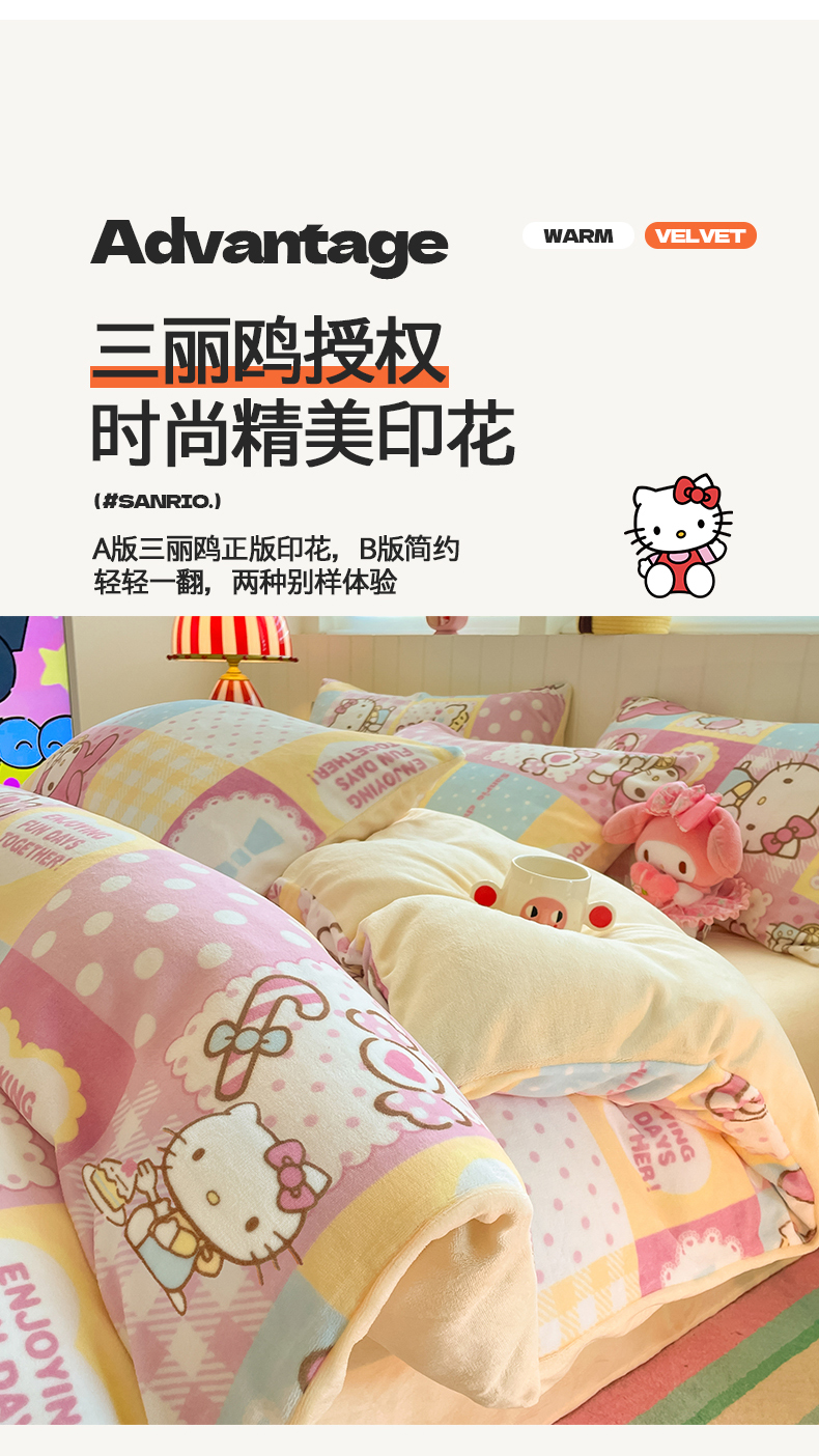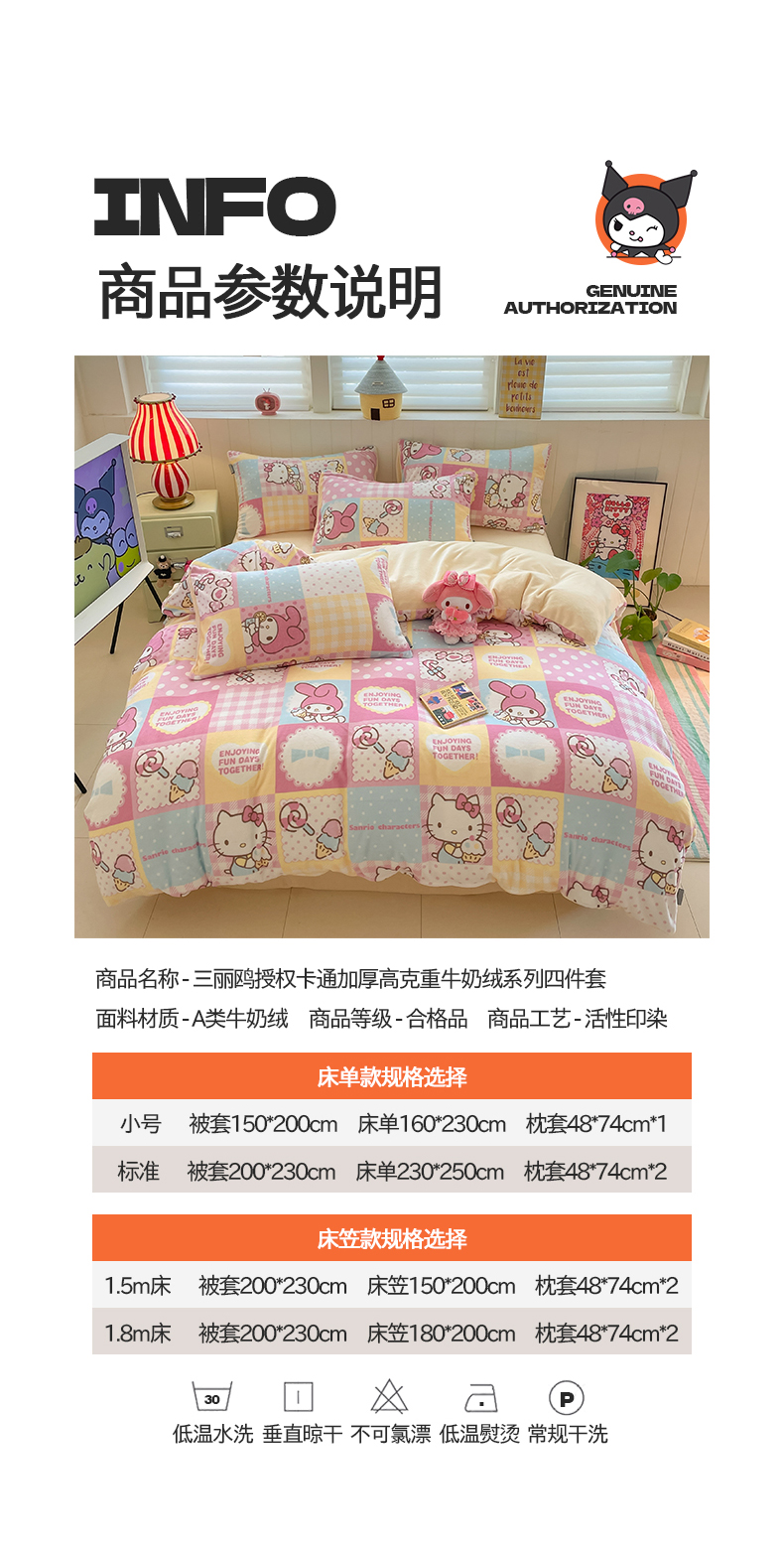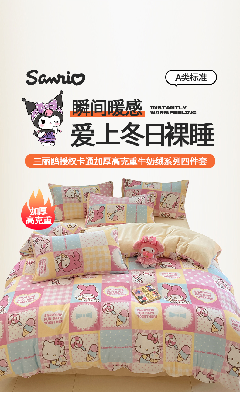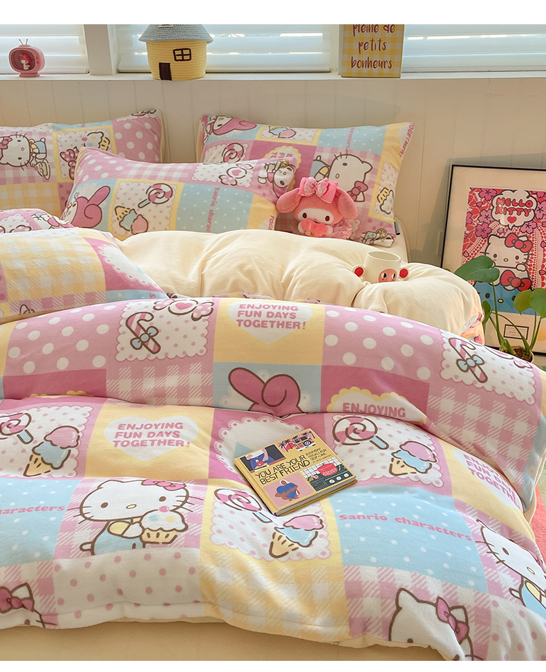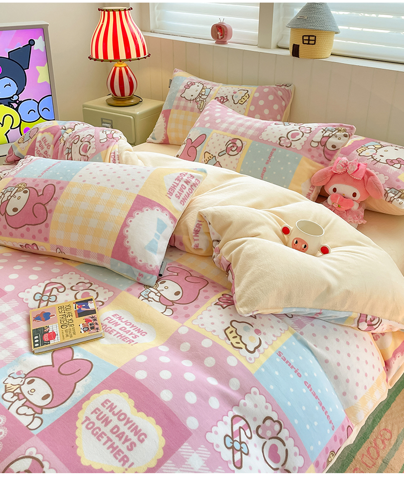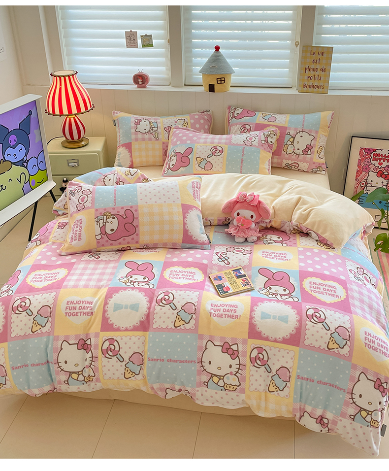 当前位置: 91家纺网 > 商品网购 > 床品套件 > 四件套 > 牛奶绒四件套 > 金爱家 2025新款A类正版三丽鸥授权卡通加厚高克重牛奶绒系列四件套 绒三丽鸥-梦幻kitty美乐蒂