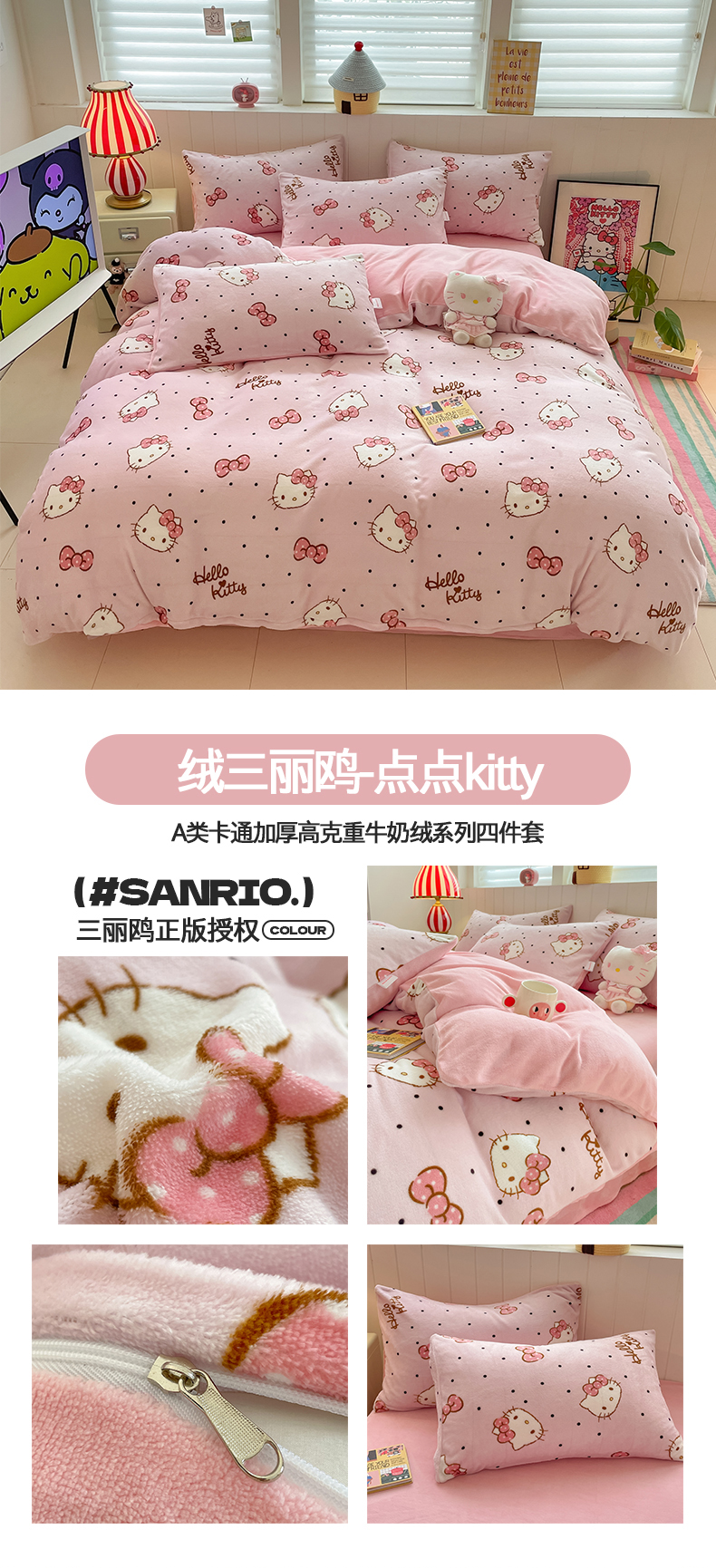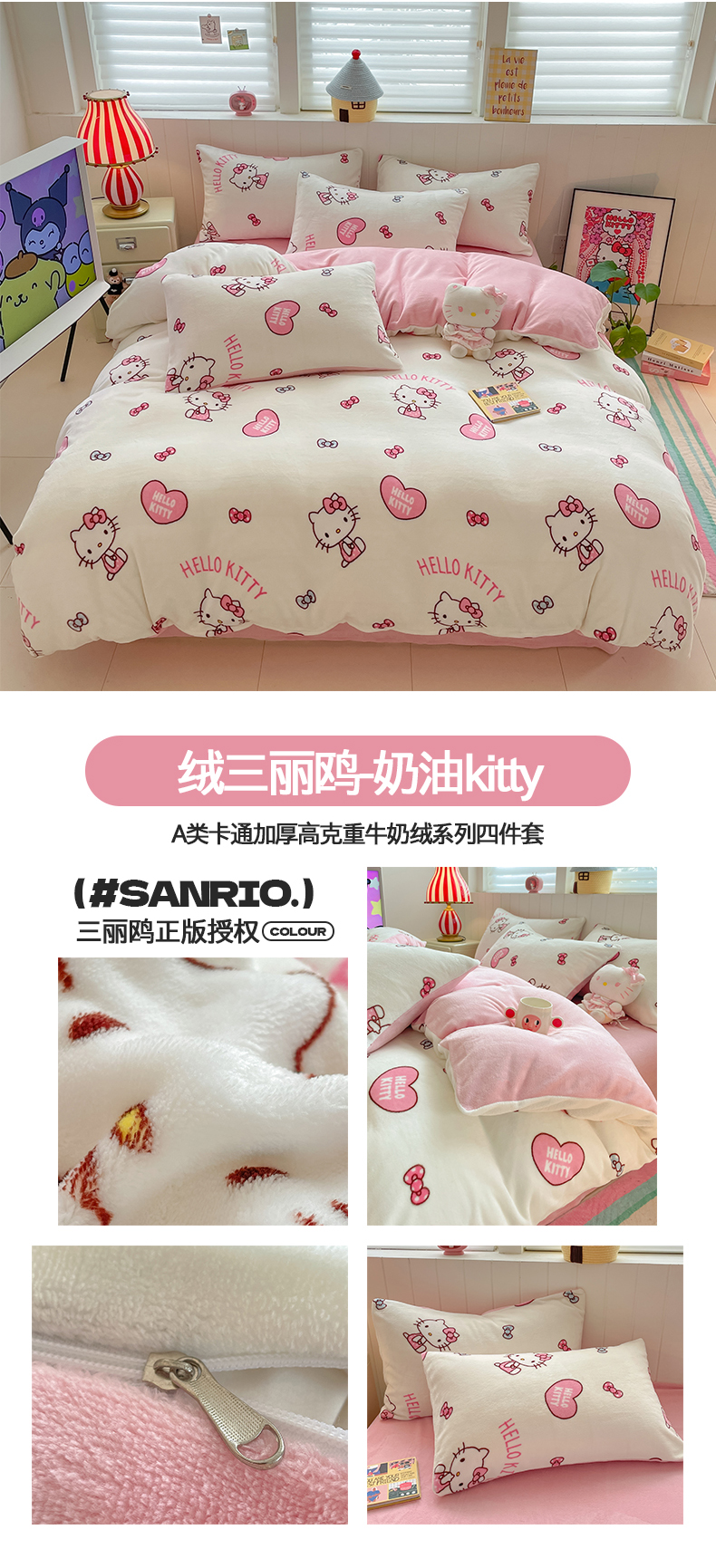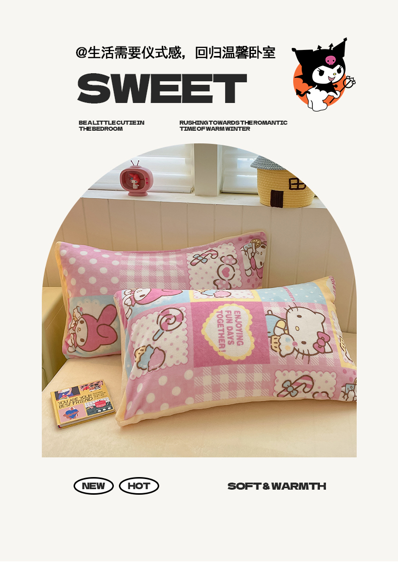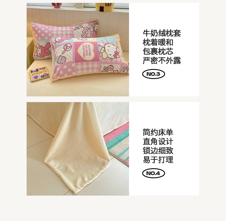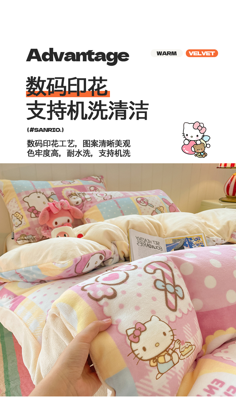 当前位置: 91家纺网 > 商品网购 > 床品套件 > 四件套 > 牛奶绒四件套 > 金爱家 2025新款A类正版三丽鸥授权卡通加厚高克重牛奶绒系列四件套 绒三丽鸥-梦幻kitty美乐蒂