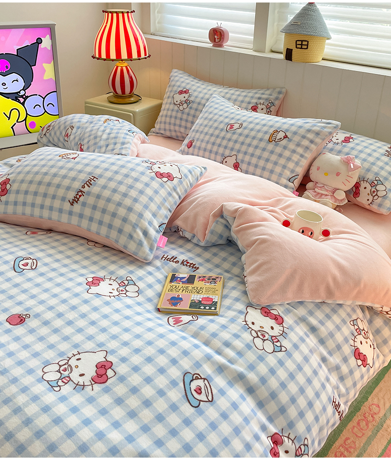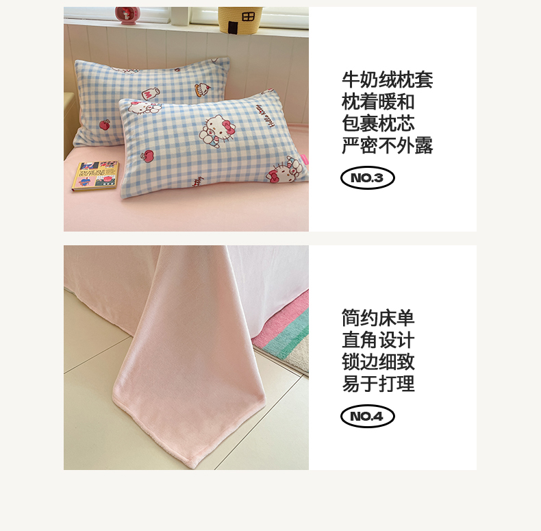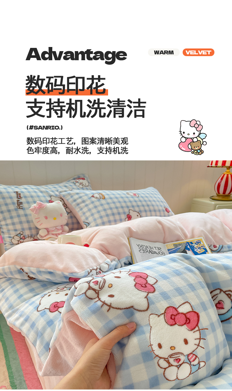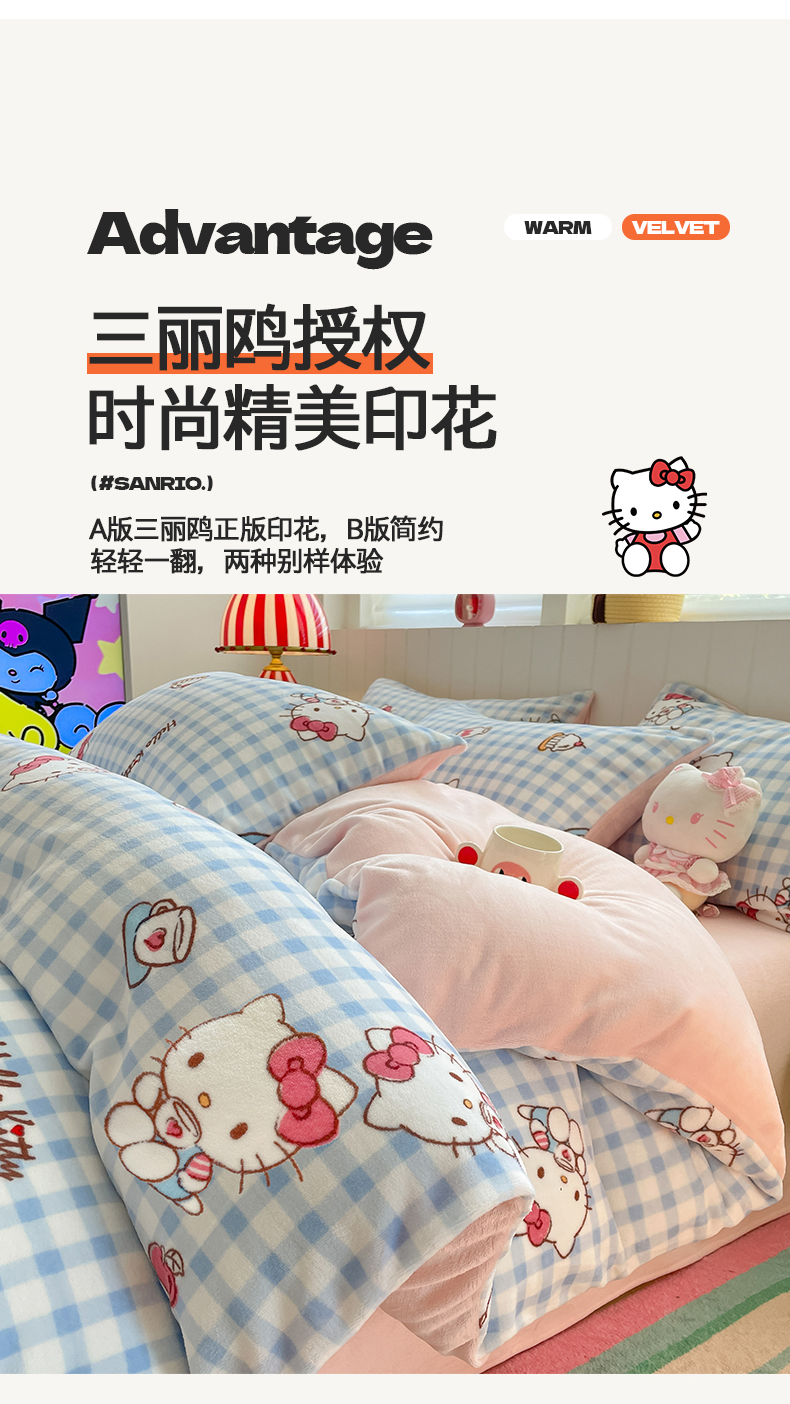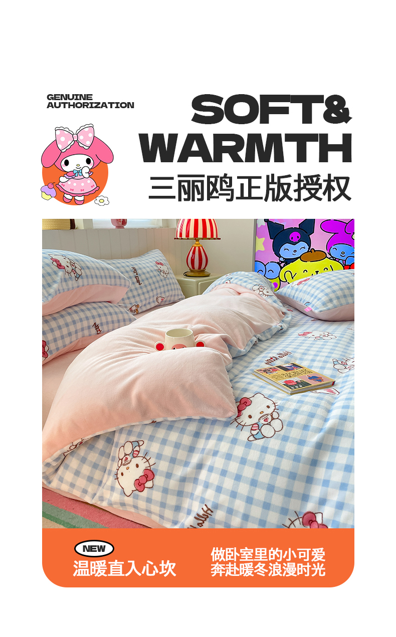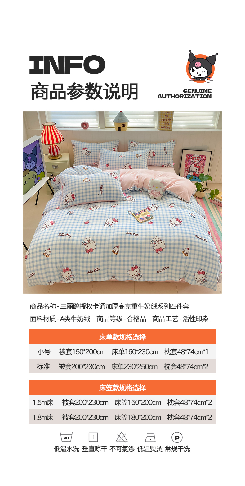 当前位置: 91家纺网 > 商品网购 > 床品套件 > 四件套 > 牛奶绒四件套 > 金爱家 2025新款A类正版三丽鸥授权卡通加厚高克重牛奶绒系列四件套 绒三丽鸥-甜心kitty蓝