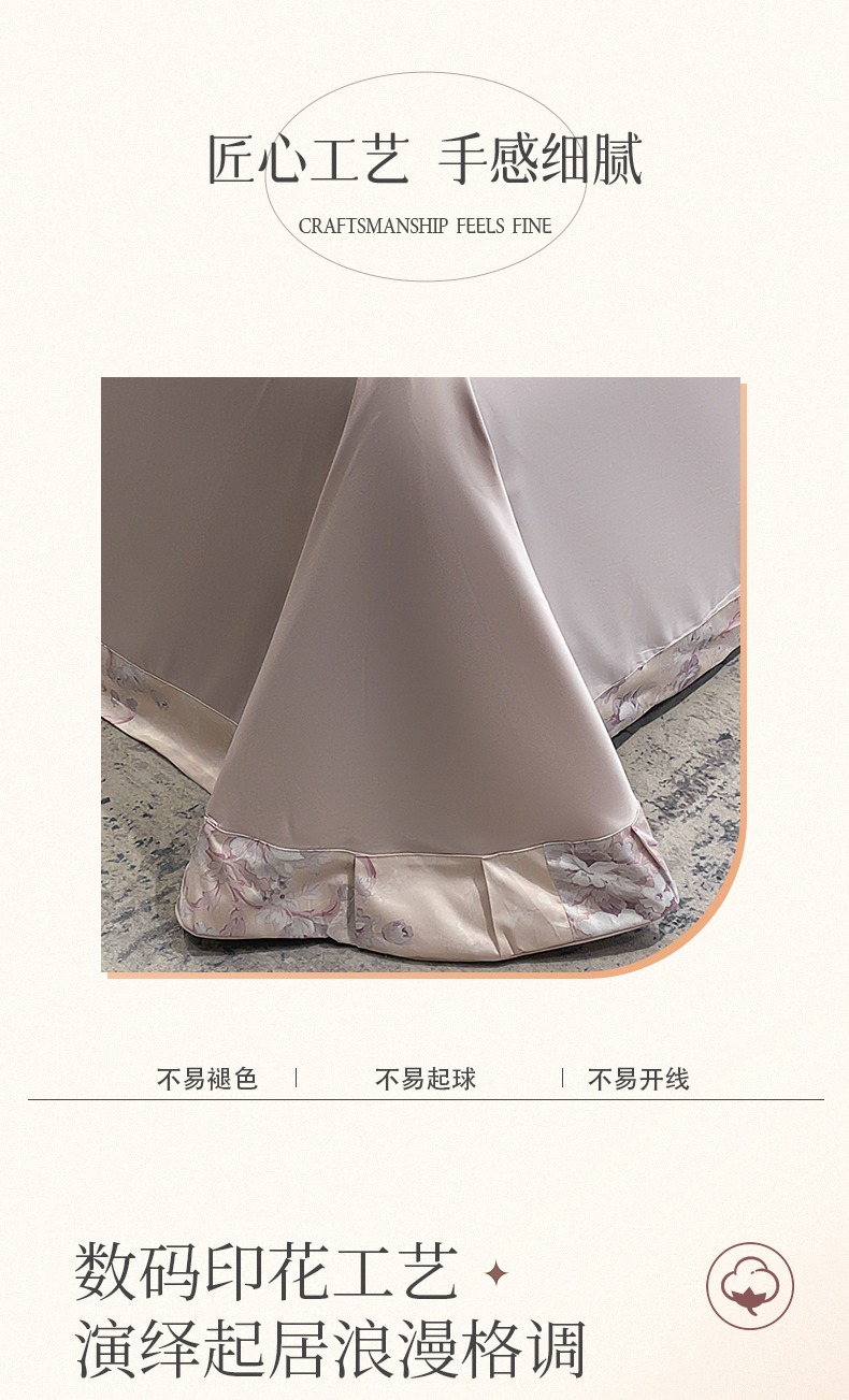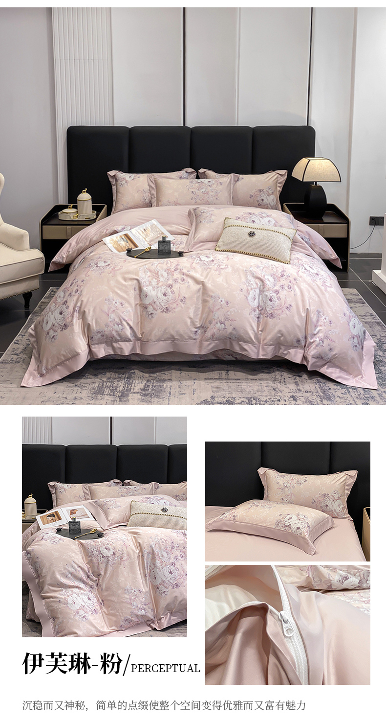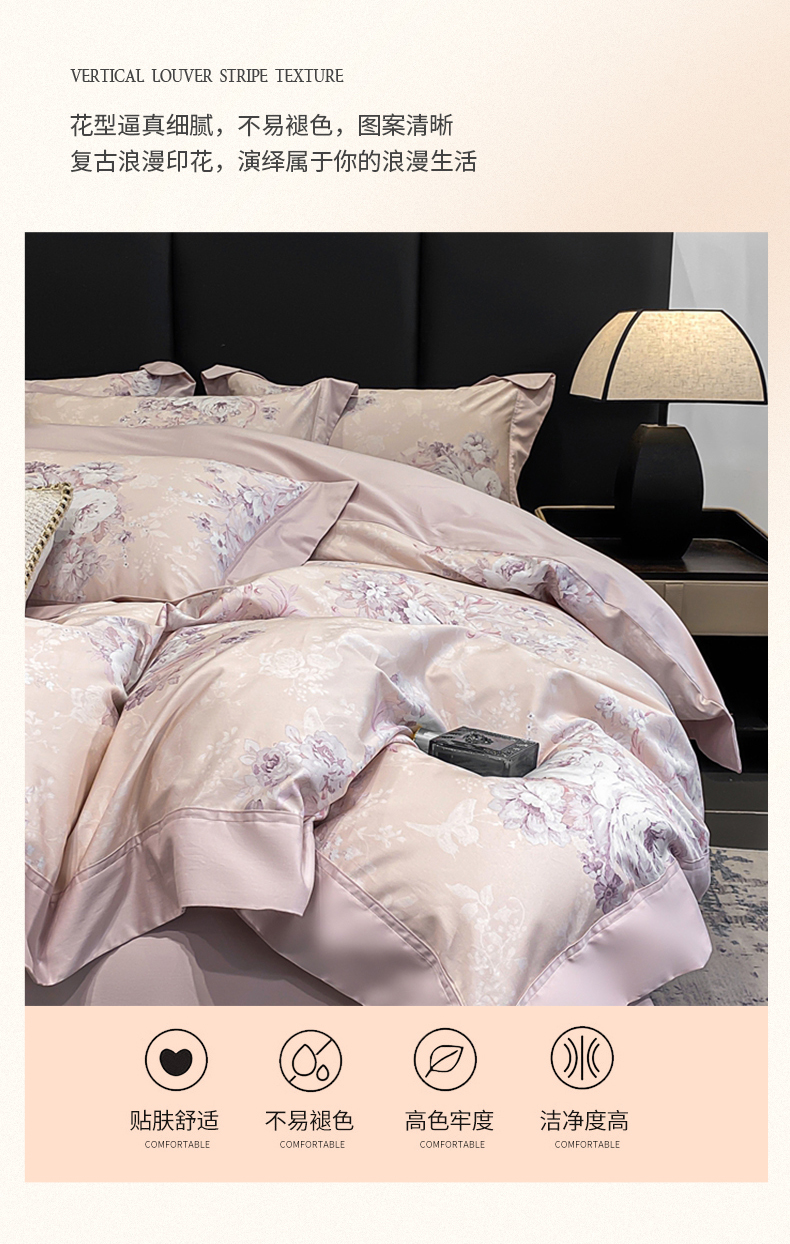 娇逸家居 2025新款100支新疆长绒棉纯棉数码印花全棉四件套(专版花型) 伊芙琳-粉