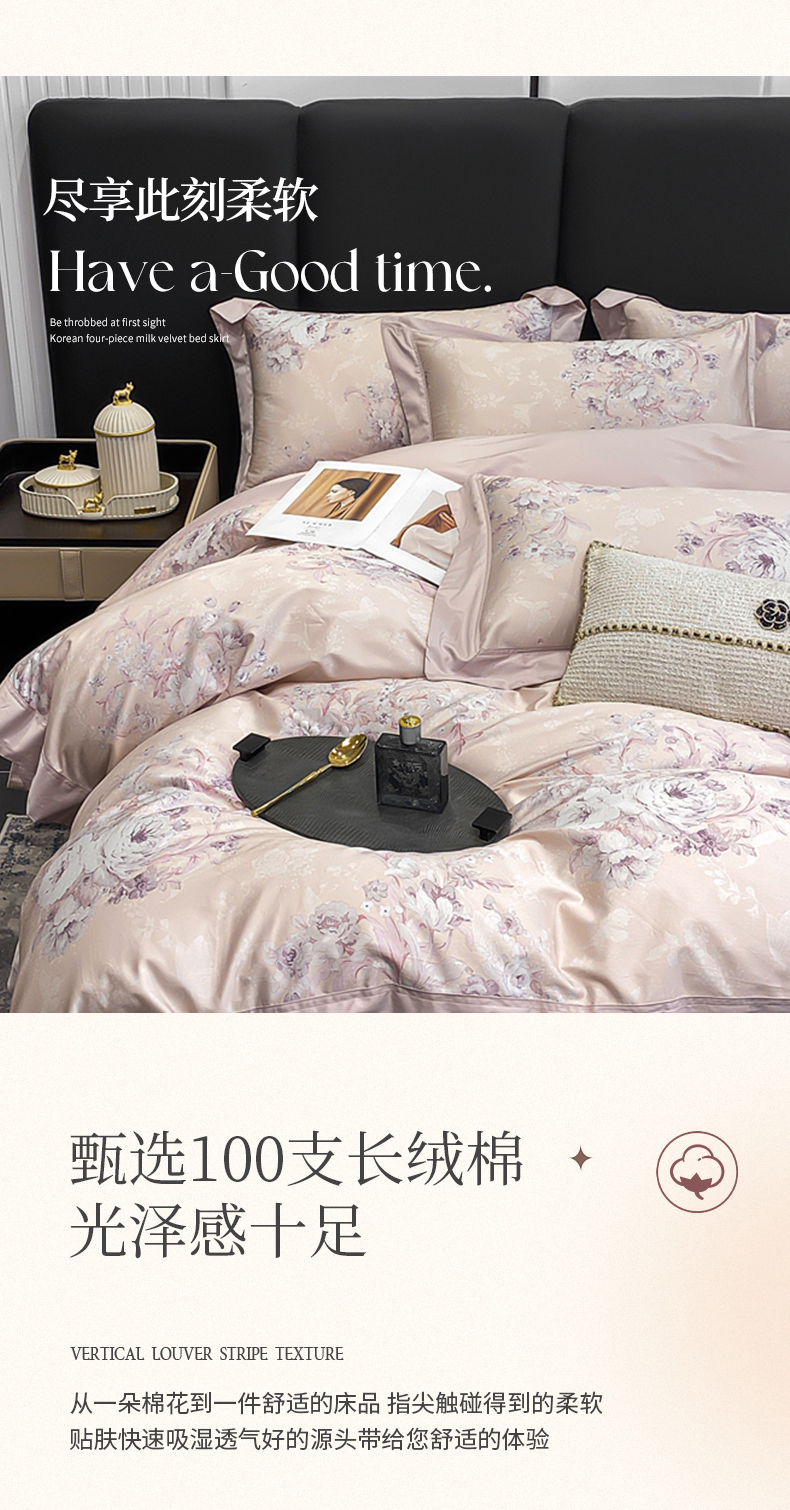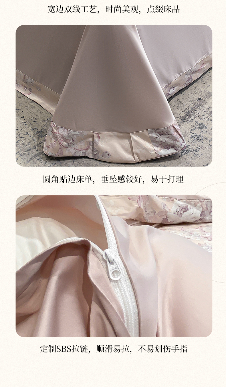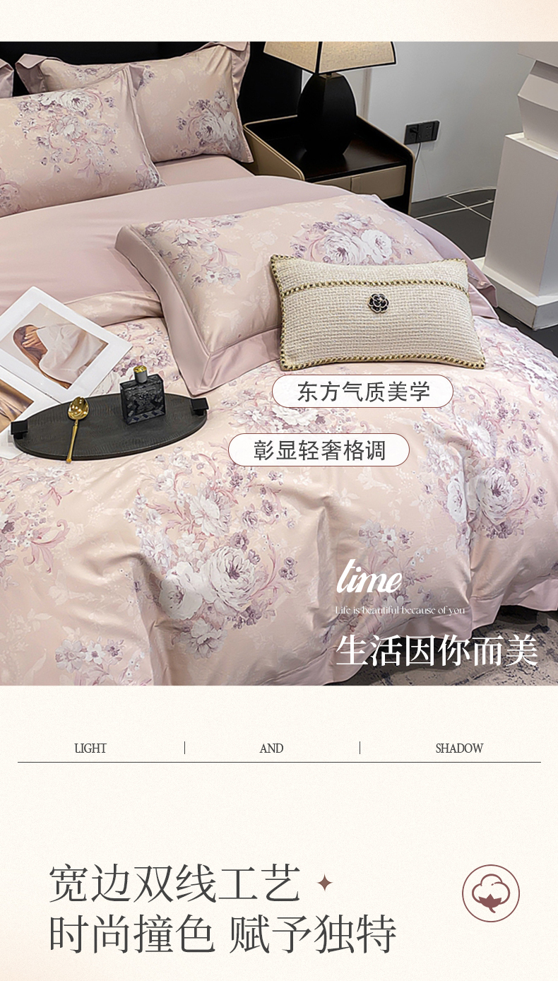 娇逸家居 2025新款100支新疆长绒棉纯棉数码印花全棉四件套(专版花型) 伊芙琳-粉