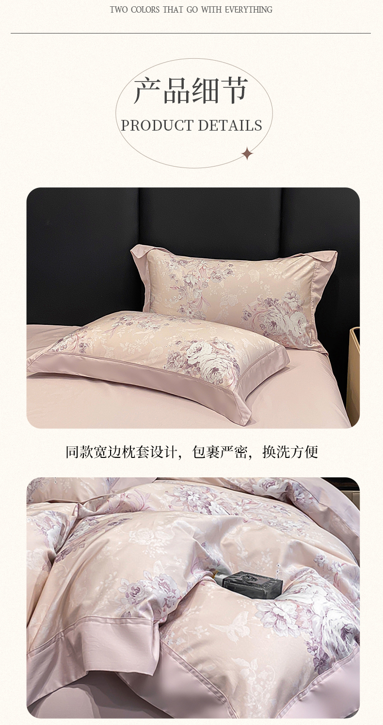 商品名称:娇逸家居 2025新款100支新疆长绒棉纯棉数码印花全棉四件套(专版花型) 伊芙琳-粉