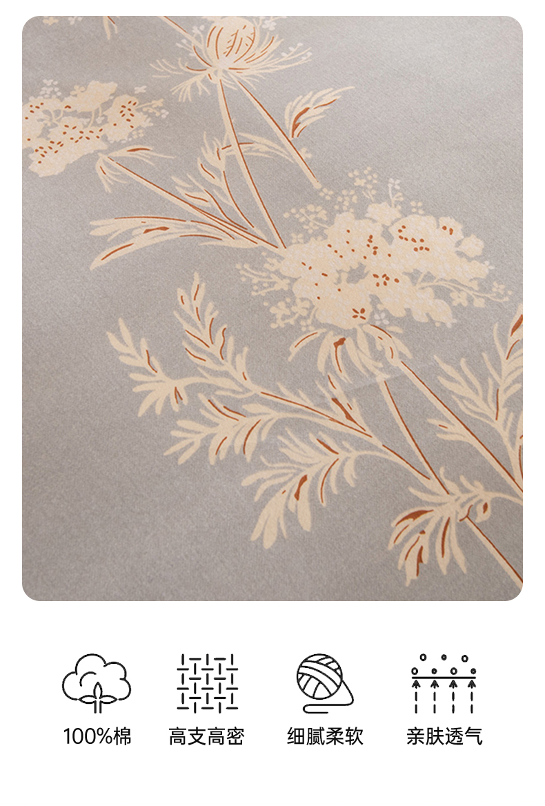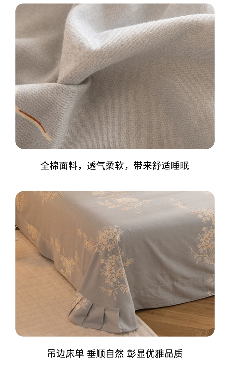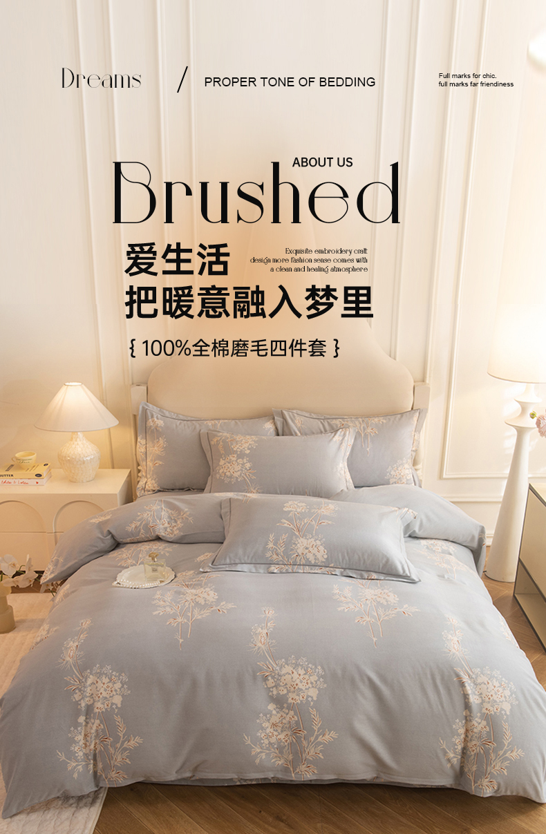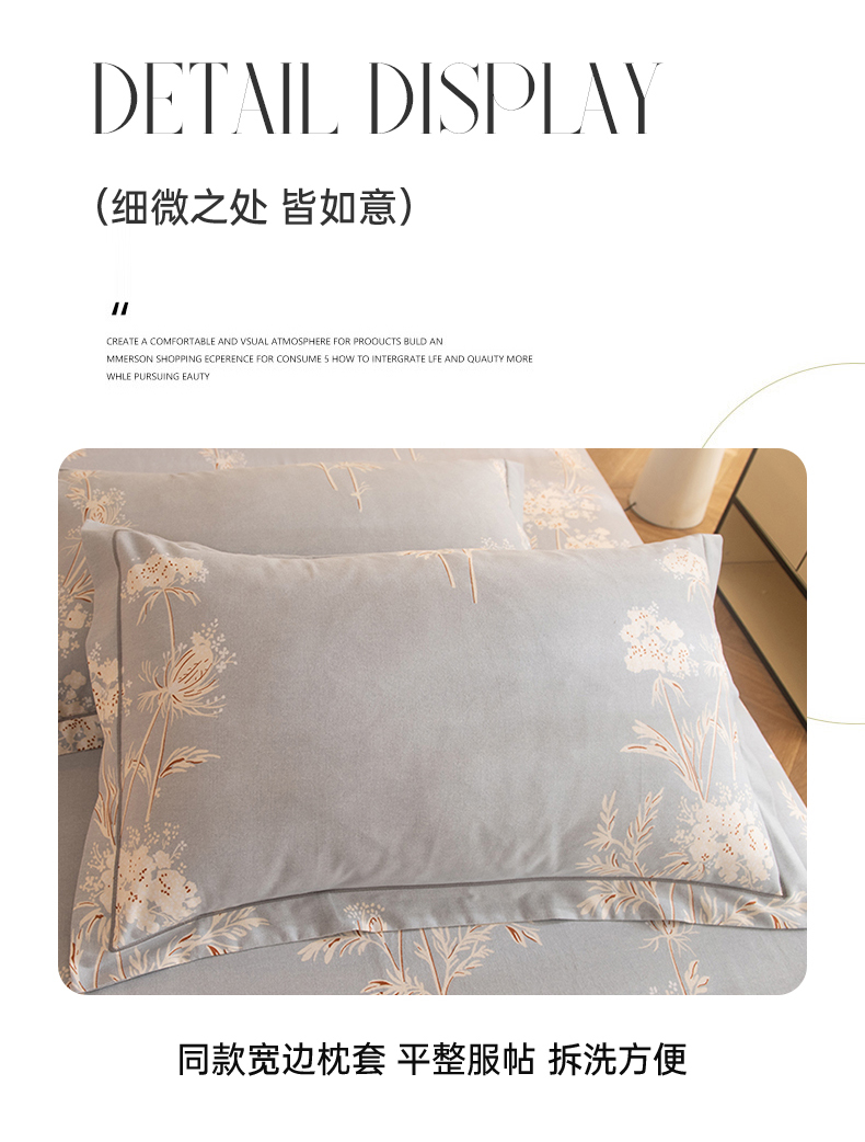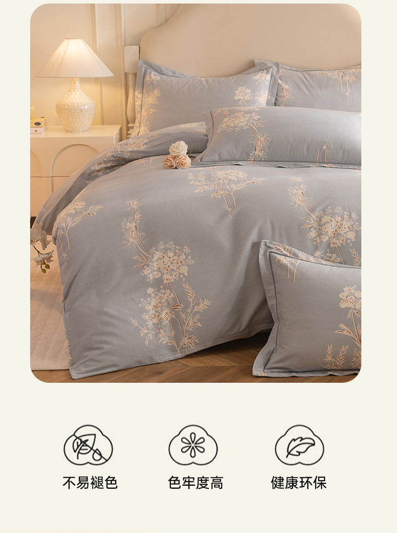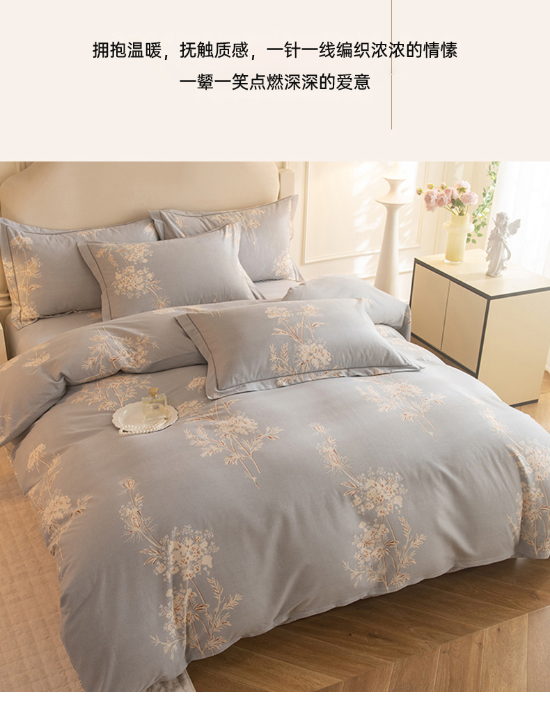 商品名称:磨毛世家家纺 2025新款生态四件套 浅笑嫣然-灰