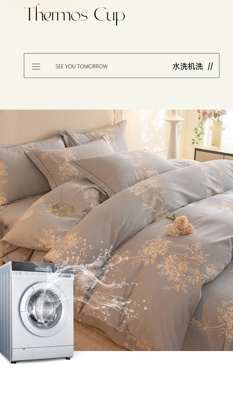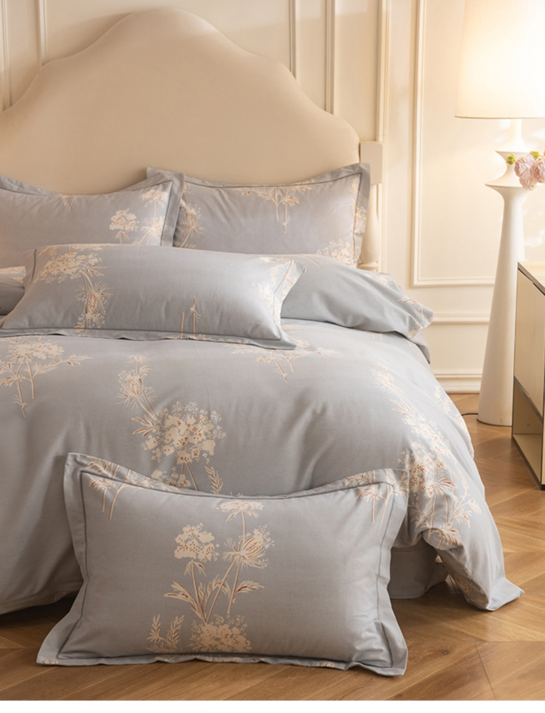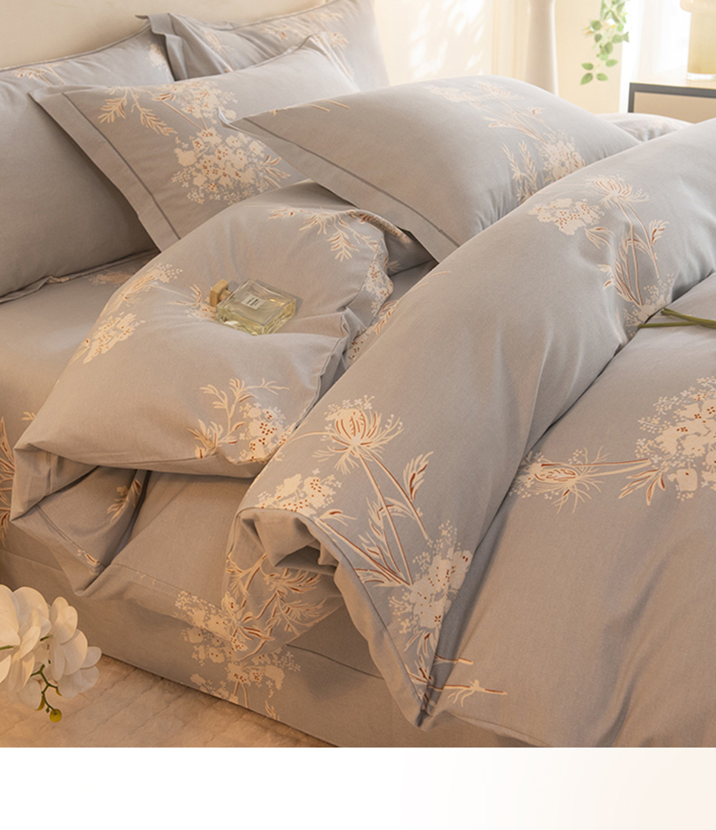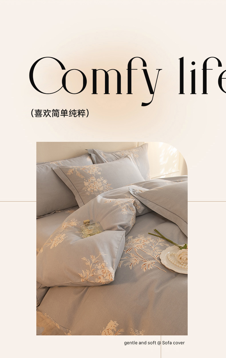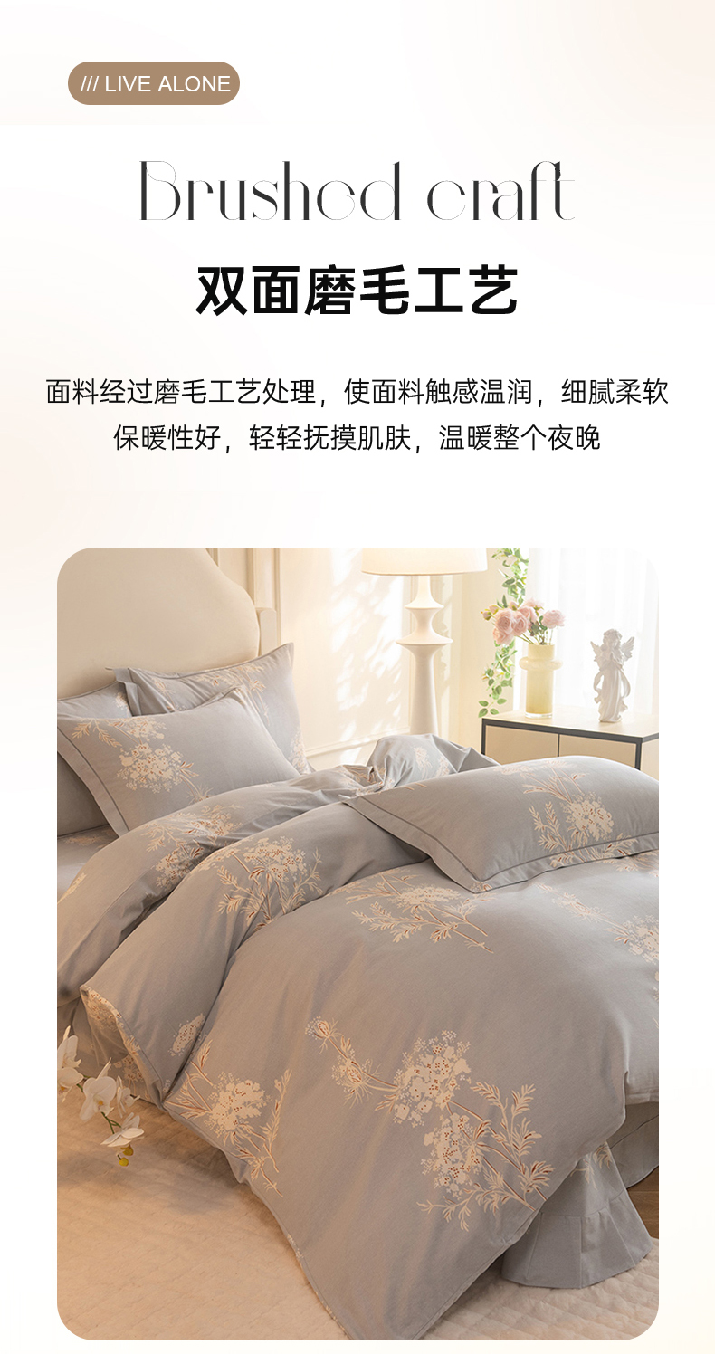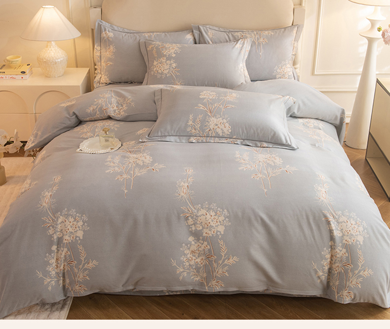 磨毛世家家纺 2025新款生态四件套 浅笑嫣然-灰